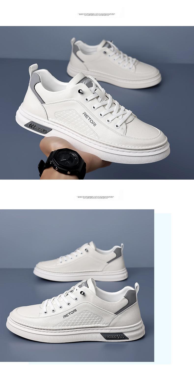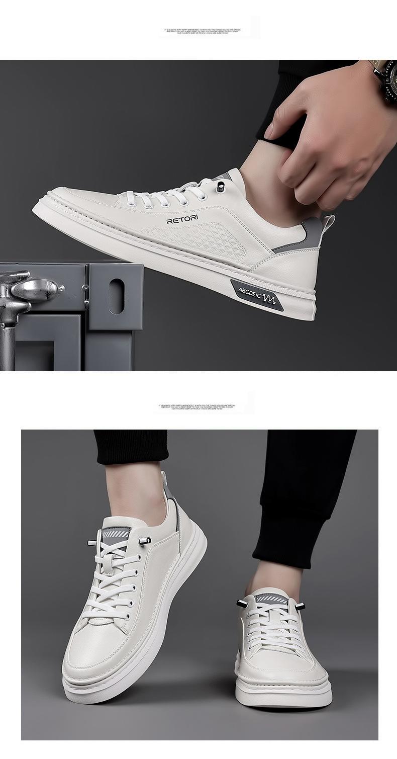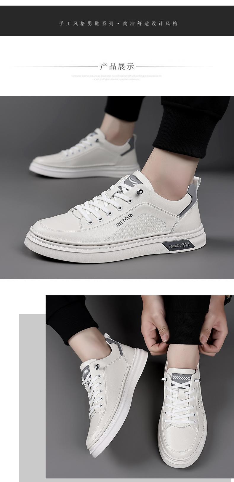 Zapatos de Hombre 2024 Nuevo Estilo Cuero Genuino Tenis de Moda Zapatos de Cuero Casuales Versátiles con Suela Blanda Antideslizante Zapatos Casuales Zapatos Blancos