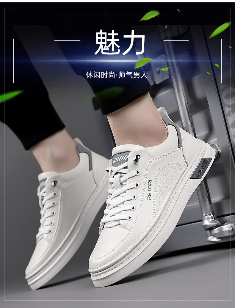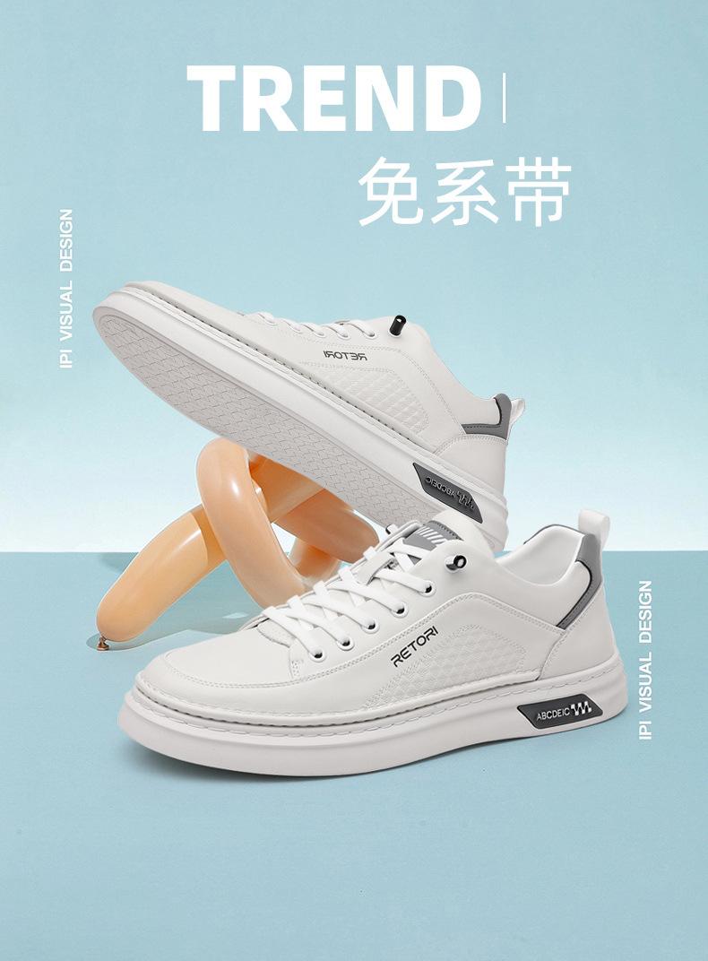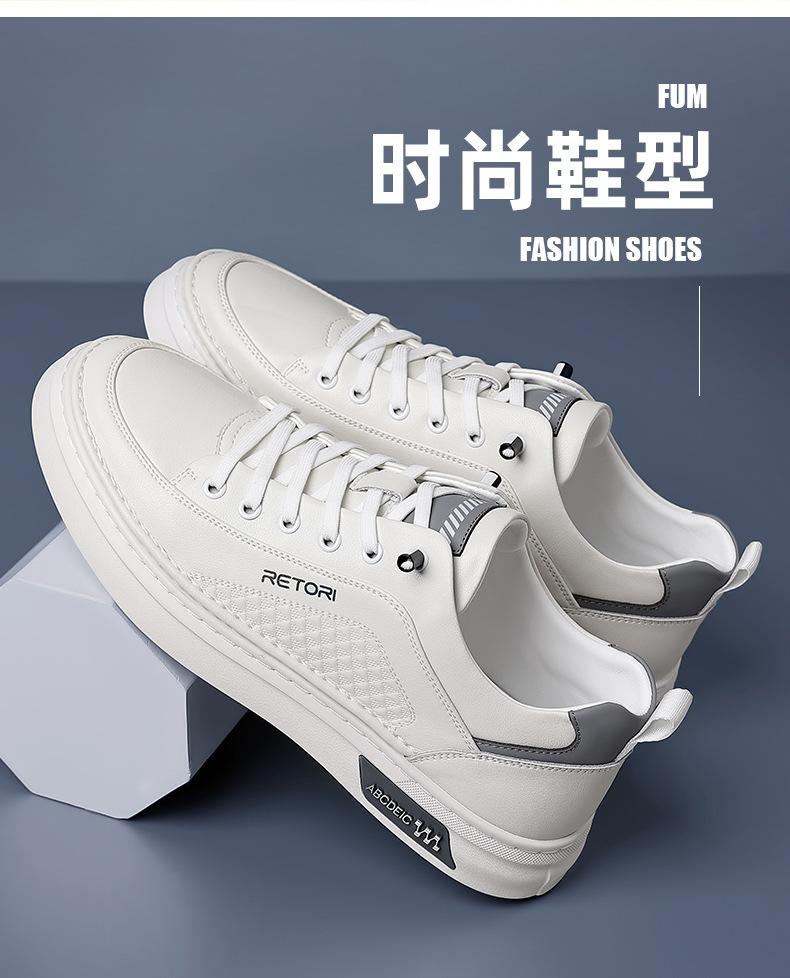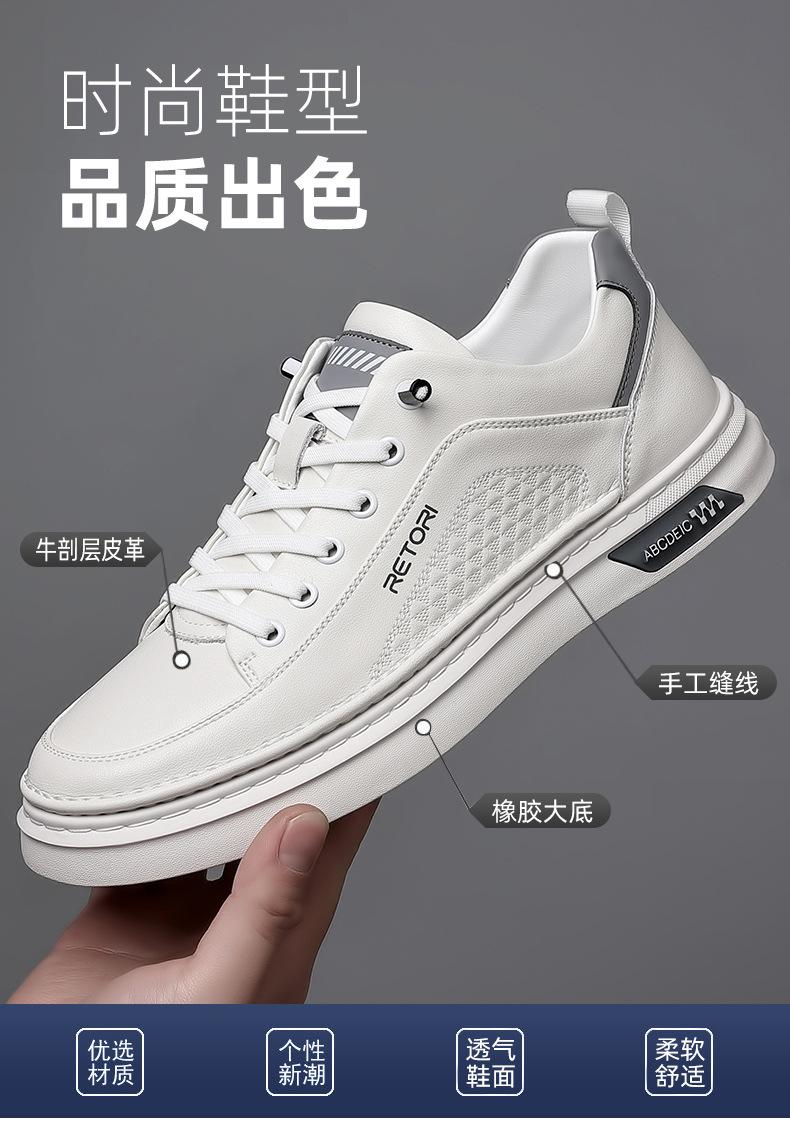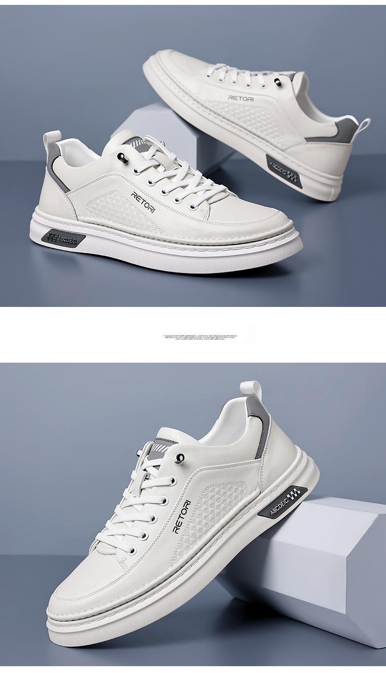 Zapatos de Hombre 2024 Nuevo Estilo Cuero Genuino Tenis de Moda Zapatos de Cuero Casuales Versátiles con Suela Blanda Antideslizante Zapatos Casuales Zapatos Blancos