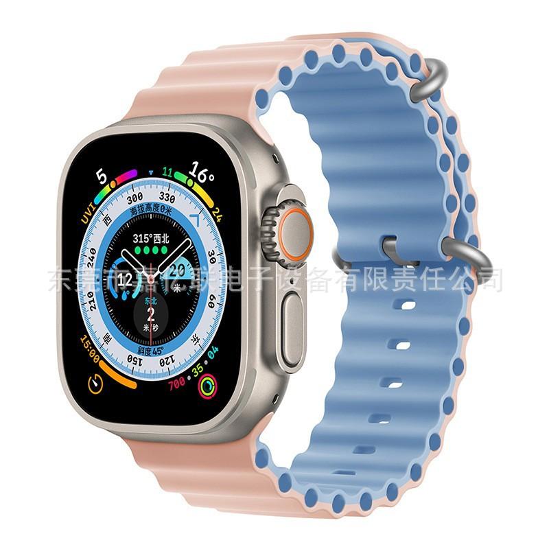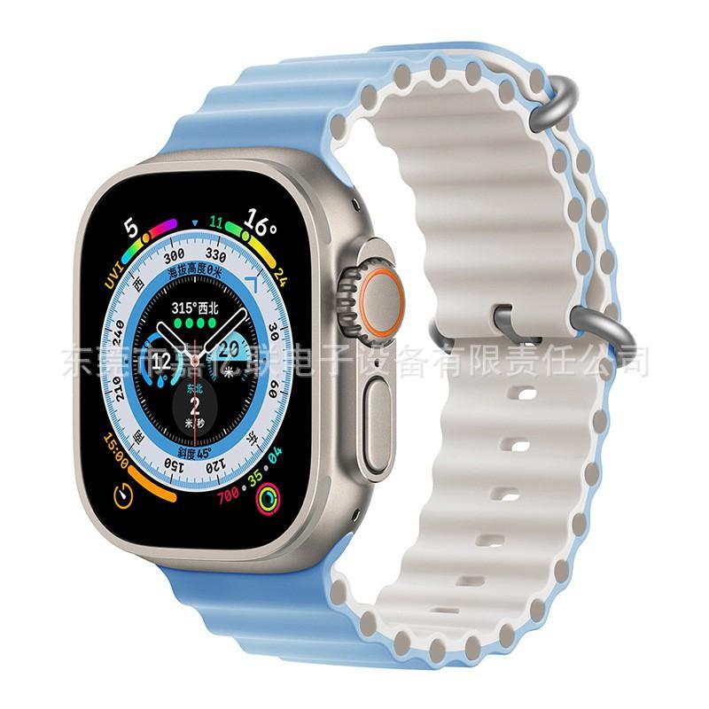 Correa marina de dos colores de silicona con hebilla real para Apple smart watch S8/9 exclusiva transfronteriza para venta al por mayor de correas