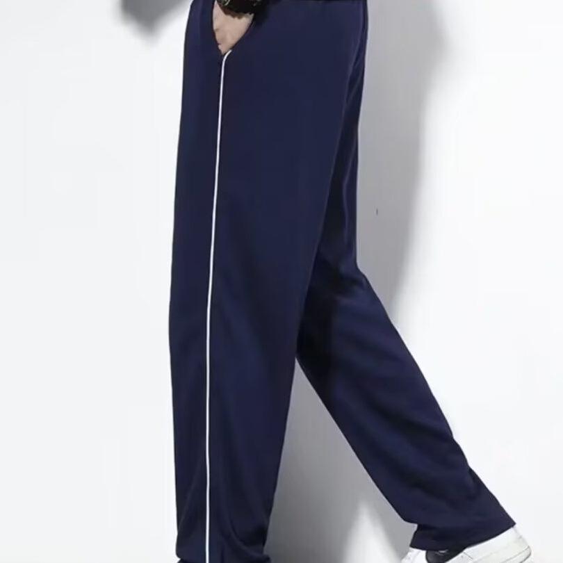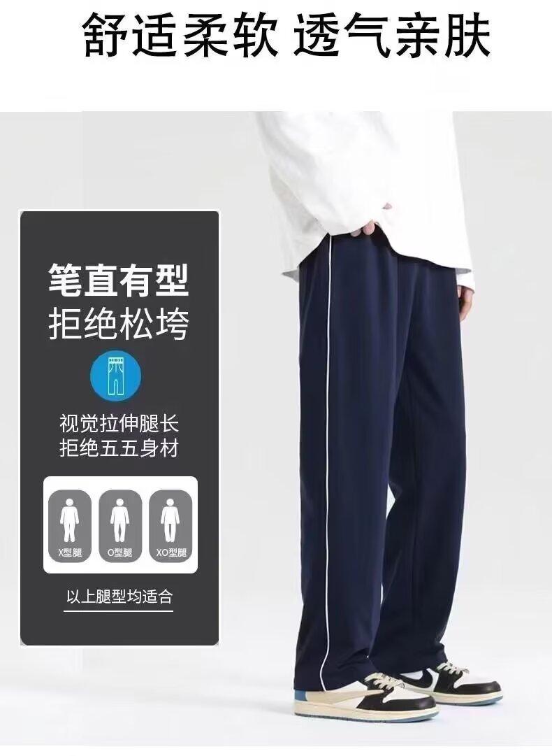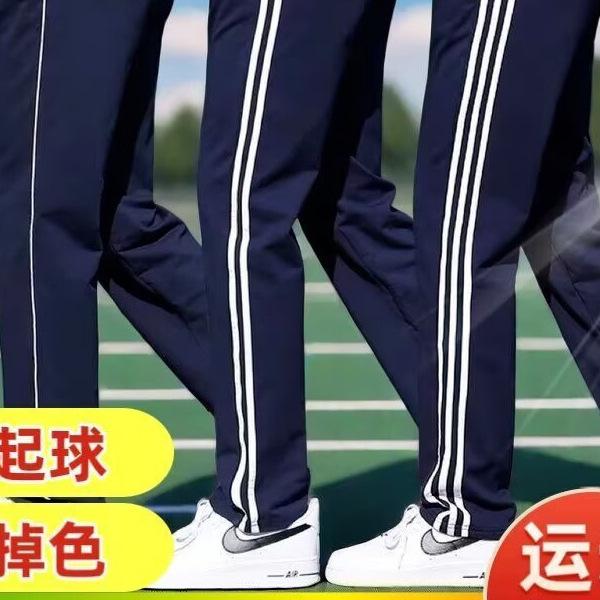 Pantalones escolares de verano delgados de seda de hielo para estudiantes, pantalones deportivos de barras paralelas azul marino, pantalones casuales rectos para hombres y mujeres (compra