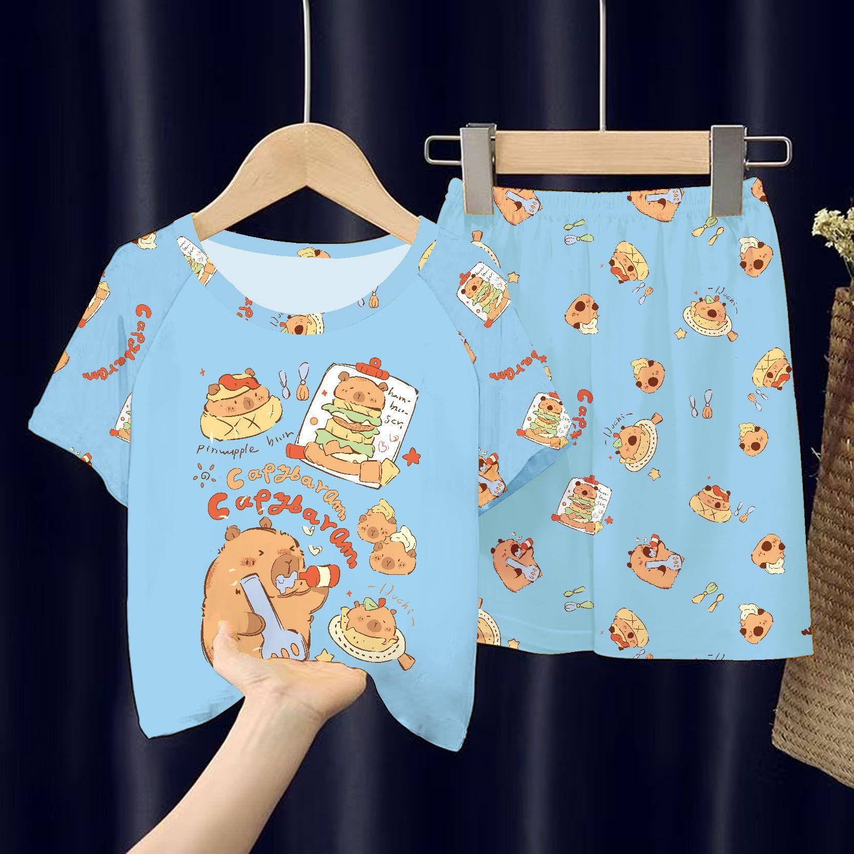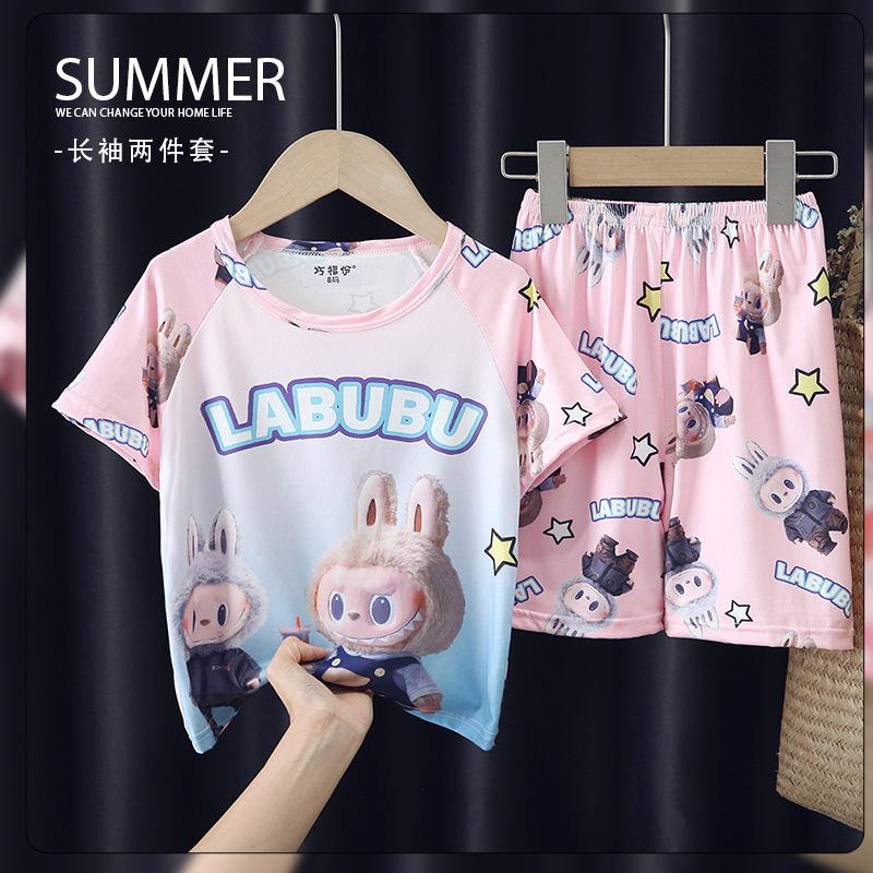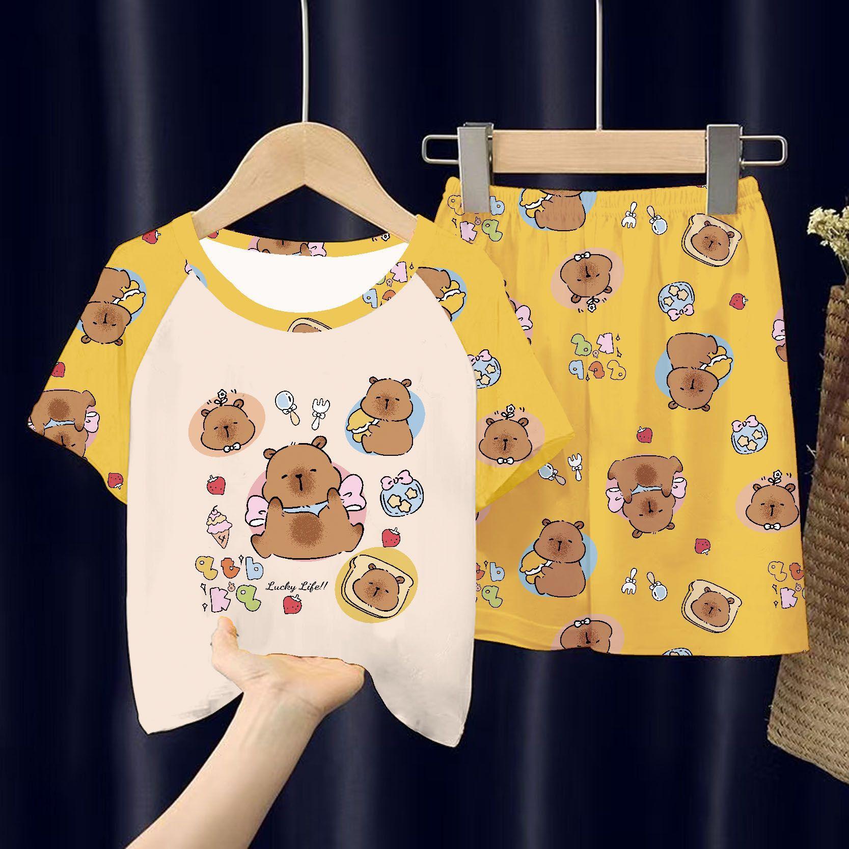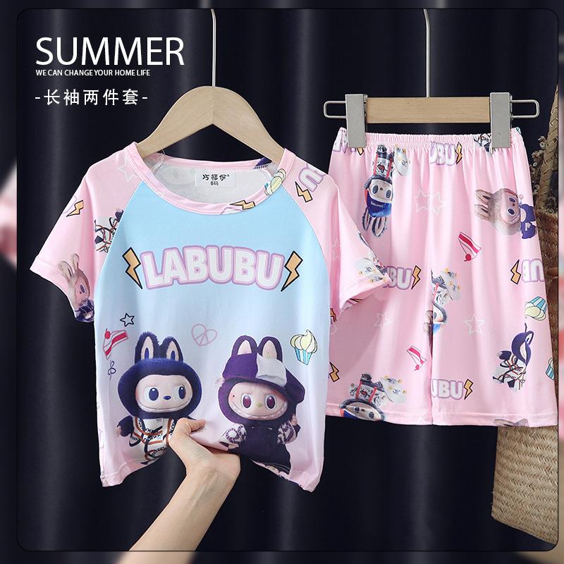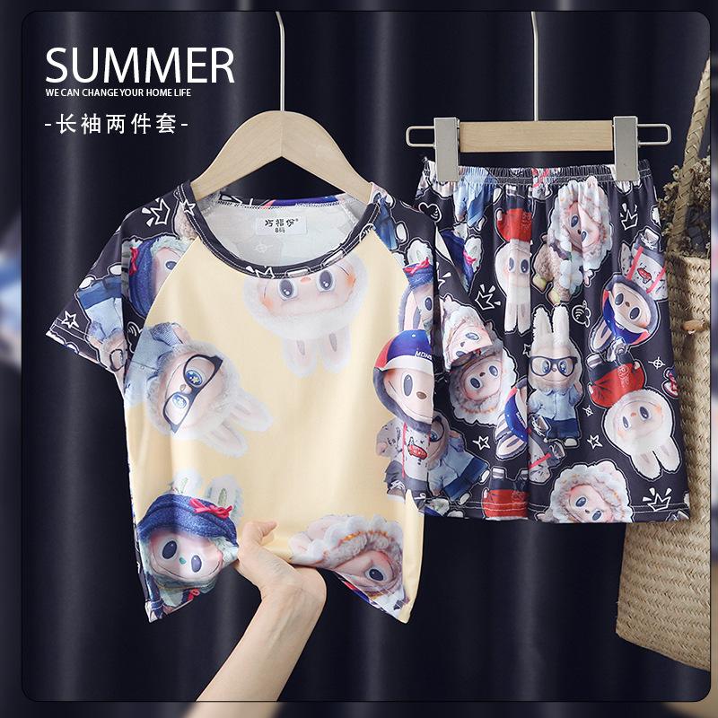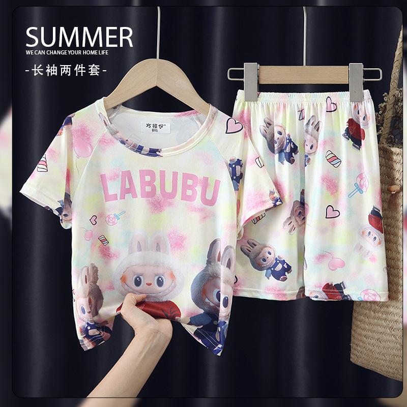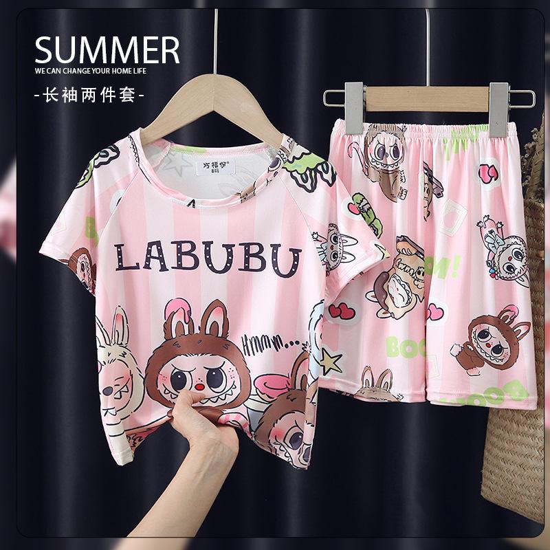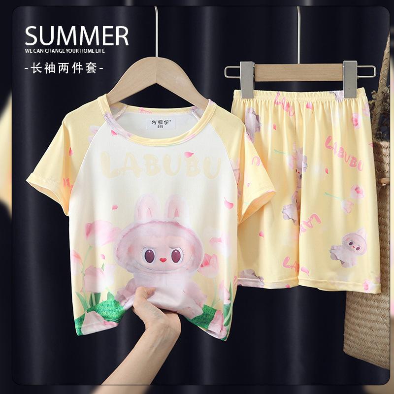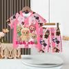 Pijamas de verano para niños, pantalones cortos de manga corta con dibujos animados para niñas, ropa informal para niños de talla mediana y grande, ropa para el hogar