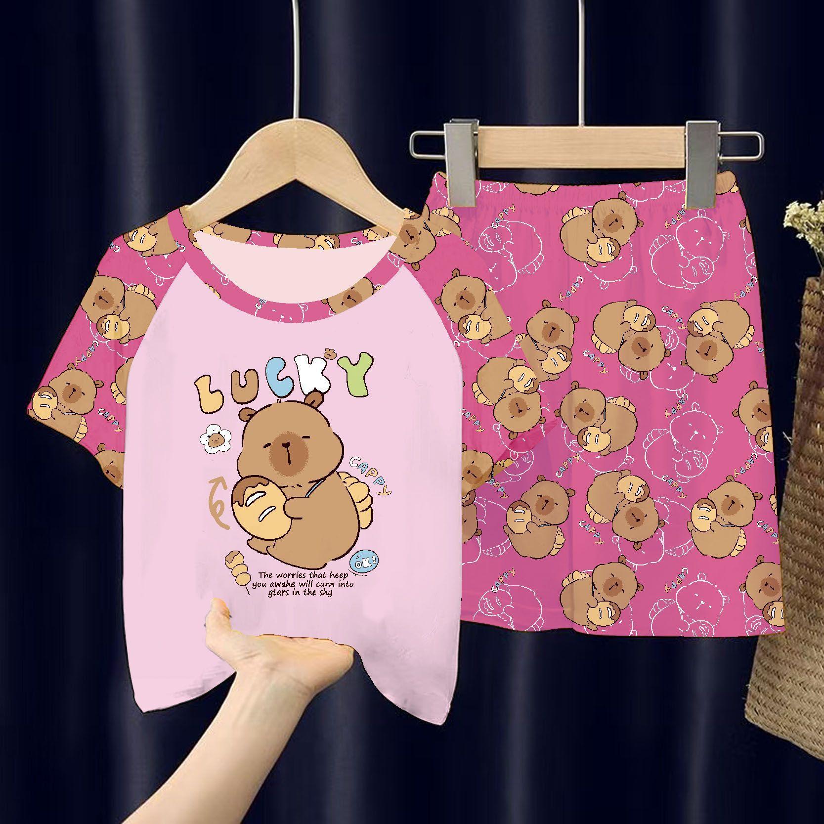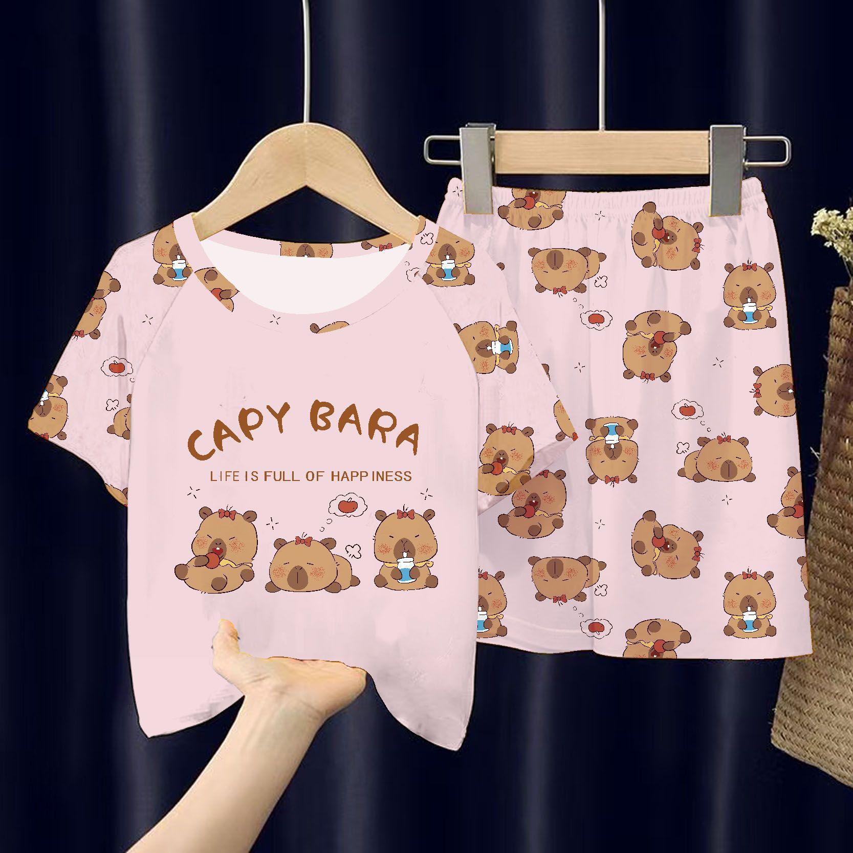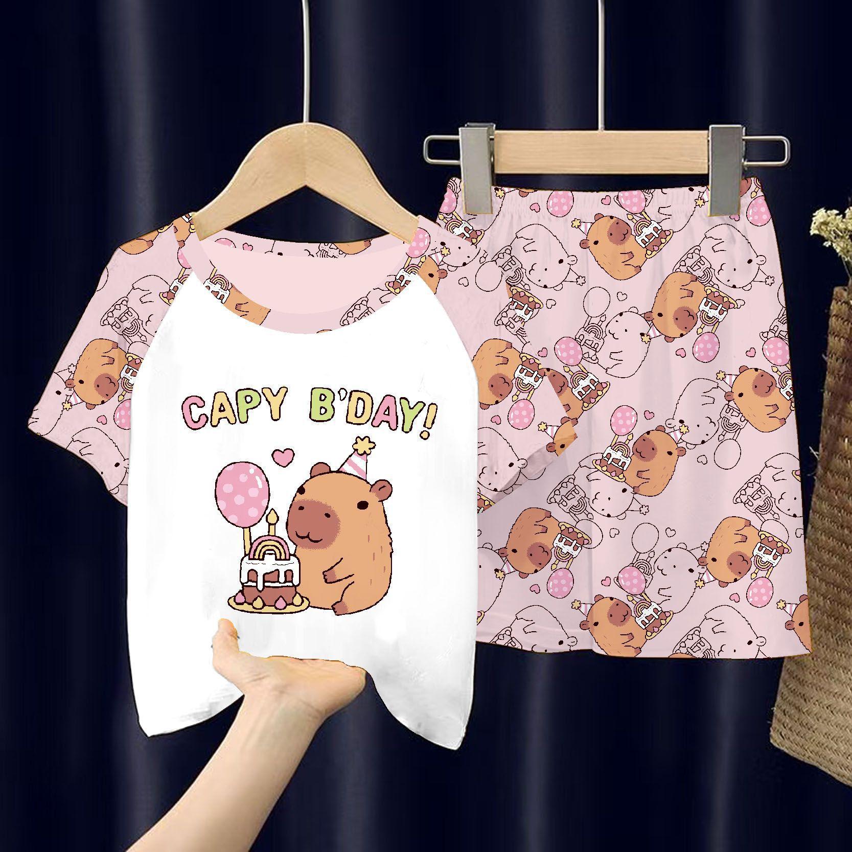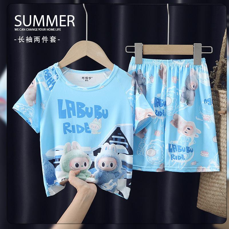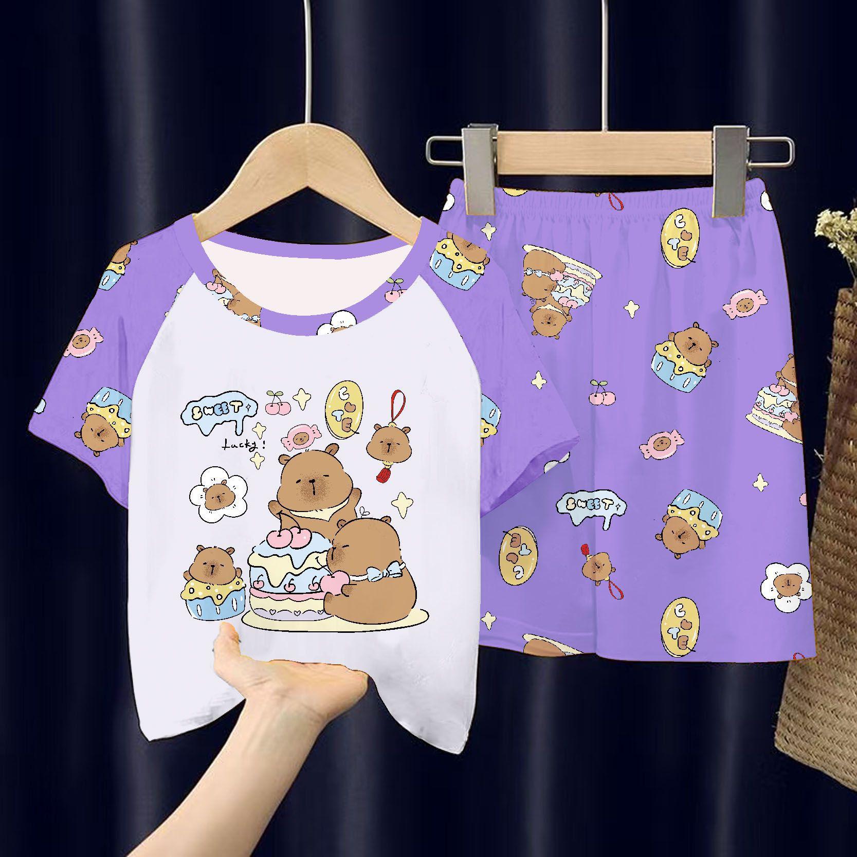 Pijamas de verano para niños, pantalones cortos de manga corta con dibujos animados para niñas, ropa informal para niños de talla mediana y grande, ropa para el hogar