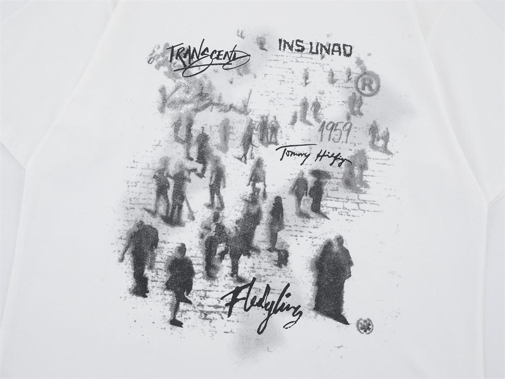 Camiseta de Manga Corta con Estampado de Figura Estilo Americano para Hombre Verano Holgada Urbana Moderna Casual Cuello Redondo Algodón Puro Camiseta Top