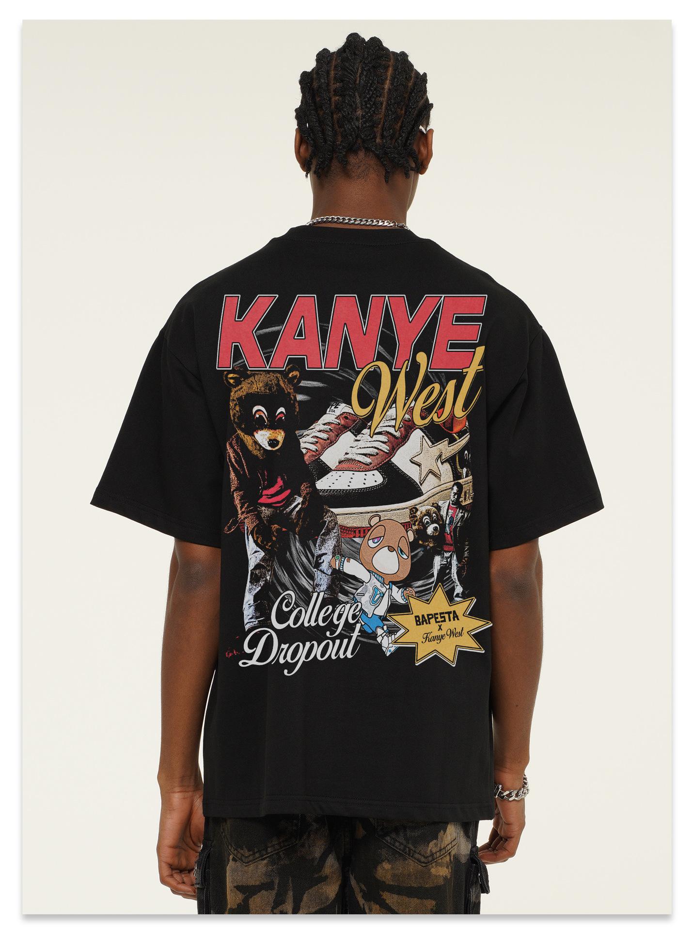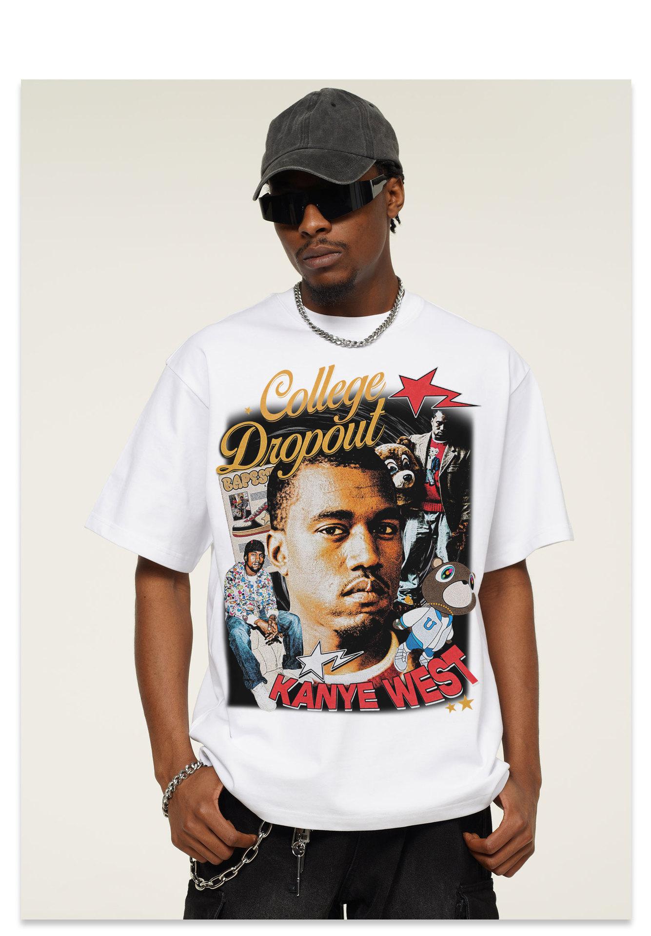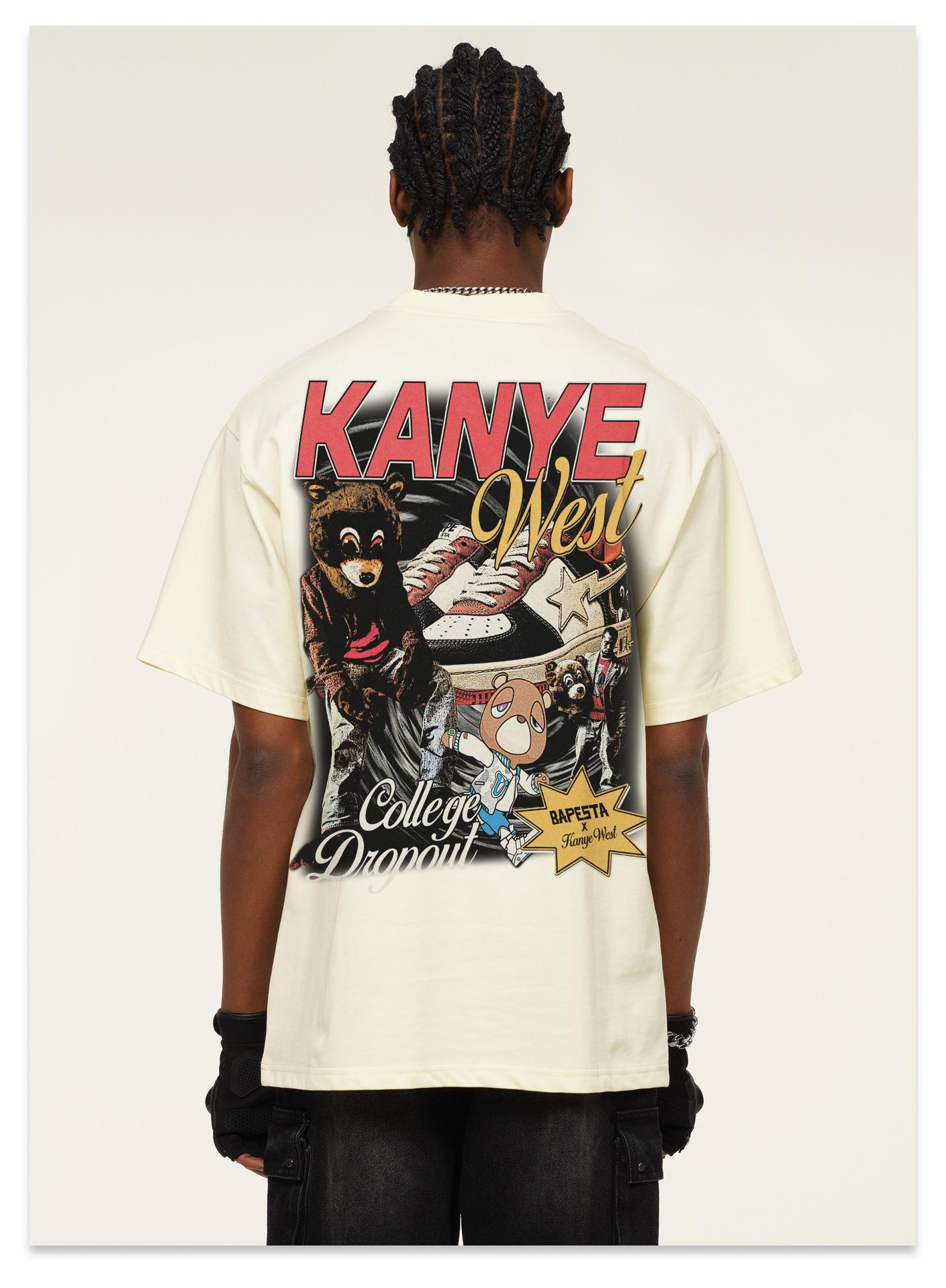 Camiseta de manga corta con estampado transfronterizo de Kanye West para hombre y mujer, de algodón, de tendencia, 2025
