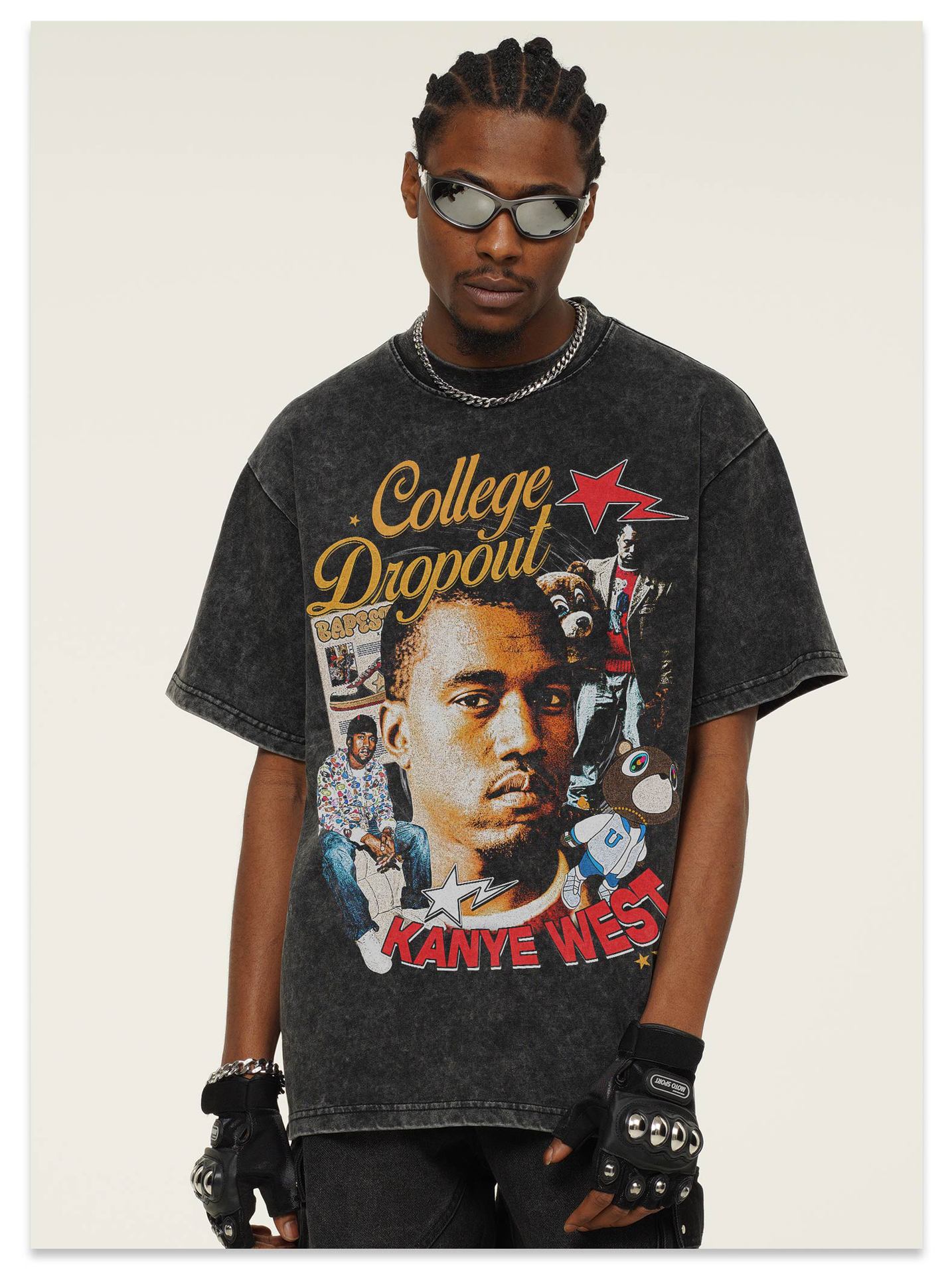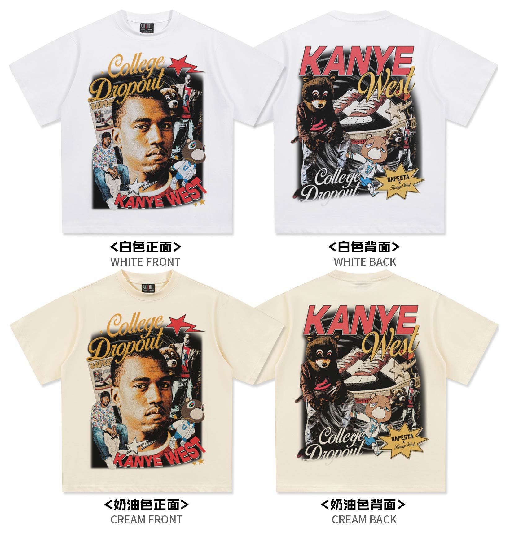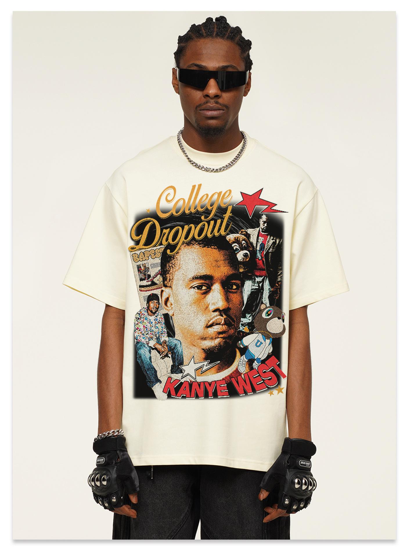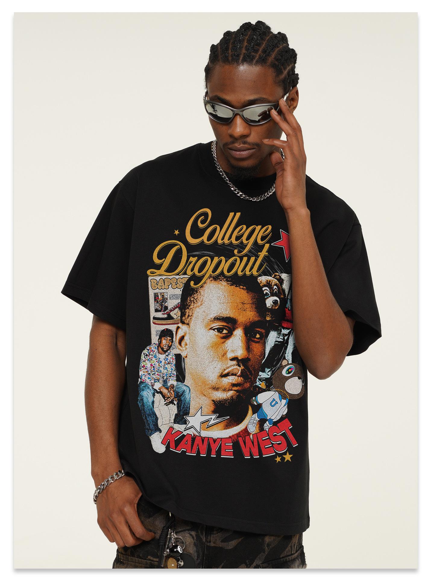 Camiseta de manga corta con estampado transfronterizo de Kanye West para hombre y mujer, de algodón, de tendencia, 2025