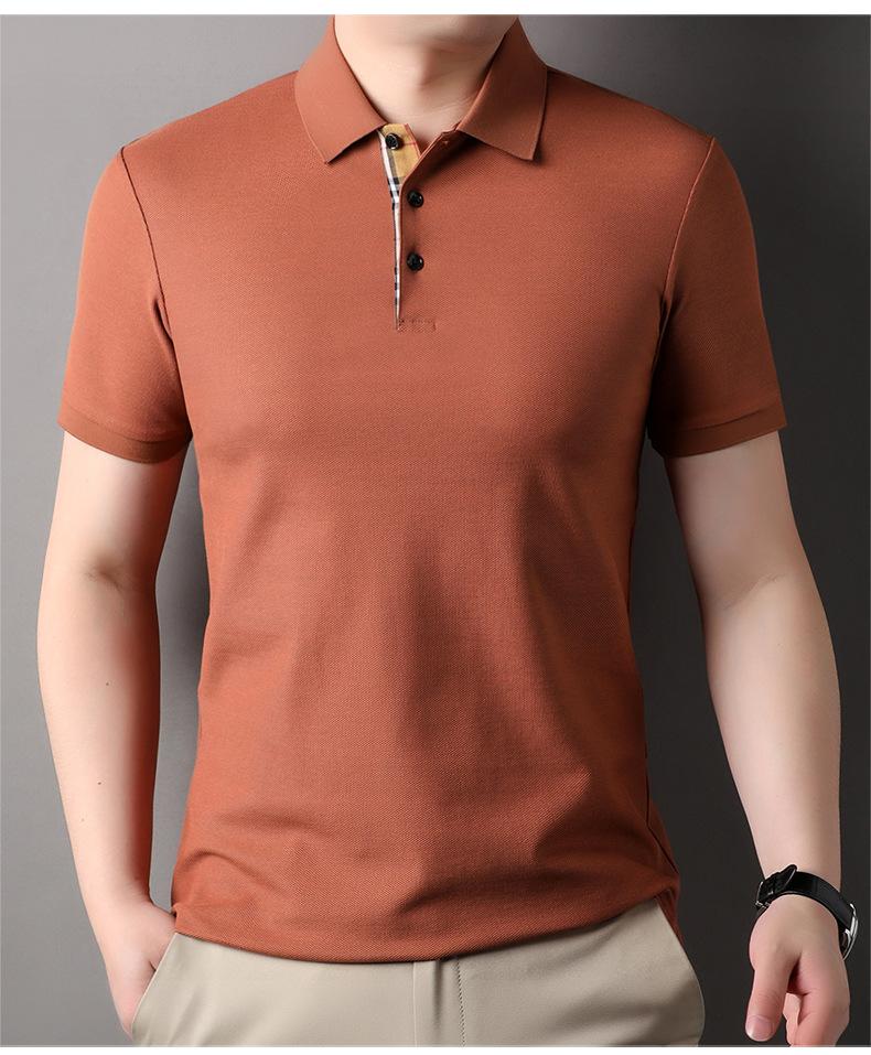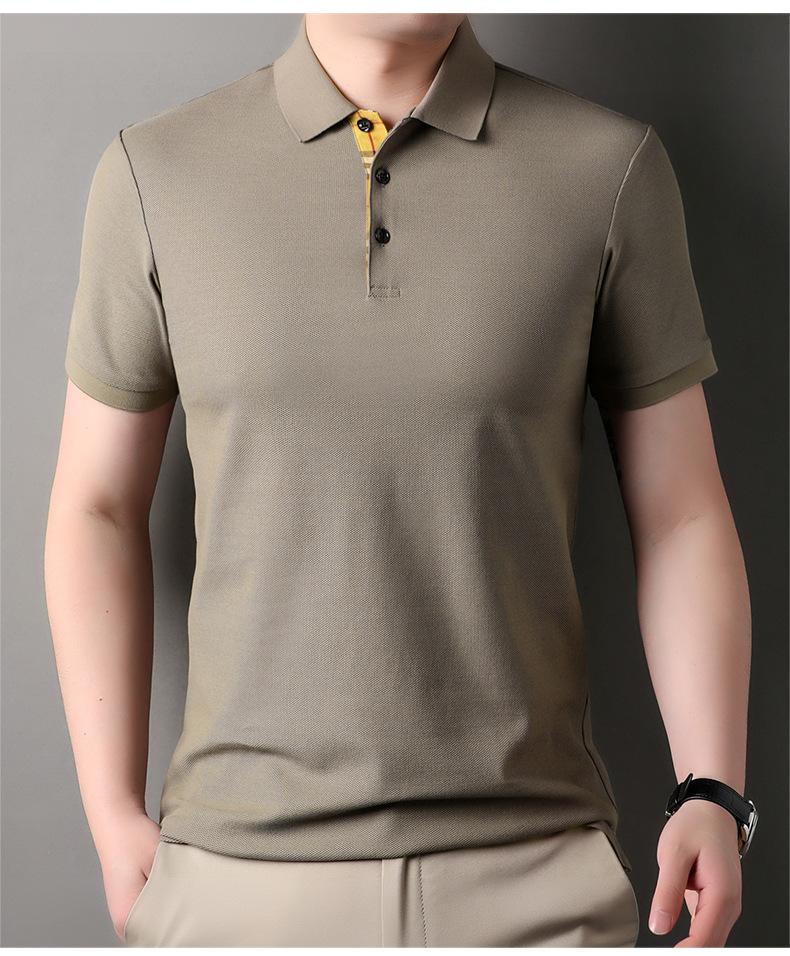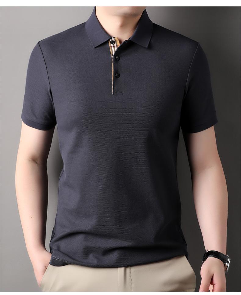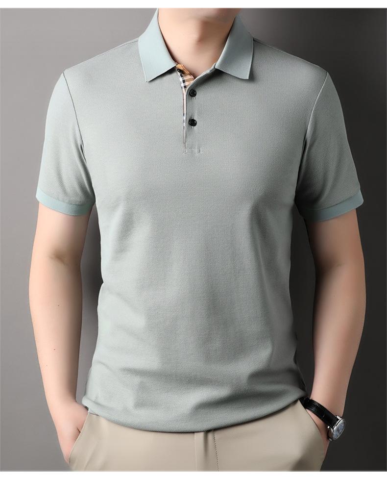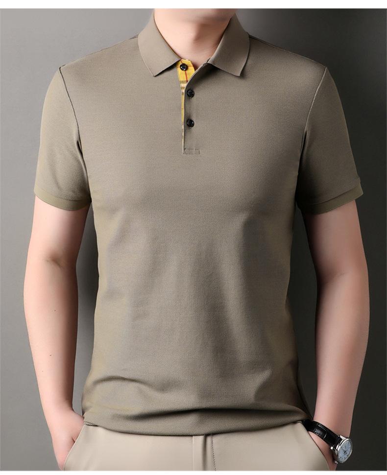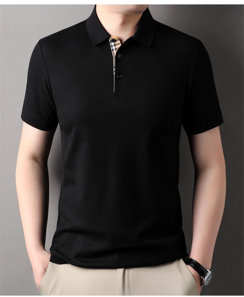 Camiseta de algodón mercerizado para hombre, manga corta, nueva camiseta de verano 2025 con solapa, color liso, transpirable, informal, tipo polo