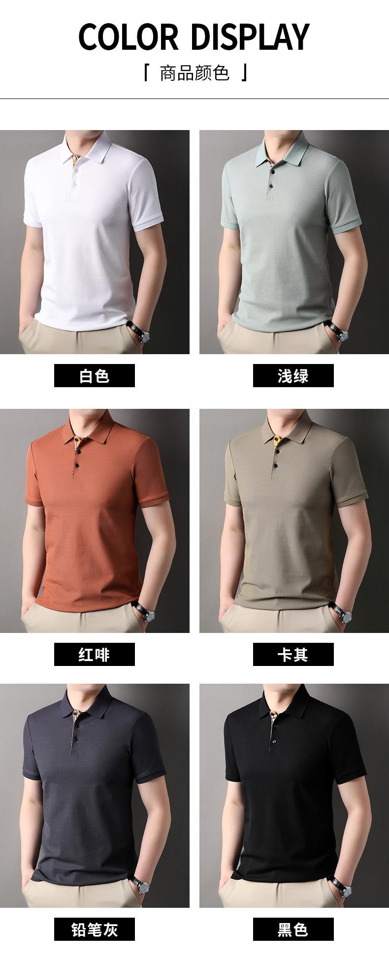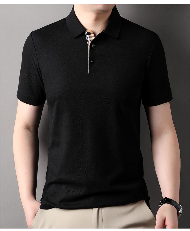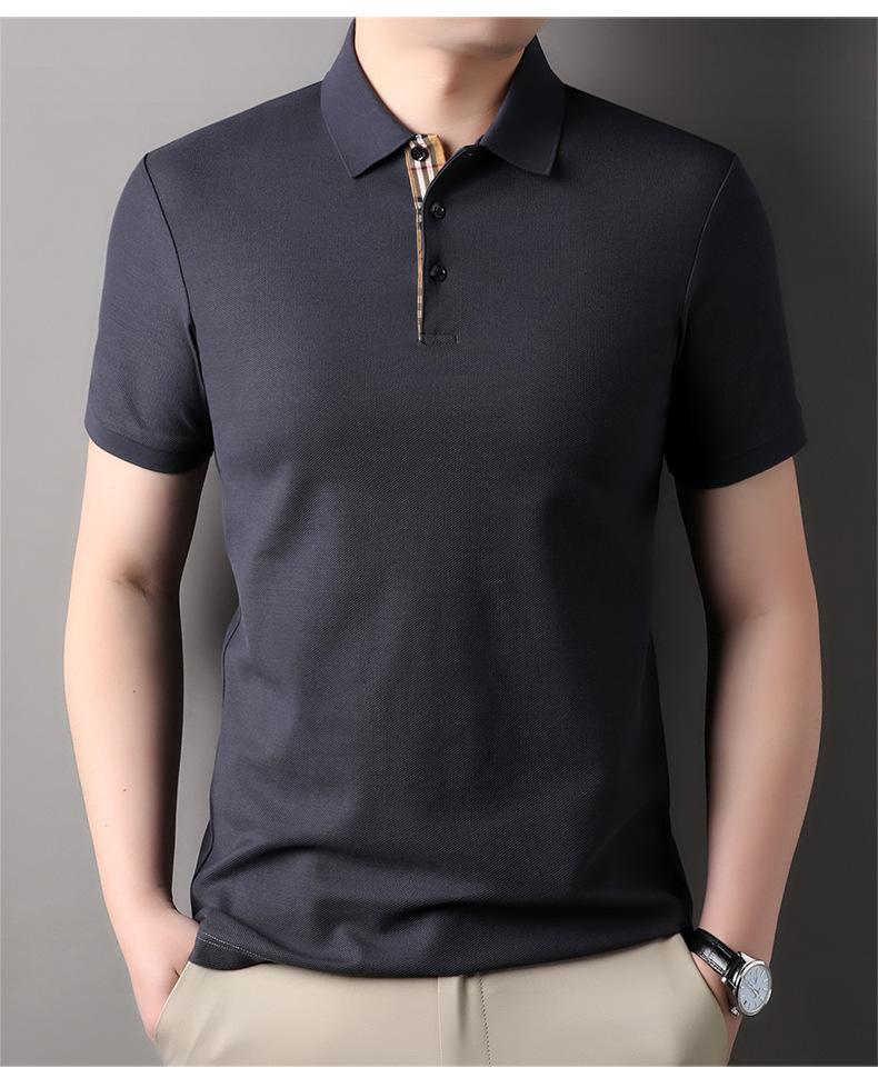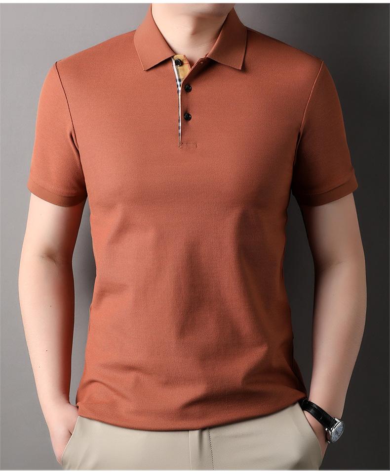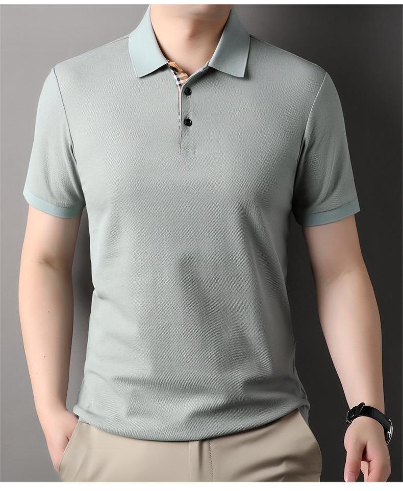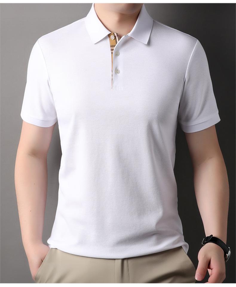 Camiseta de algodón mercerizado para hombre, manga corta, nueva camiseta de verano 2025 con solapa, color liso, transpirable, informal, tipo polo
