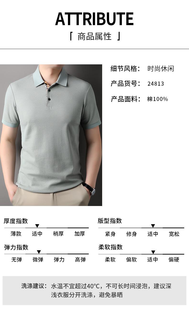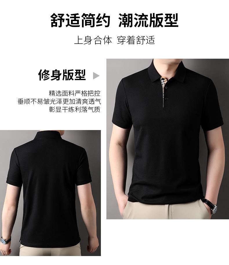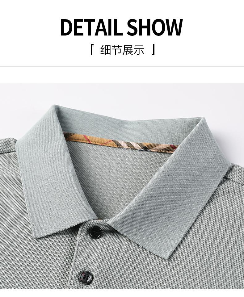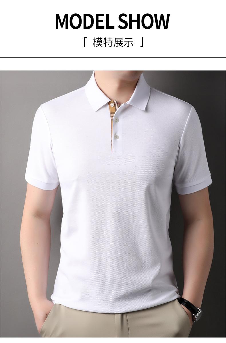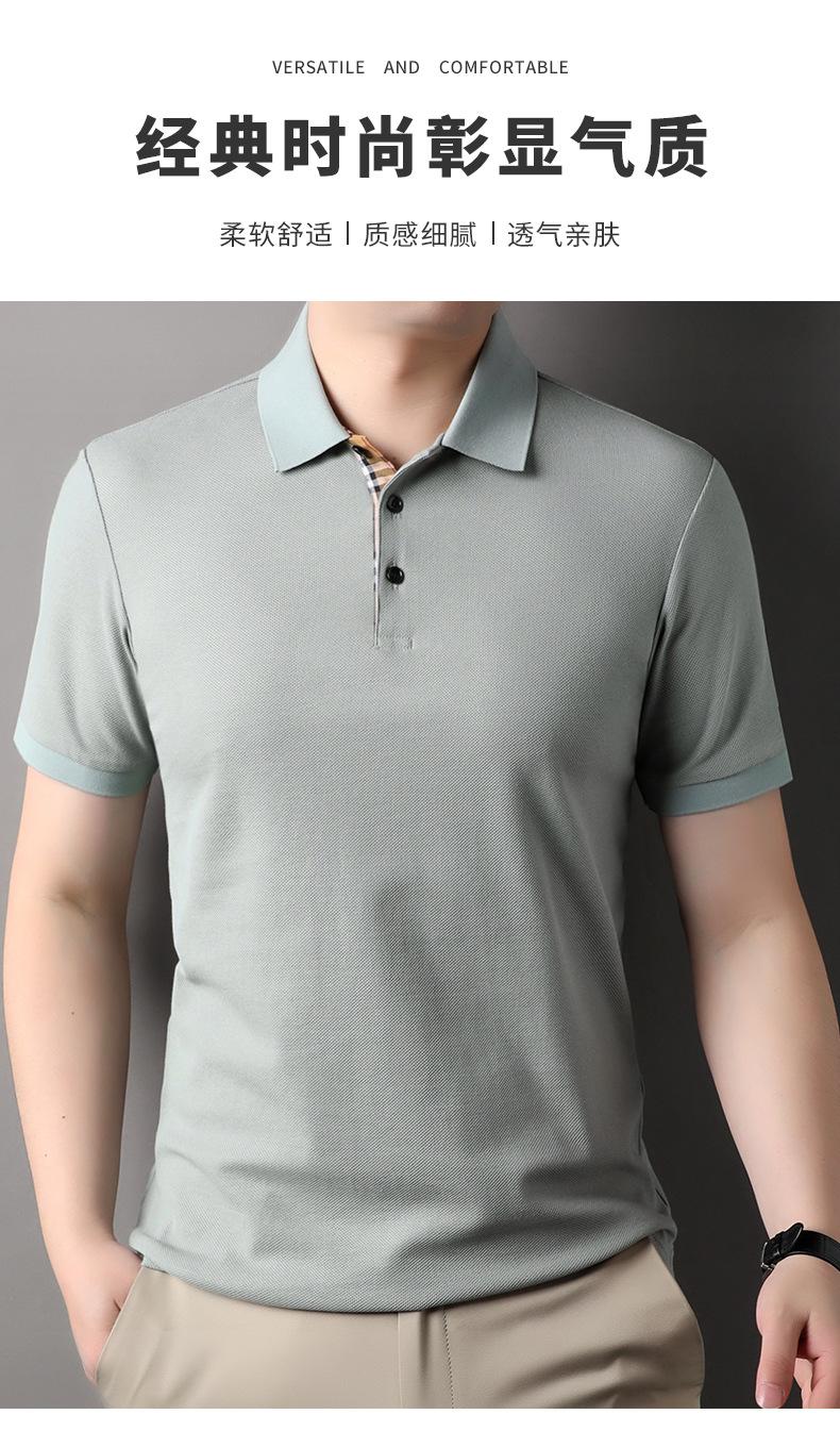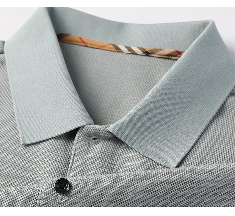 Camiseta de algodón mercerizado para hombre, manga corta, nueva camiseta de verano 2025 con solapa, color liso, transpirable, informal, tipo polo