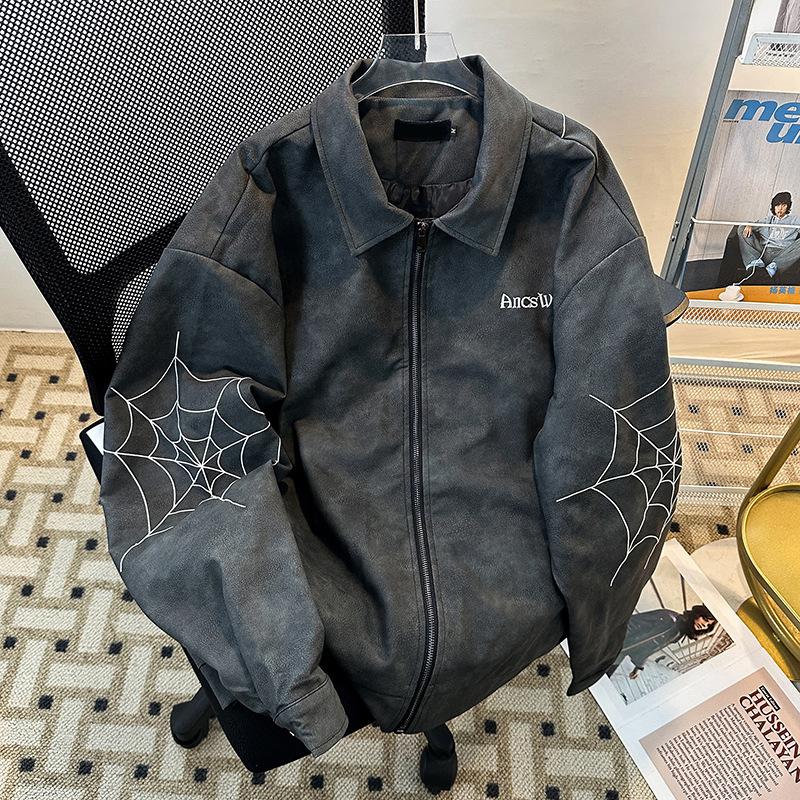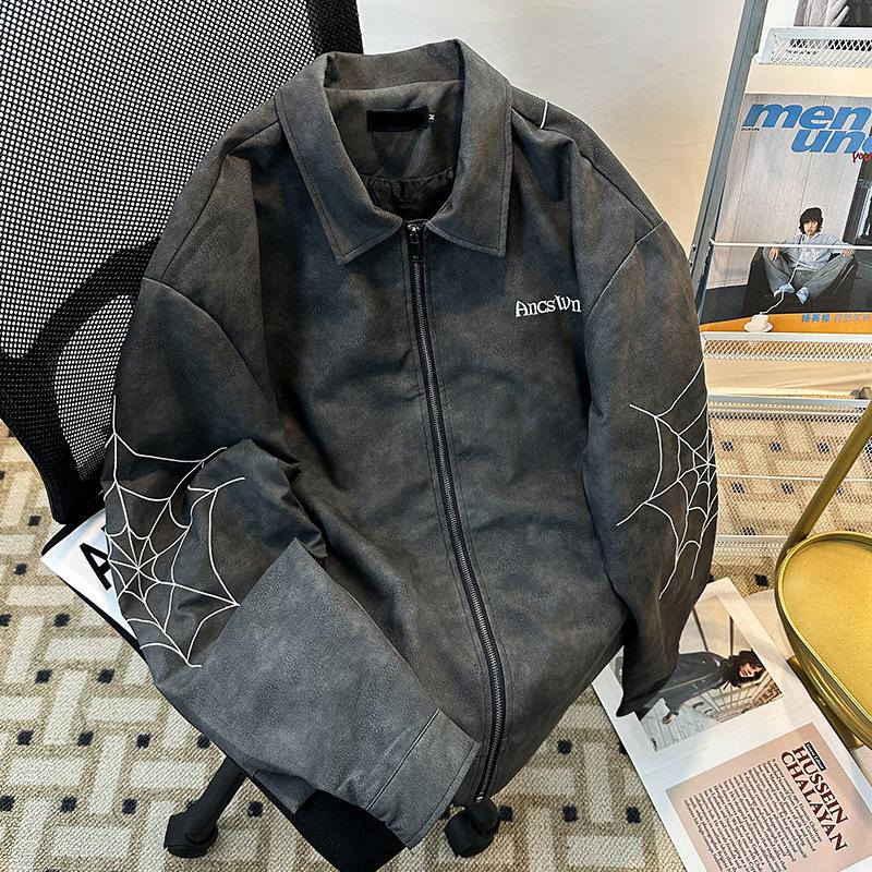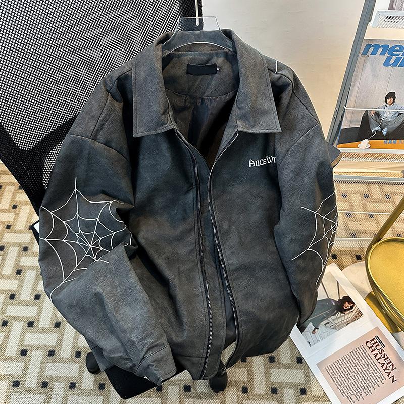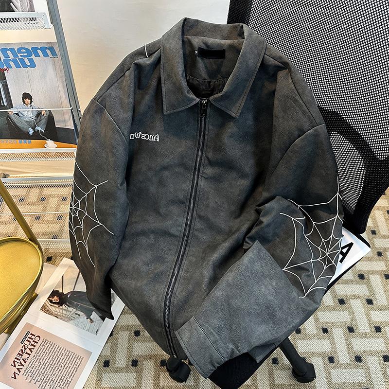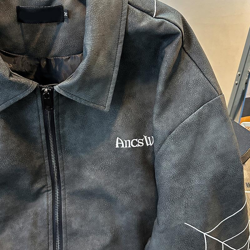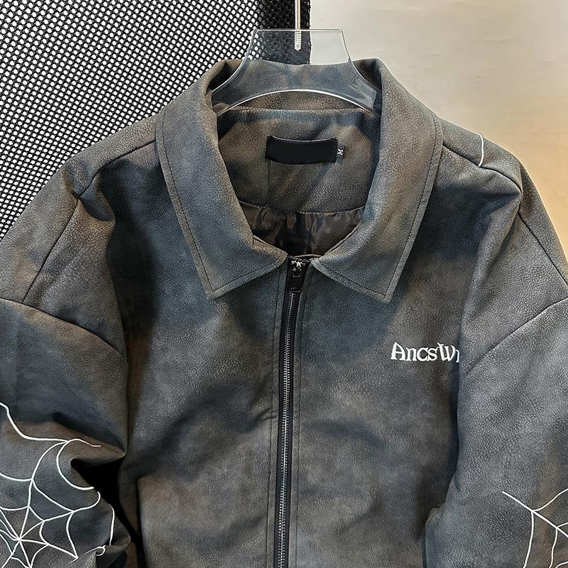 Otoño 2025 Estilo Americano High Street Bordado Chaqueta de Cuero PU Cremallera Casual Suelta Versátil Street Traje de Béisbol Chaqueta