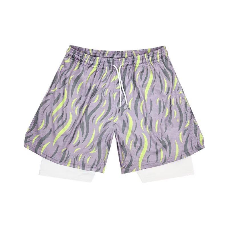 2025 Verano para Hombre Diario Falso Dos Piezas Combinable Rayado Suelto Talla Extra Casual Delgado Shorts Deportivos Modernos