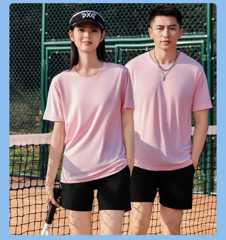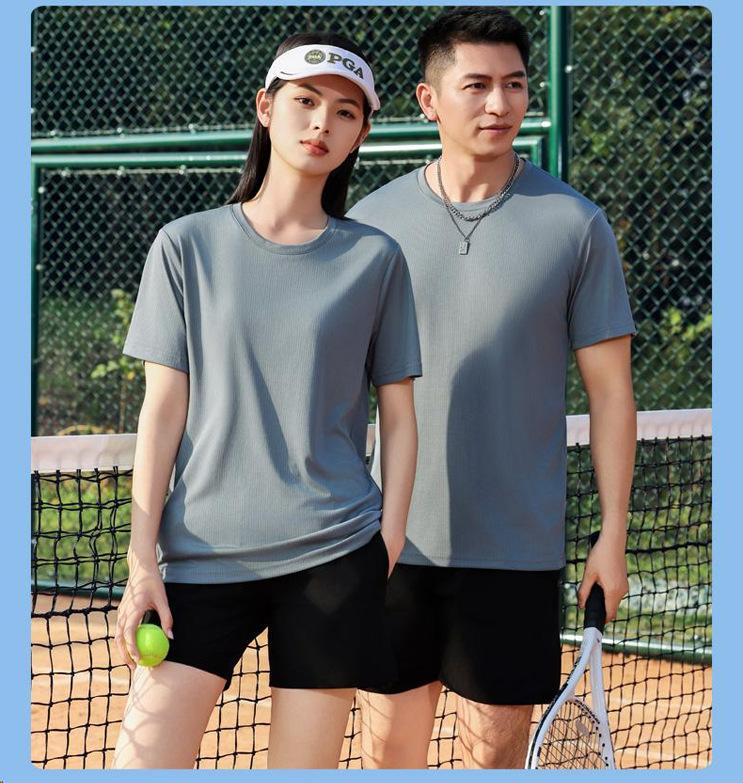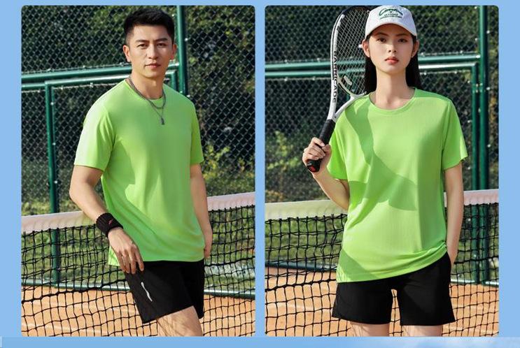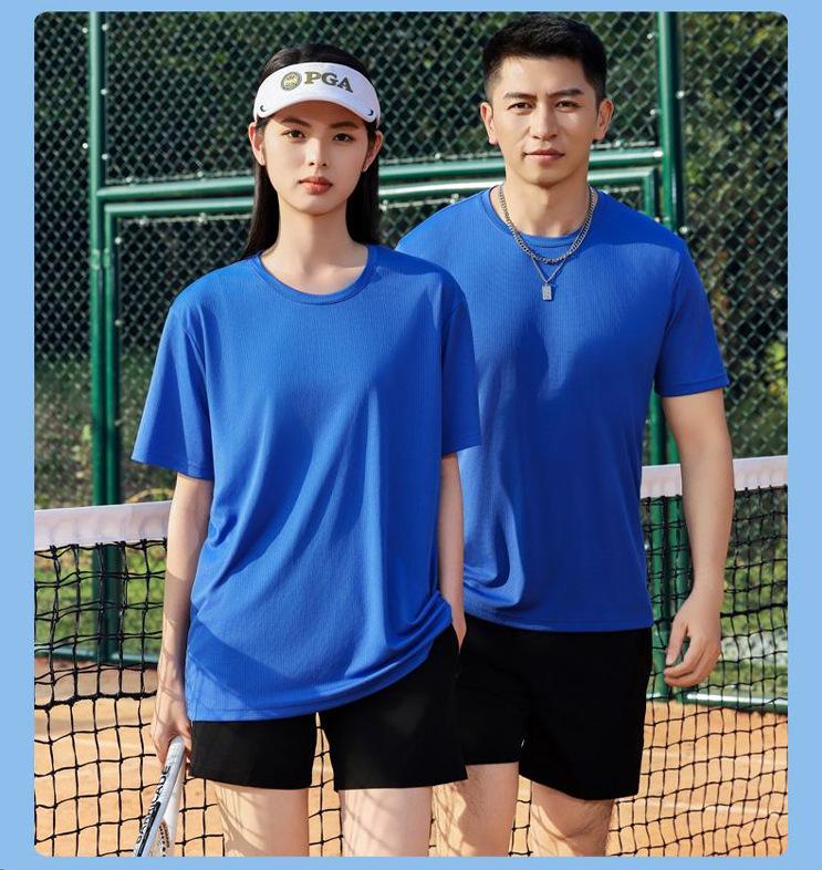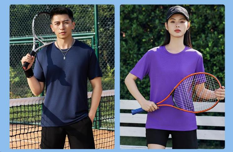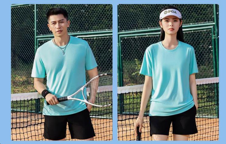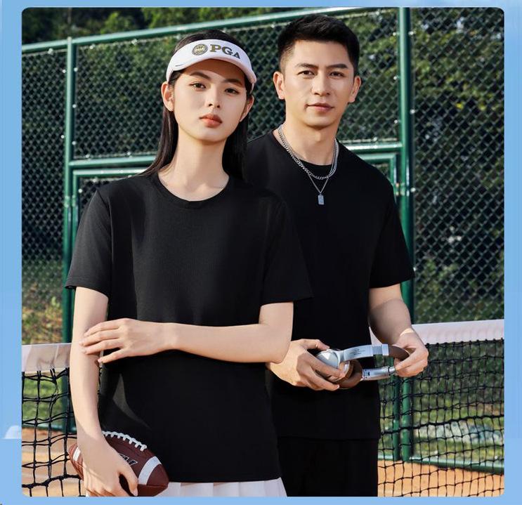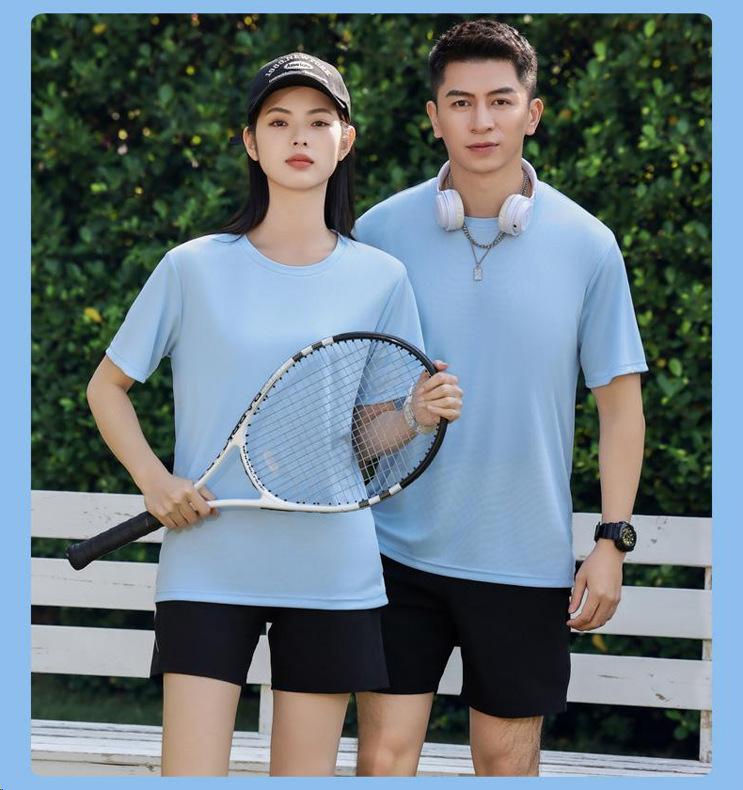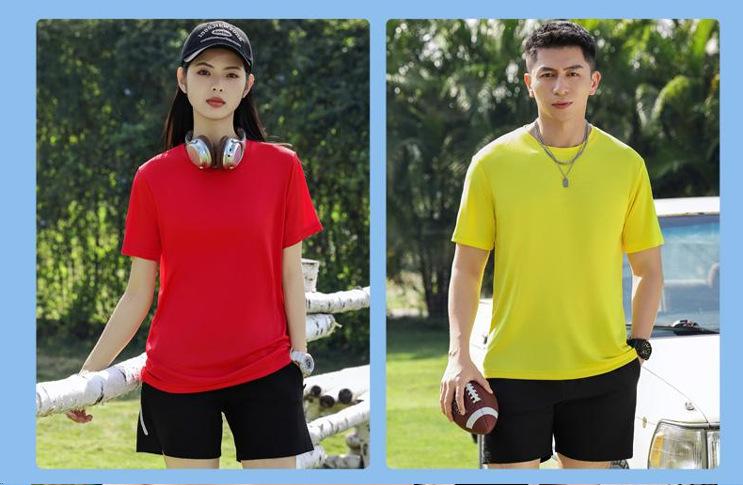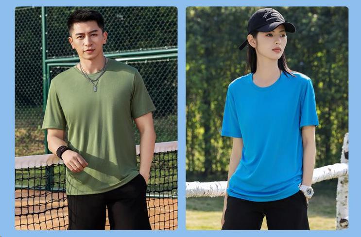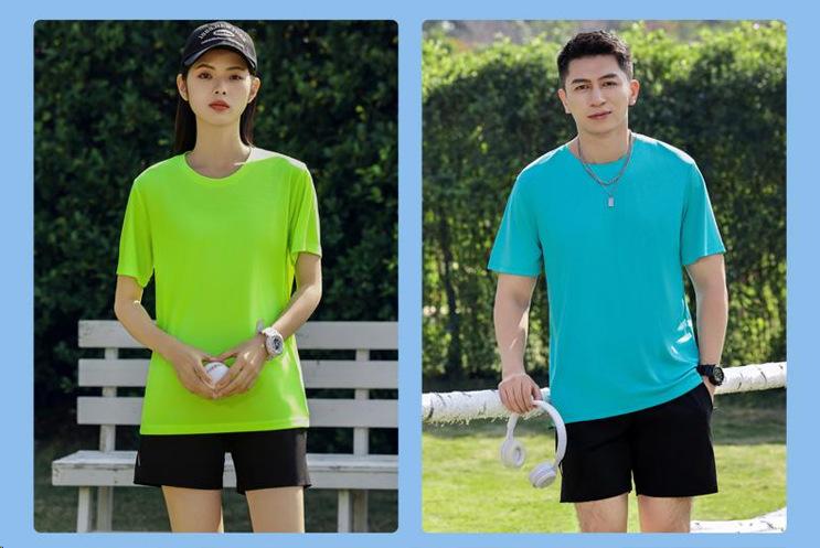 Versión europea de la camiseta de manga corta de secado rápido de moda deportiva de verano para hombre, de secado rápido, cuello redondo, holgada, suave, transpirable, fresca y cómoda.