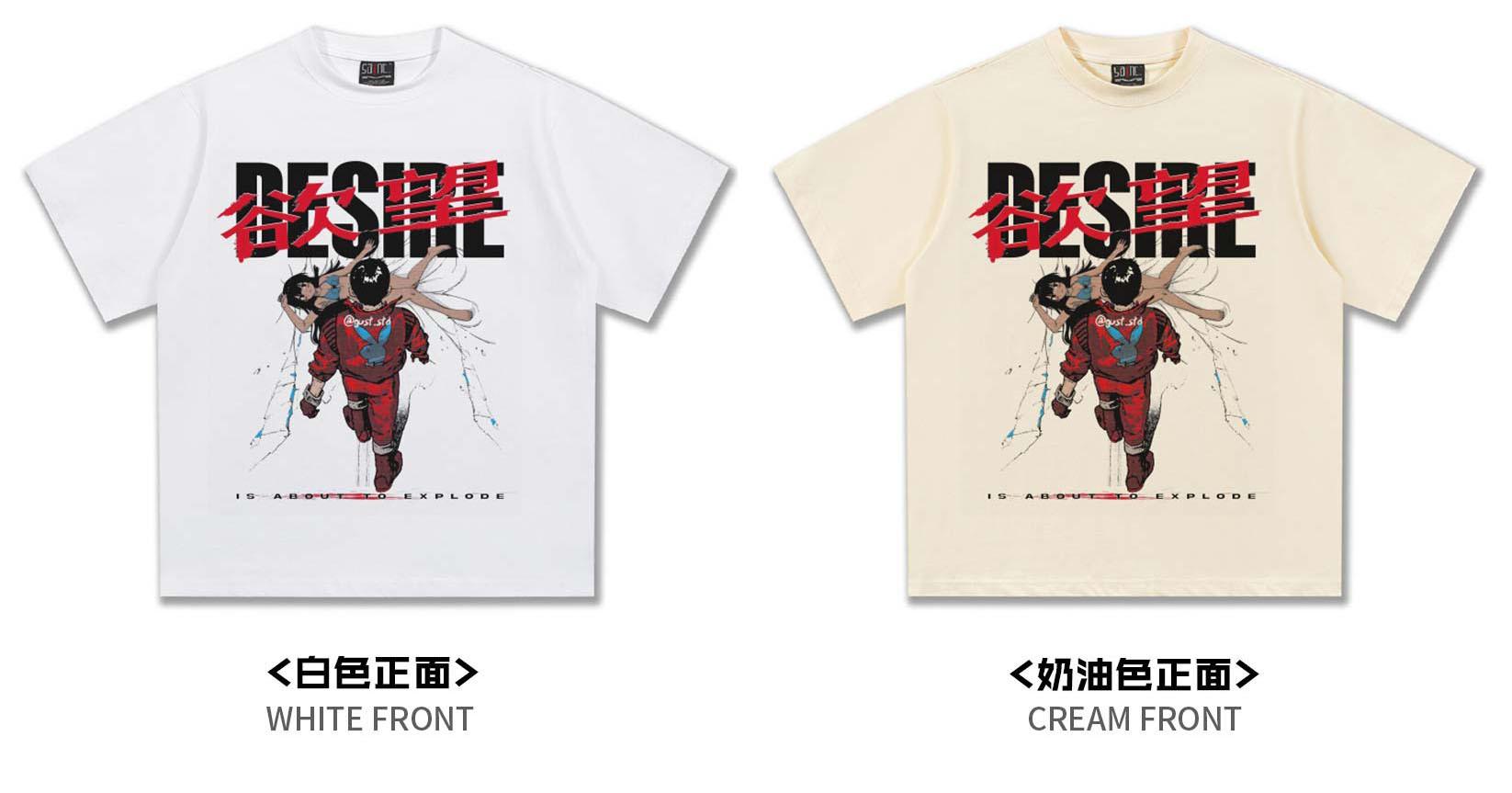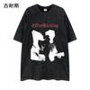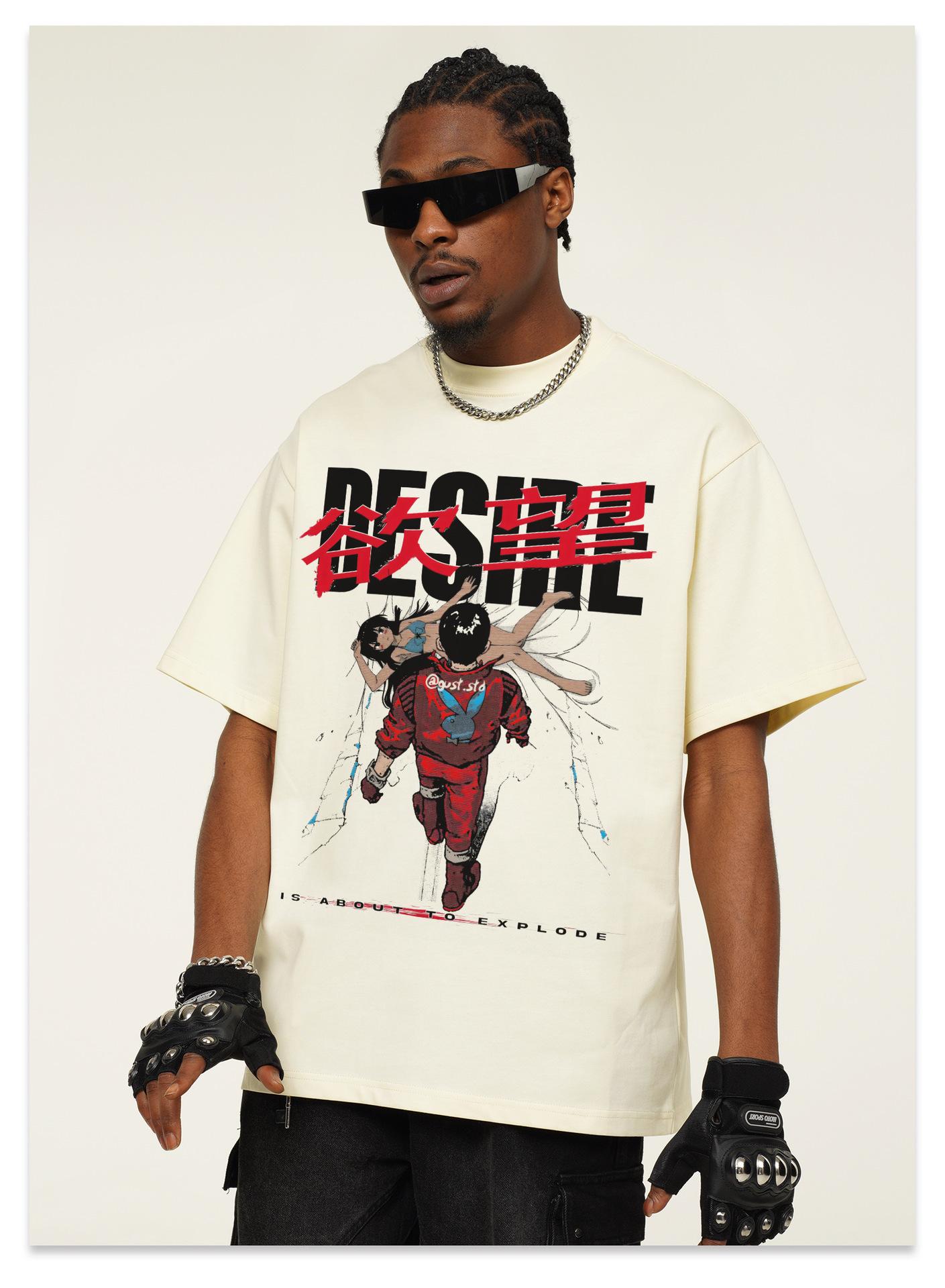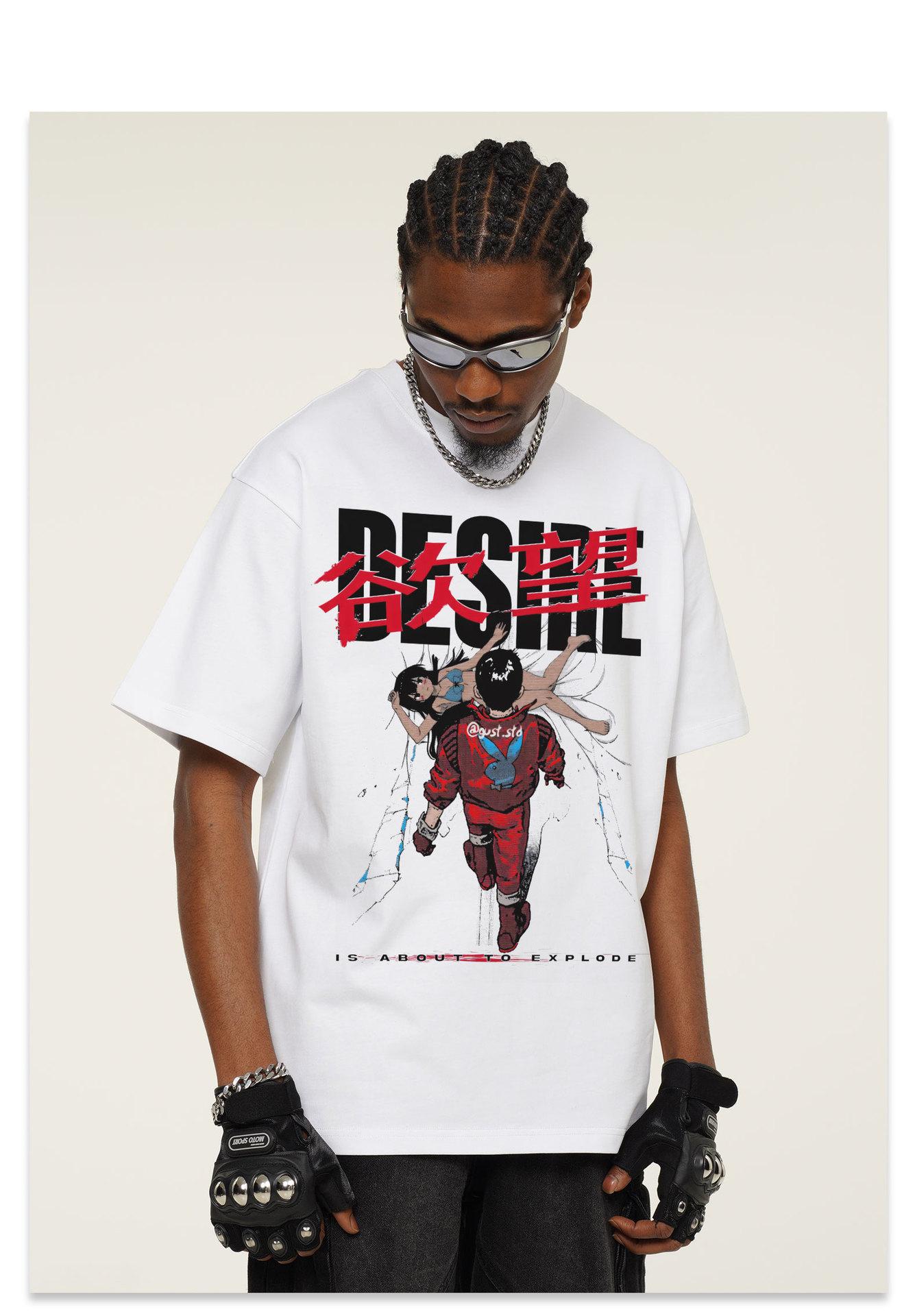 Camiseta de algodón pesado estilo retro americano Akira de verano 2025 con estampado de manga corta para hombre