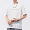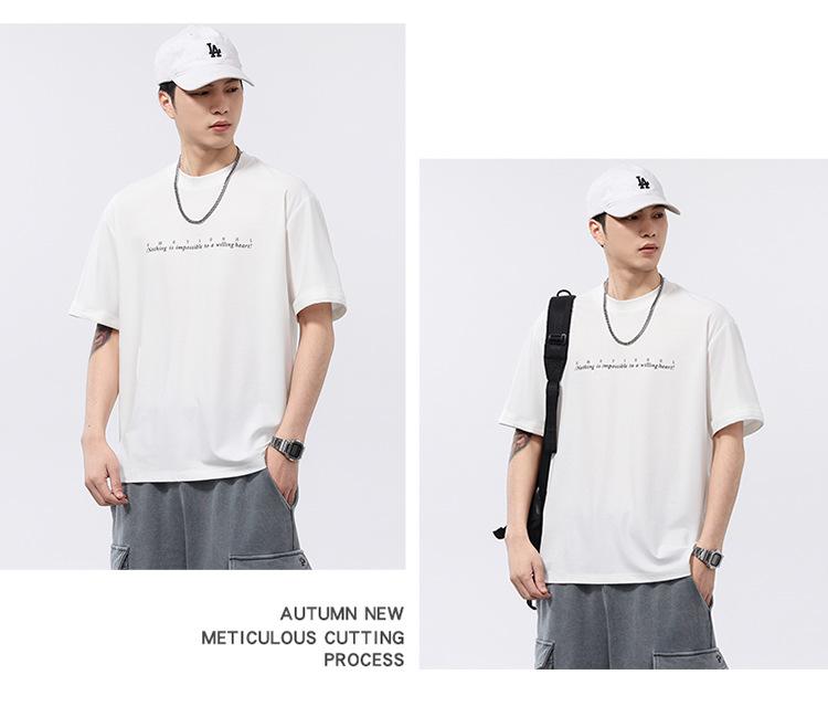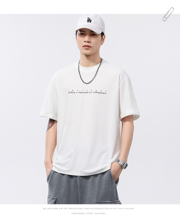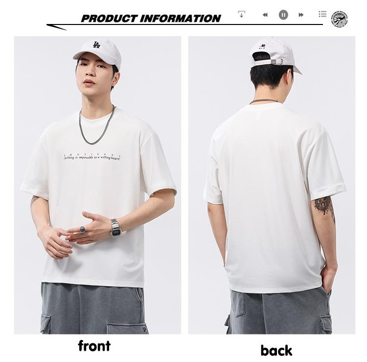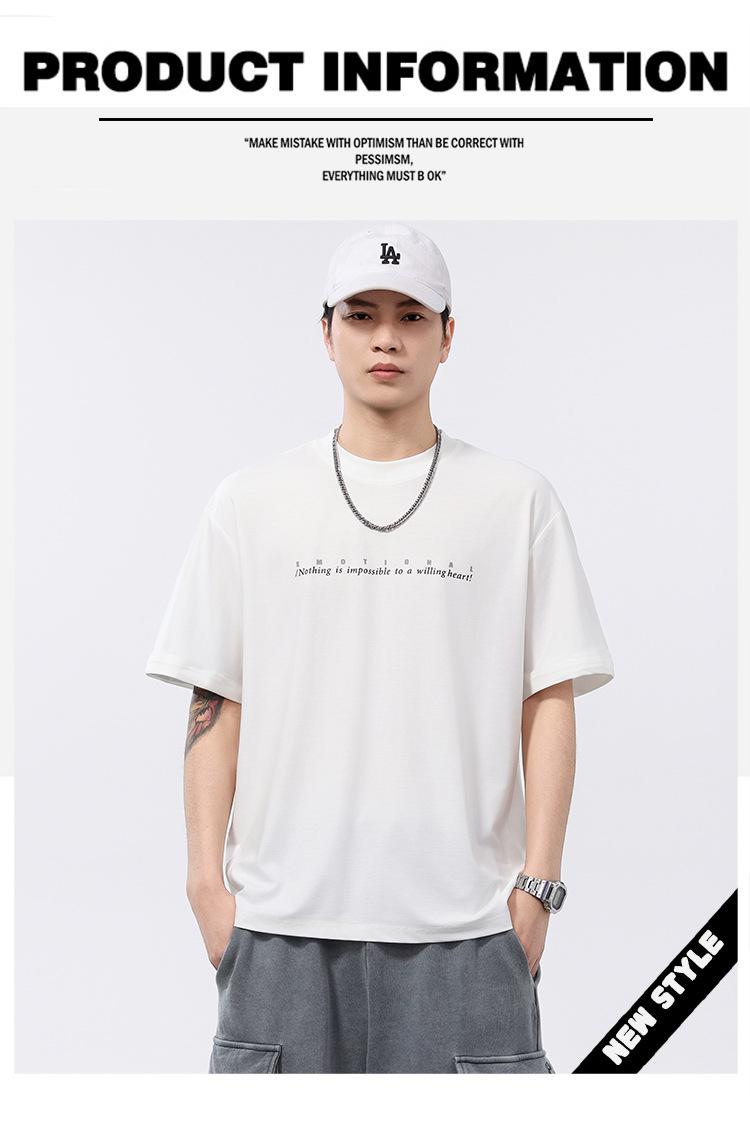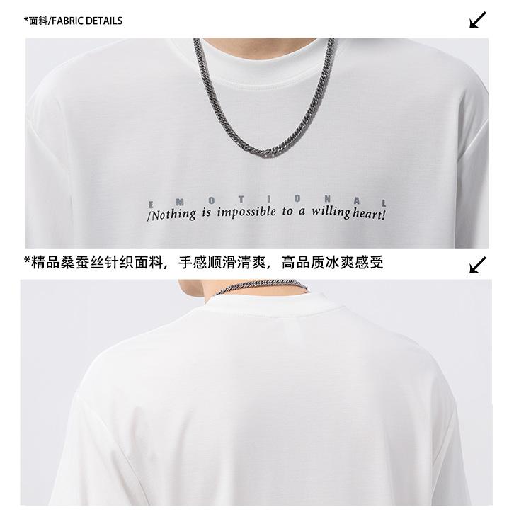 Camiseta de seda helada de verano, fina y fresca, con estampado americano, cuello redondo y manga corta para hombre, holgada, de talla grande.