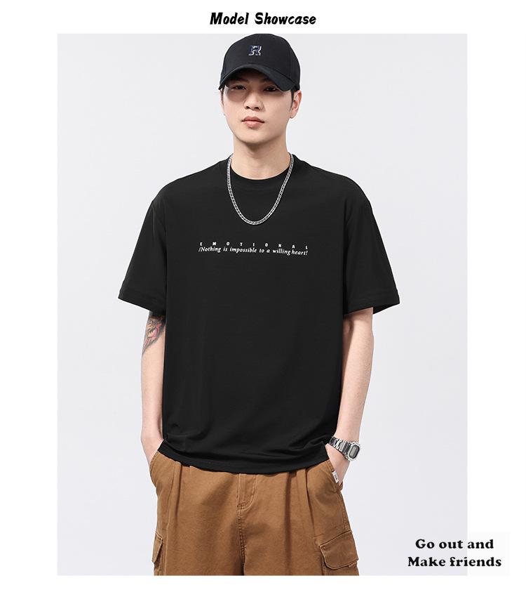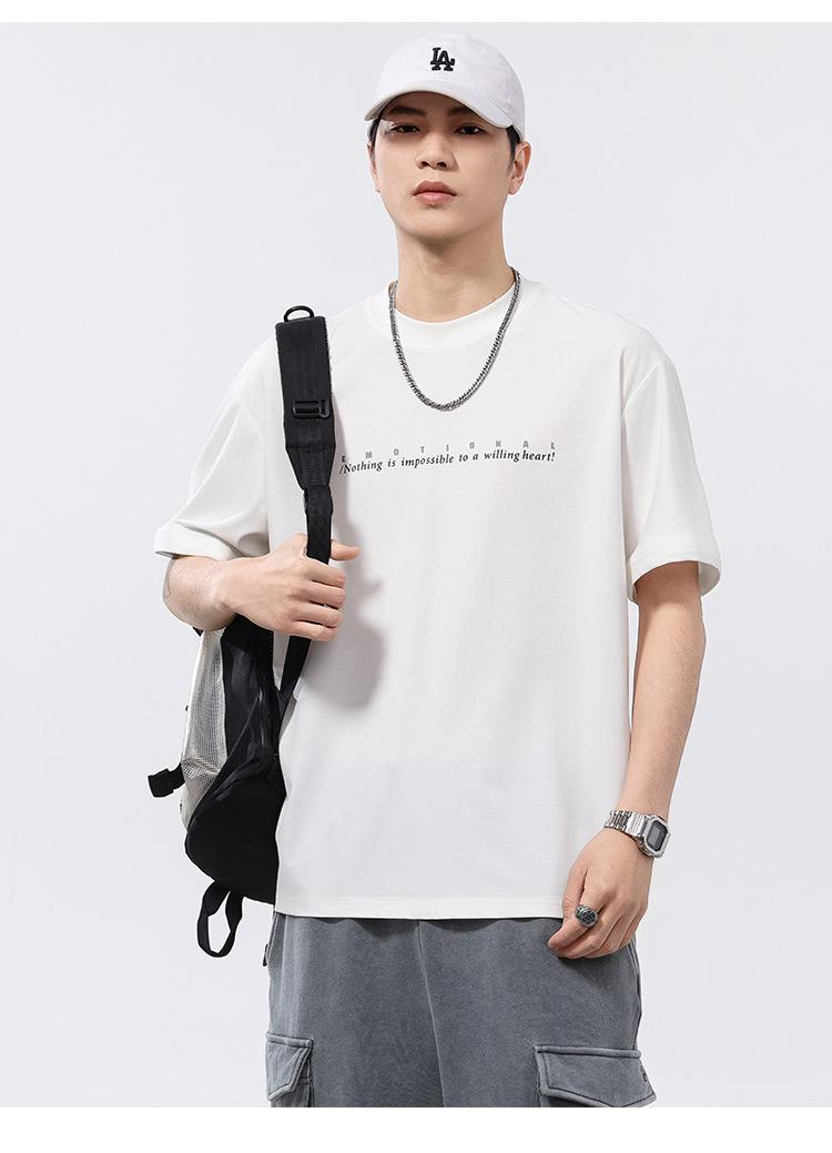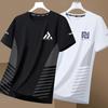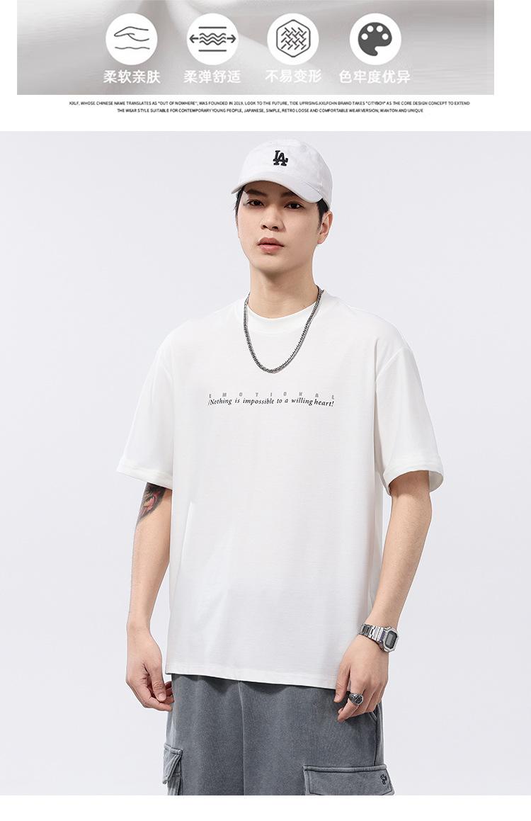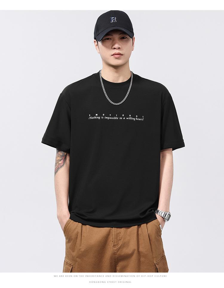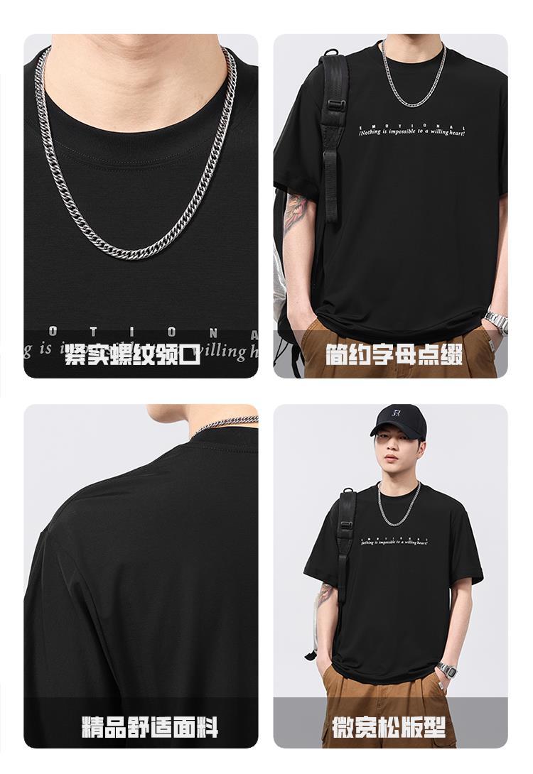 Camiseta de seda helada de verano, fina y fresca, con estampado americano, cuello redondo y manga corta para hombre, holgada, de talla grande.