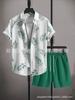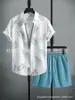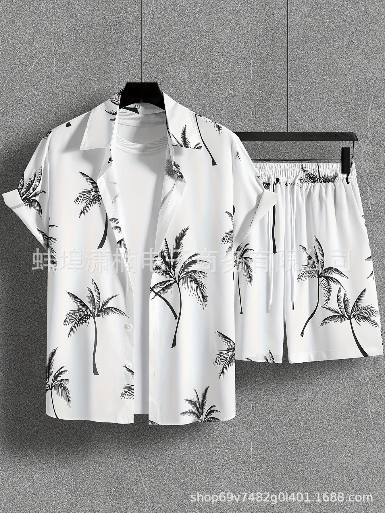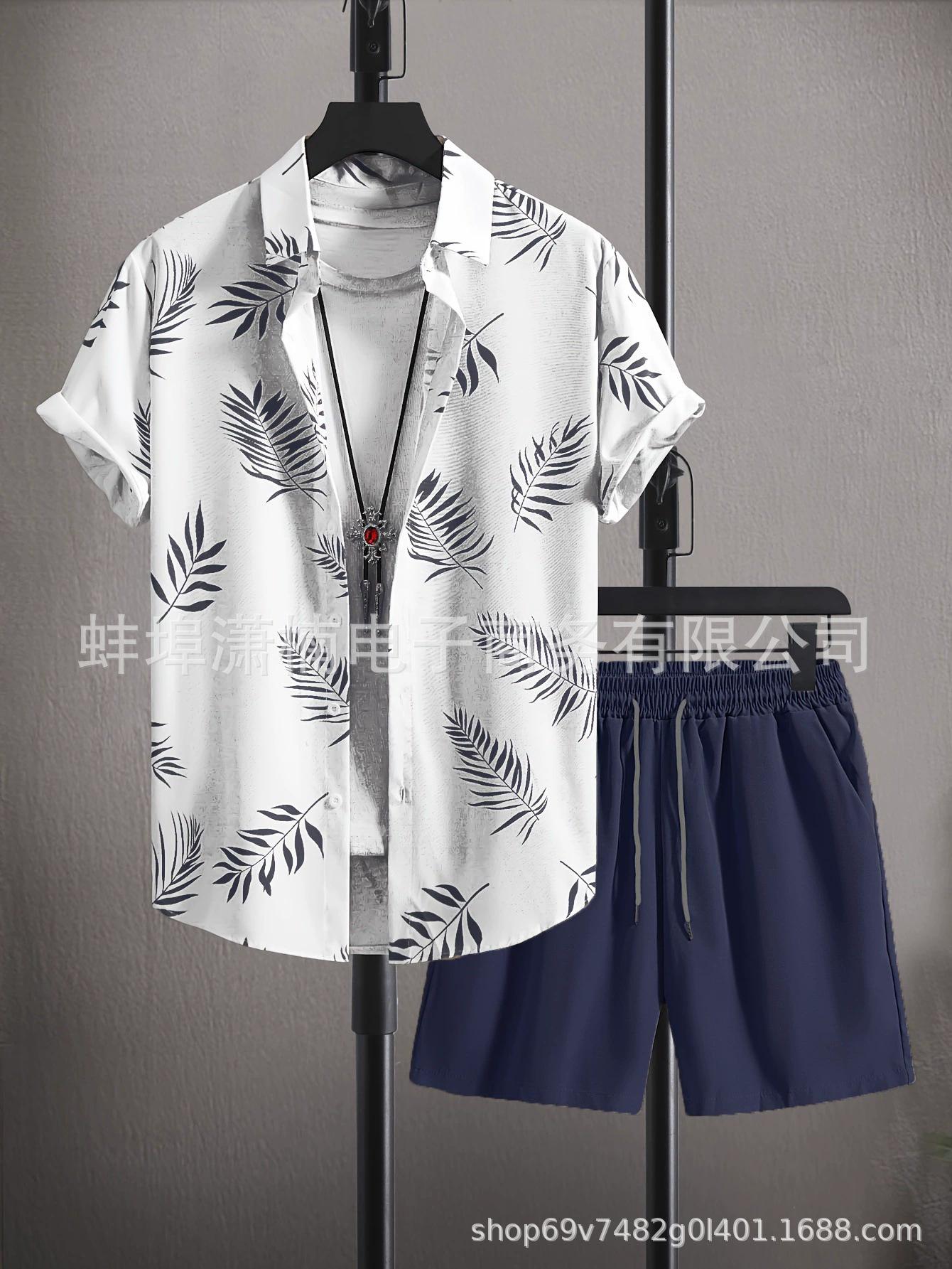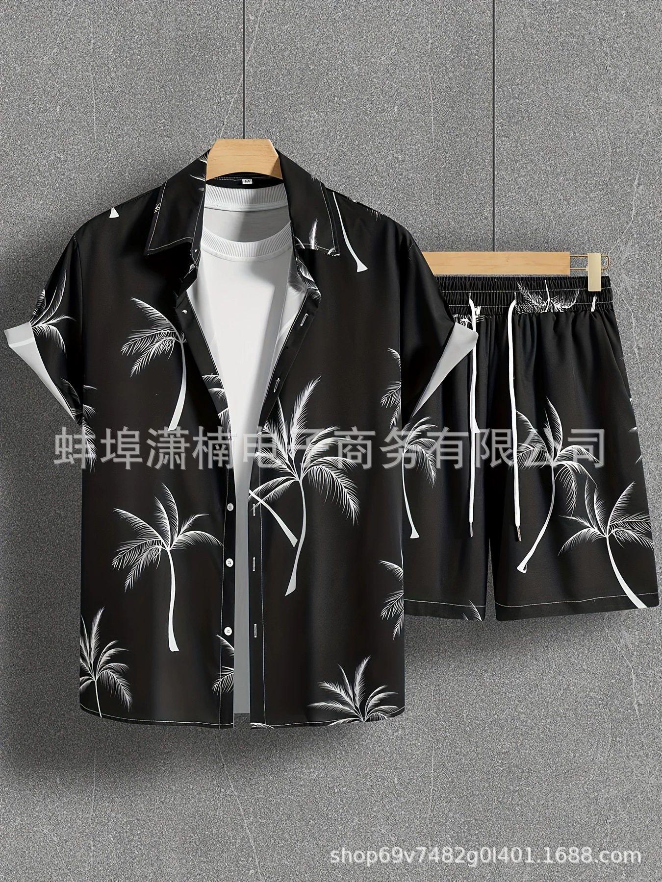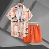 Europa y Estados Unidos transfronterizo 2025 verano nuevo traje de camisa y pantalones cortos impresión 3D ocio vacaciones cárdigan para hombre conjunto de dos piezas