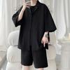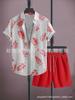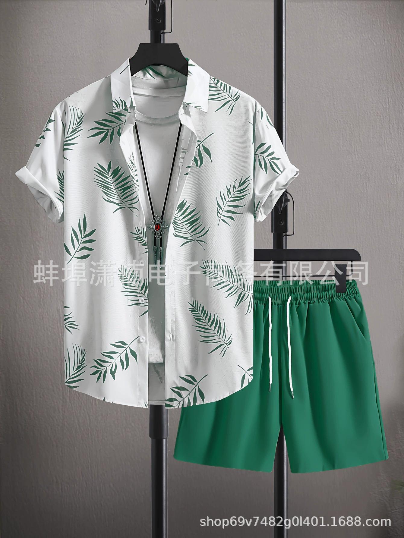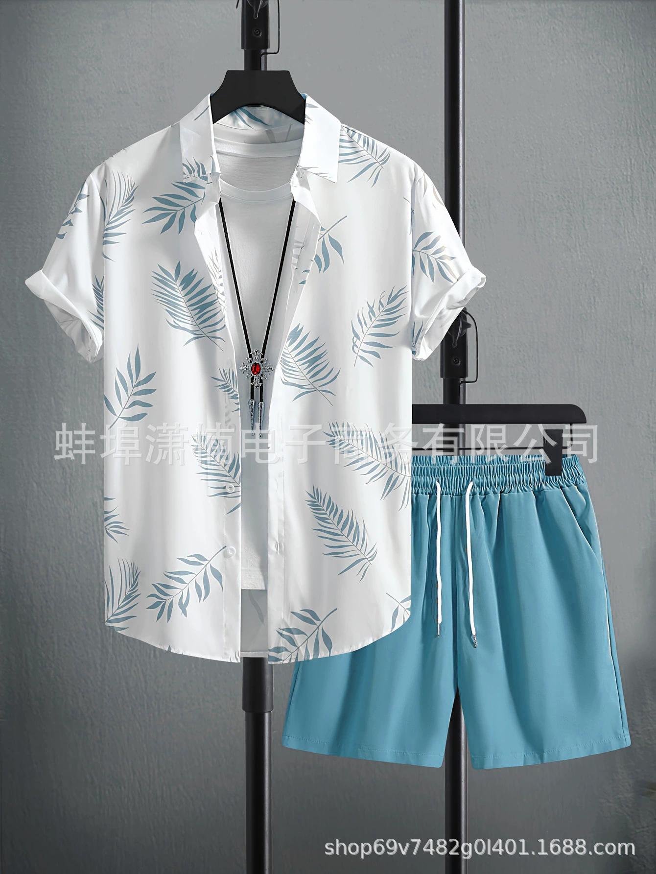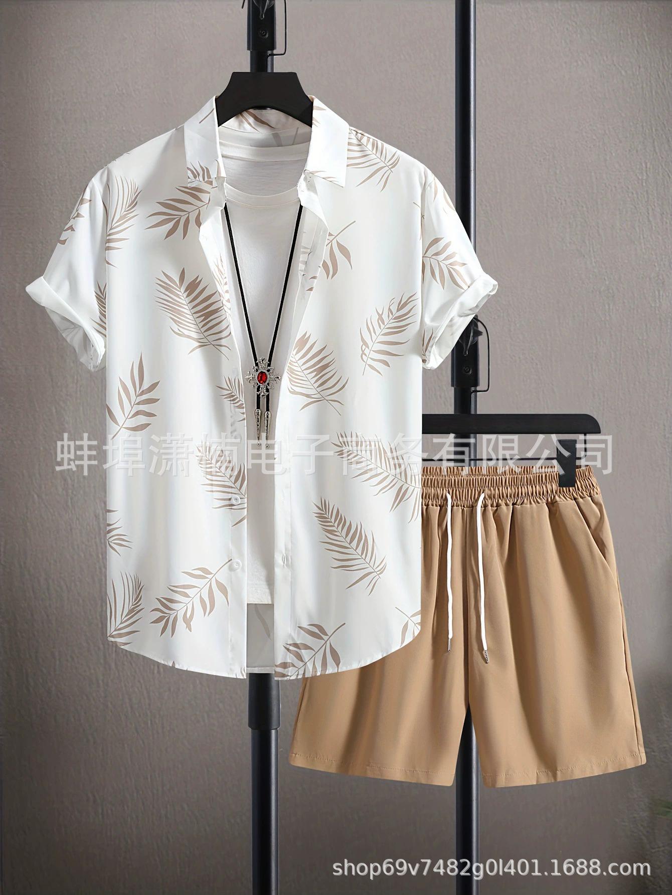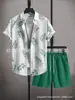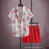 Europa y Estados Unidos transfronterizo 2025 verano nuevo traje de camisa y pantalones cortos impresión 3D ocio vacaciones cárdigan para hombre conjunto de dos piezas