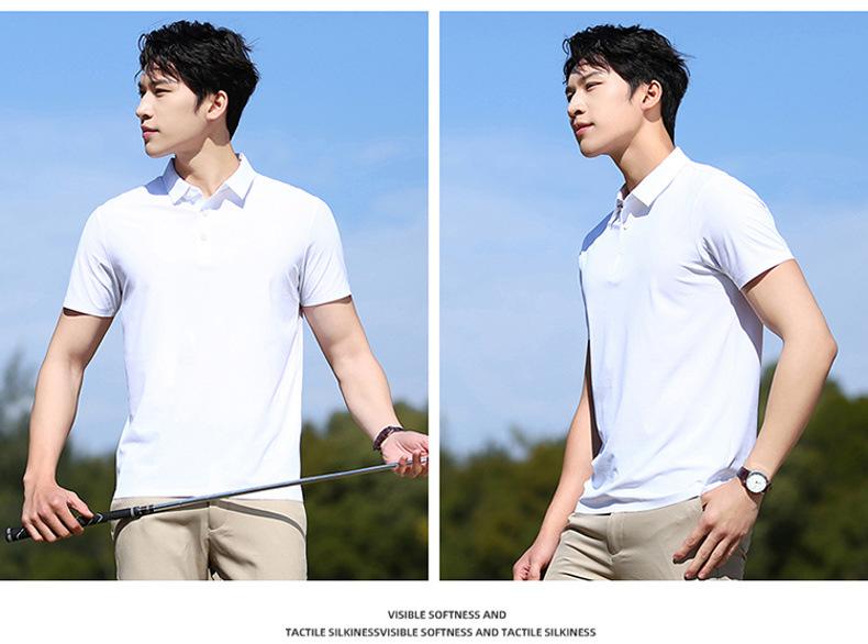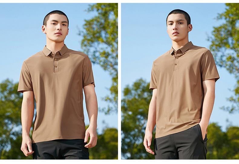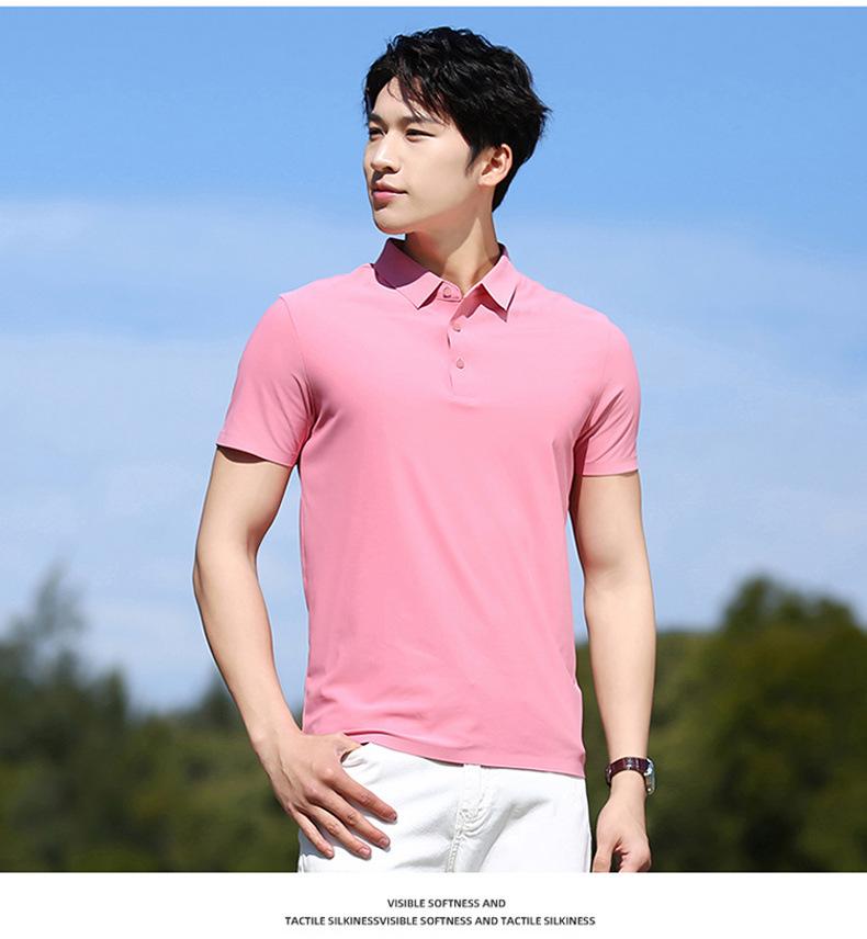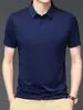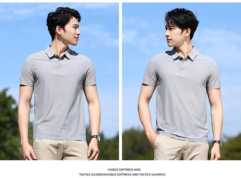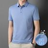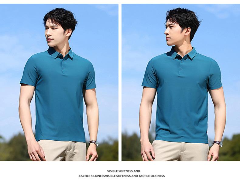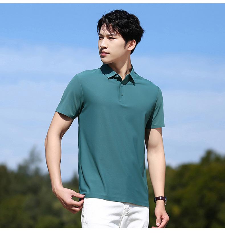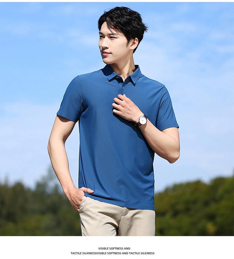 Polo de seda de hielo sin rastro para hombre, camiseta de verano fina, informal, elástica, transpirable, de manga corta, ropa de equipo de color liso para hombre