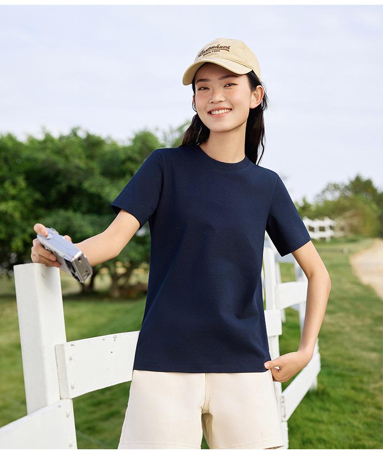 Playera de Verano de 260g Personalizada para Hombre de Manga Corta Algodón Personalizado 32 Hilos Dobles Cuello Redondo para Hombre Color Puro Logo Estampado
