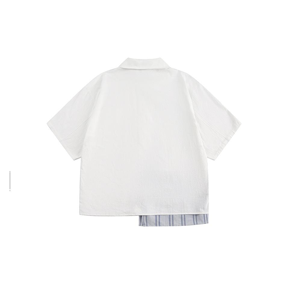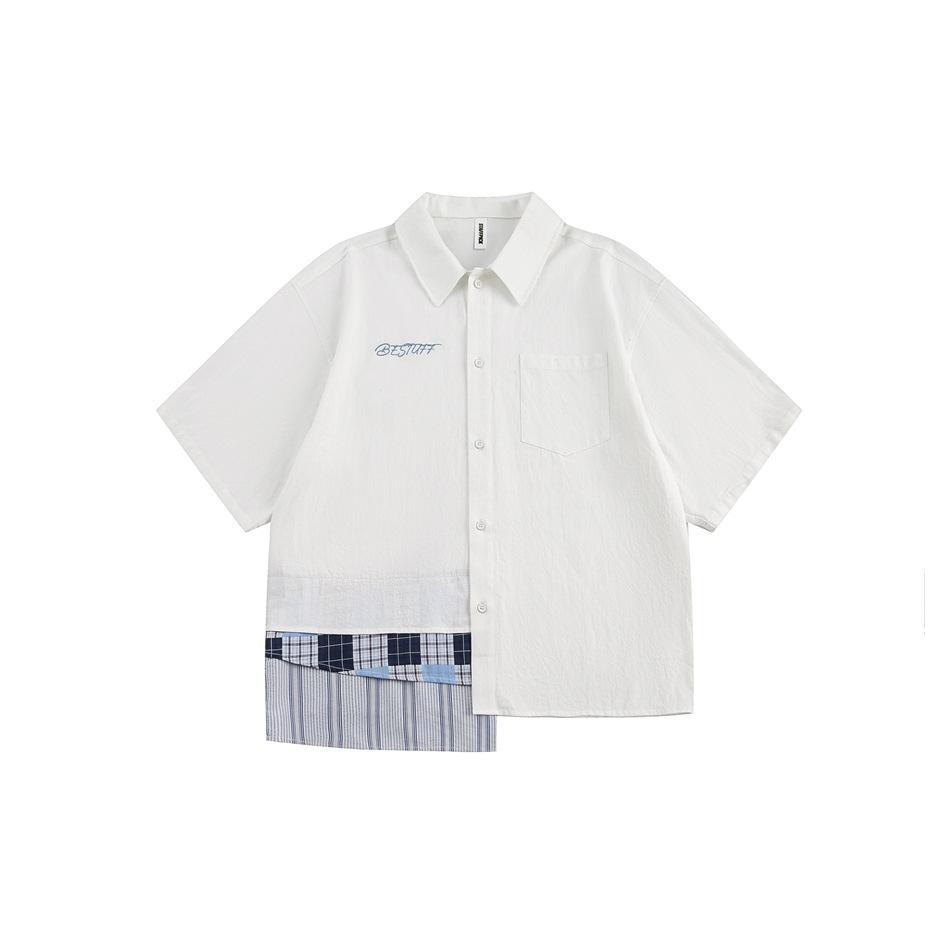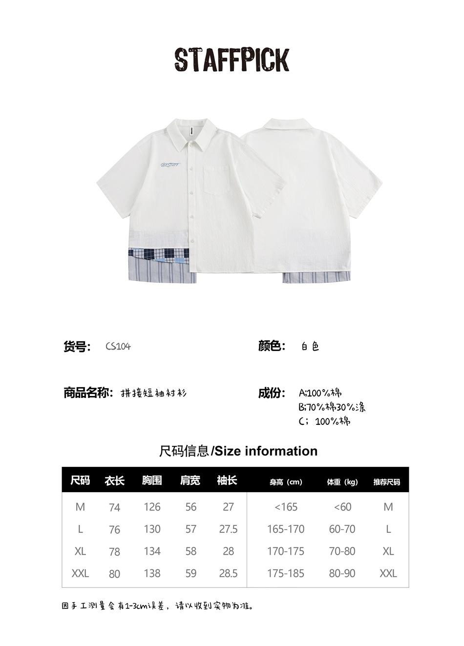 Camisa de manga corta con solapa y costuras retro de diseño STAFFPICK para hombre y mujer, camisa de marca de moda de verano para parejas CS104