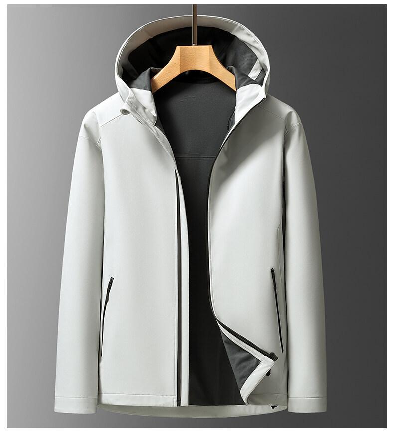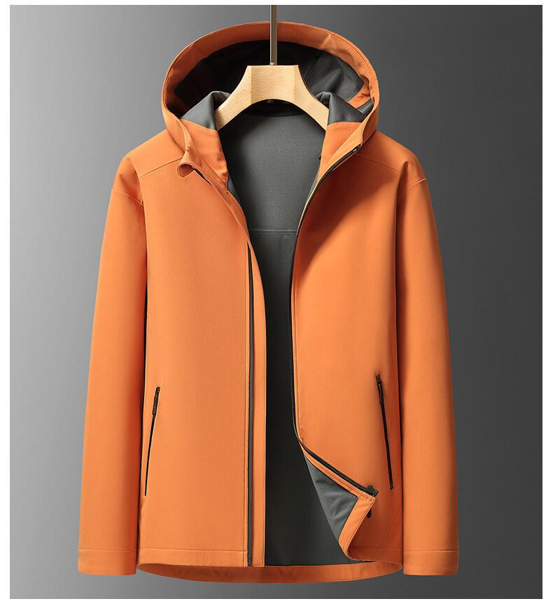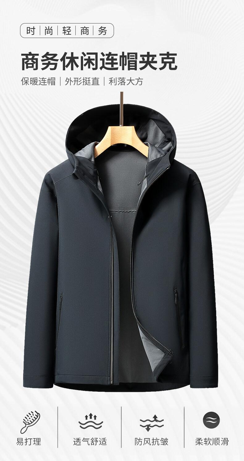 Chaqueta de hombre 2025, primavera y otoño, cuello vertical fino, con capucha, para jóvenes de mediana edad, de lujo, informal, para actividades al aire libre y de negocios.