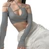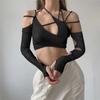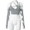 Scheming, solid color, suspenders, halter neck, exposed navel