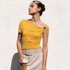 Verano 2025, nueva blusa de estilo europeo y americano para mujer, color liso brumoso, con cuello halter, sin espalda y mangas abullonadas, venta al por mayor