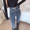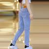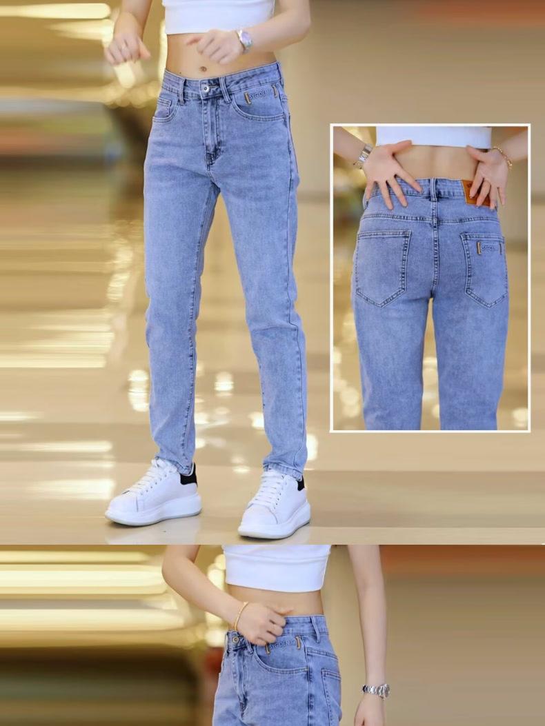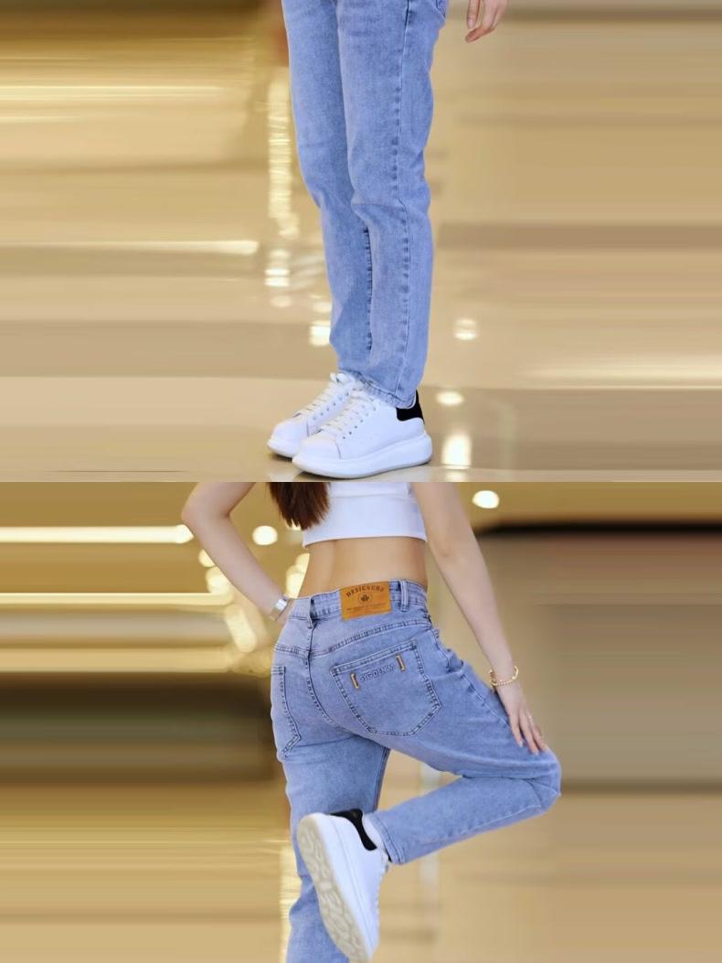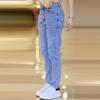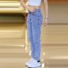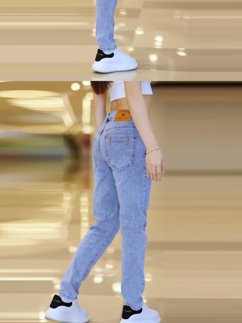 Pantalones vaqueros de verano para mujer, estilo coreano, finos, de corte ajustado, de alta gama, azul claro, rectos, elásticos, informales, largos