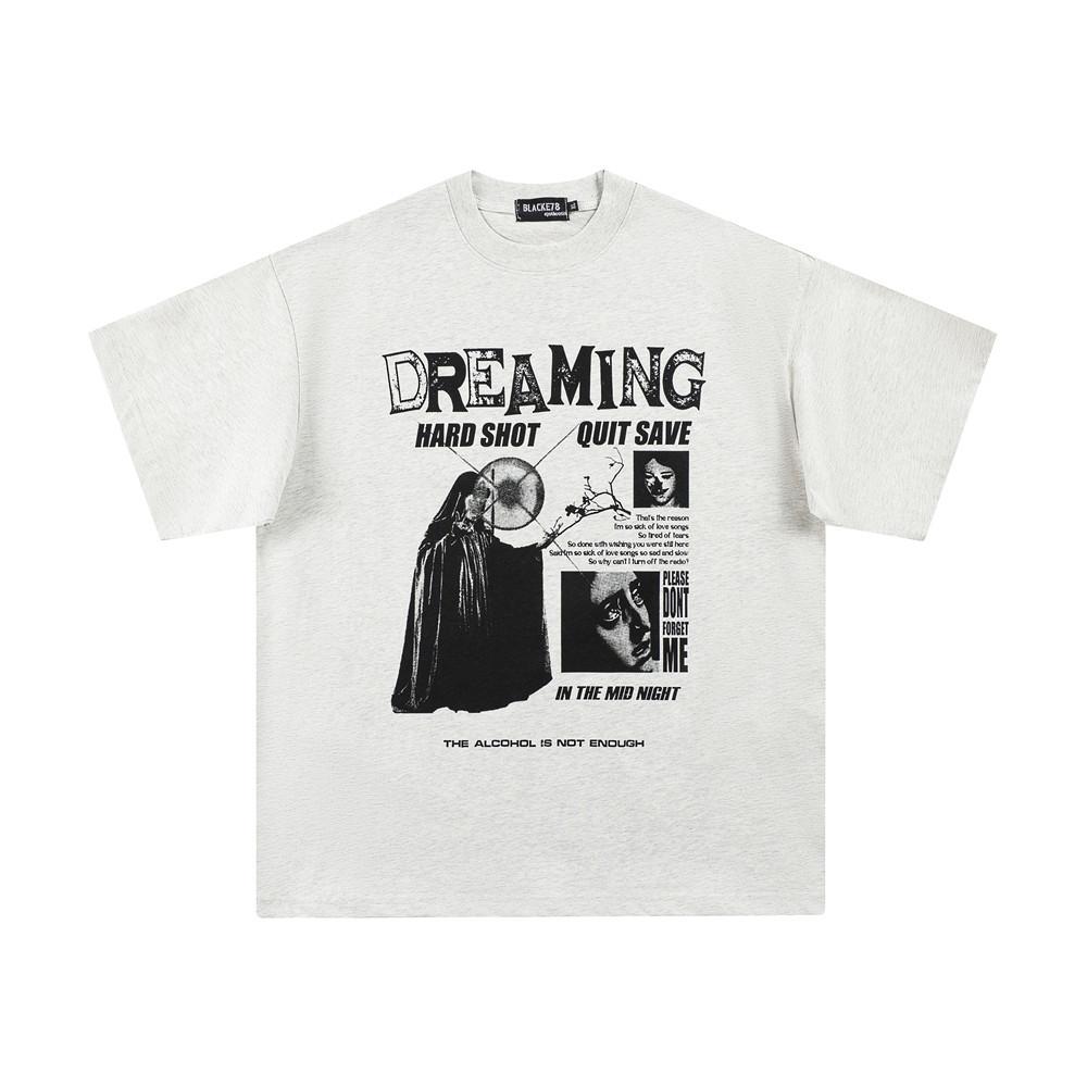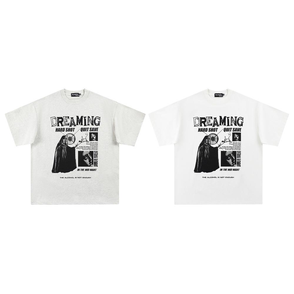 Camiseta de manga corta con estampado de figura extraña funeraria para hombre, estilo europeo y americano, de verano, holgada, de algodón puro, informal y distintiva.