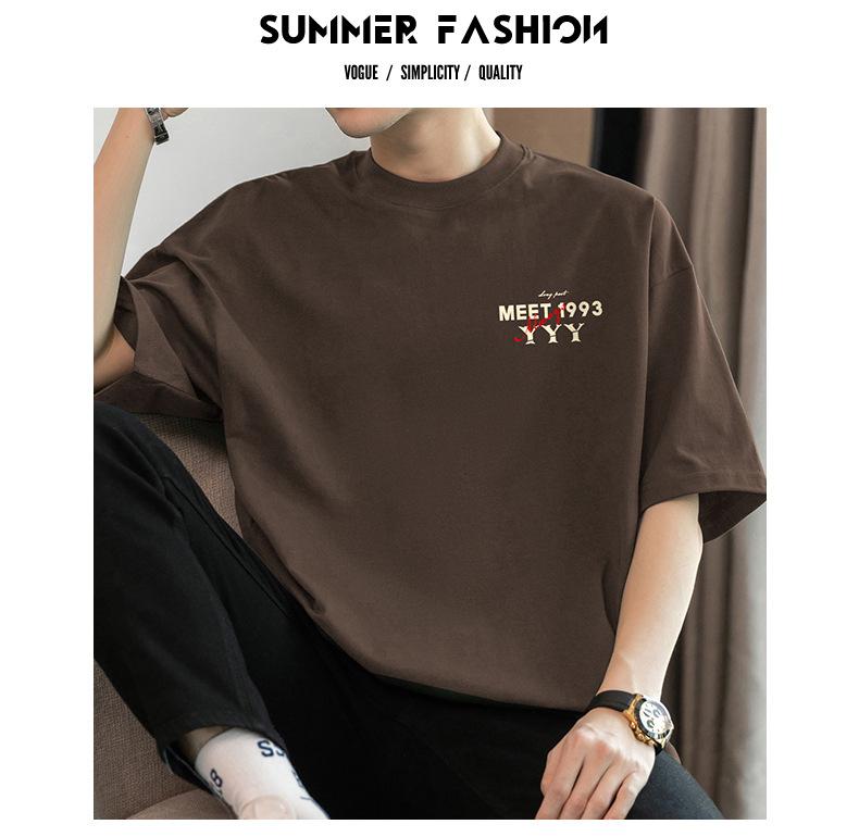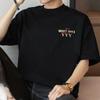 Camiseta americana de algodón de manga corta para hombre, cuello redondo, color negro, holgada, de verano, de media manga, 260 g