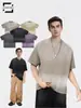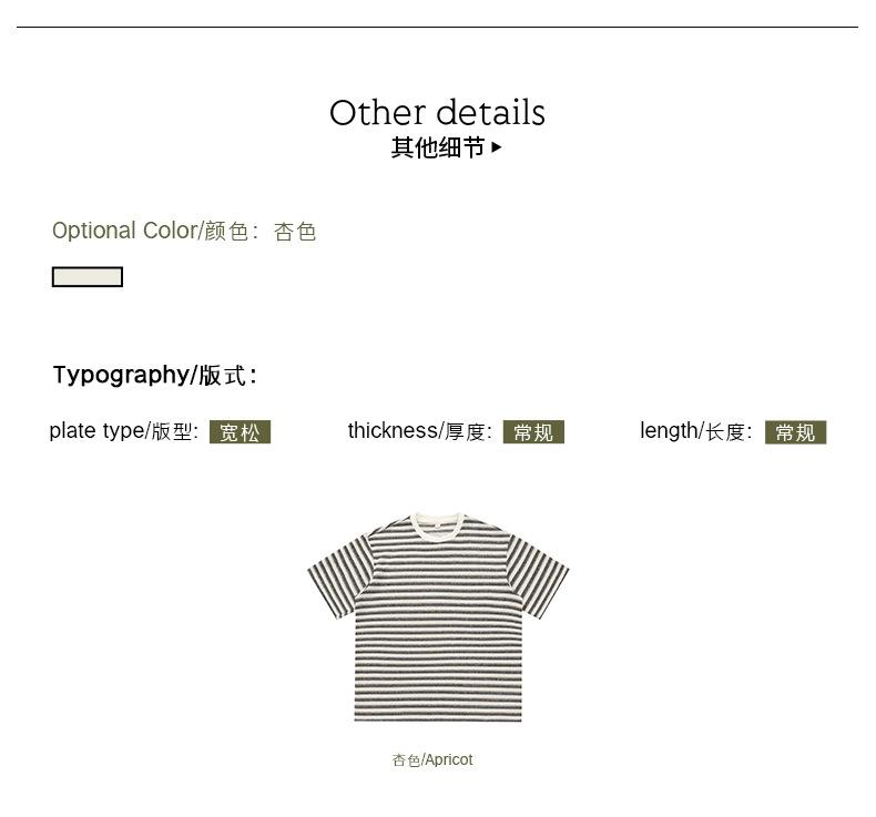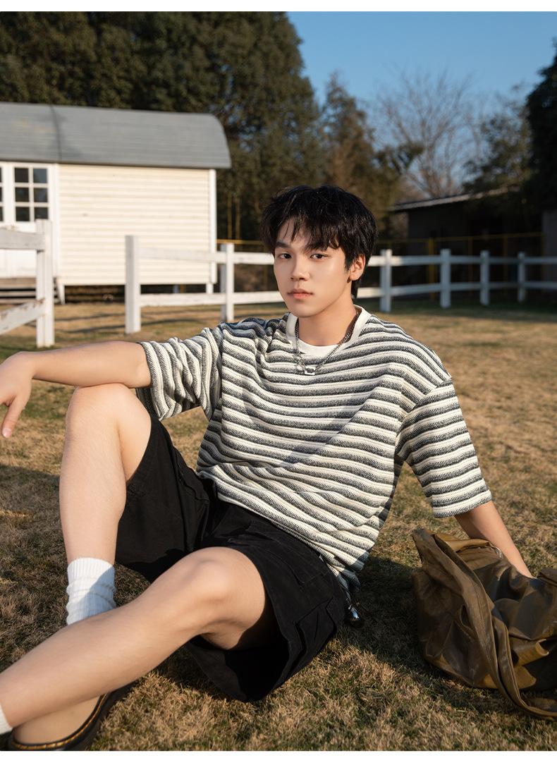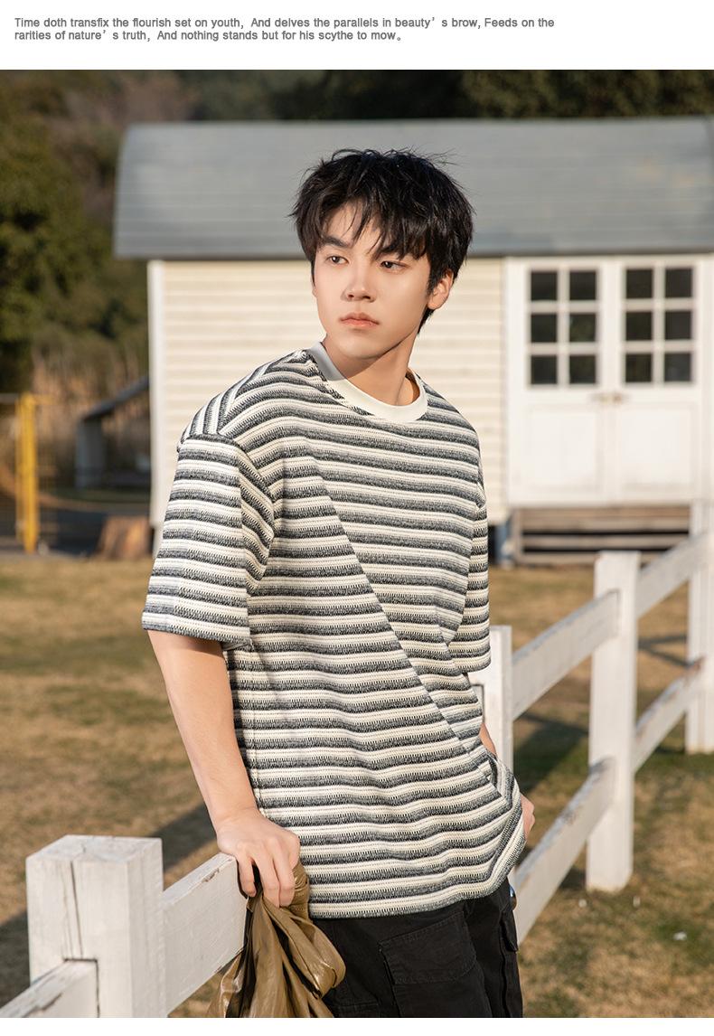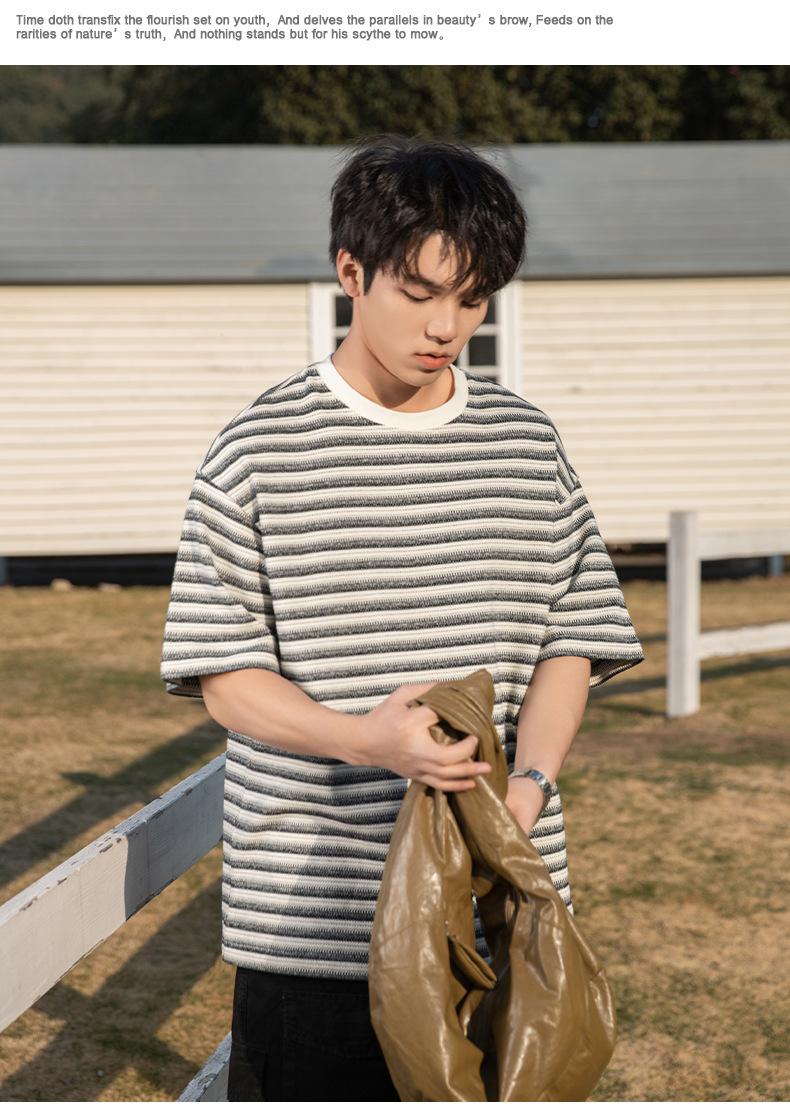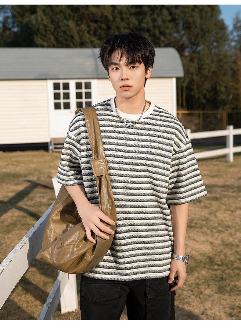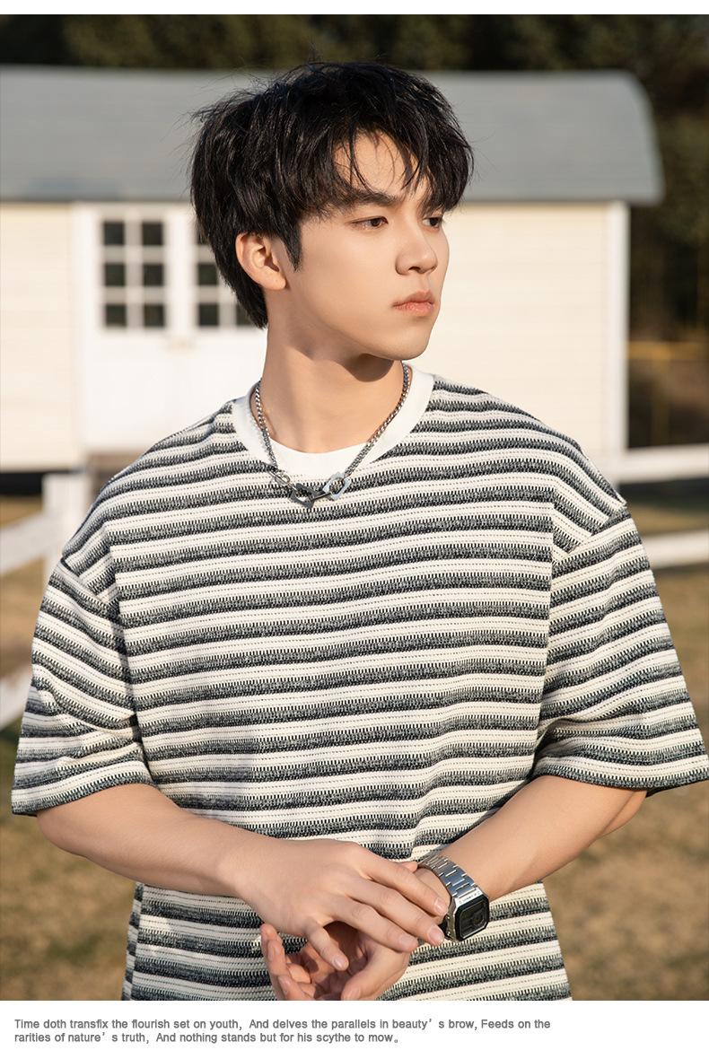 Playera de Manga Corta Rayas de Contraste Pesado 310g para Hombre Verano Casual Suelta Moderna Marca Retro Texturizada Q