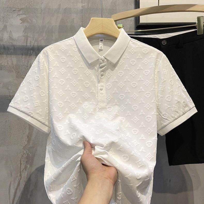 Polo informal de jacquard ligero y de lujo, de moda, de verano, cómodo, transpirable, juvenil, ajustado, de manga corta para hombre.