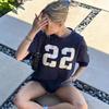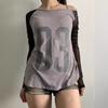 Principios de Otoño Americano Retro Casual Top Camiseta Digital Estampada Suelta Cuello Redondo Manga Larga Personalidad Transfronteriza Ins Europea y Americana