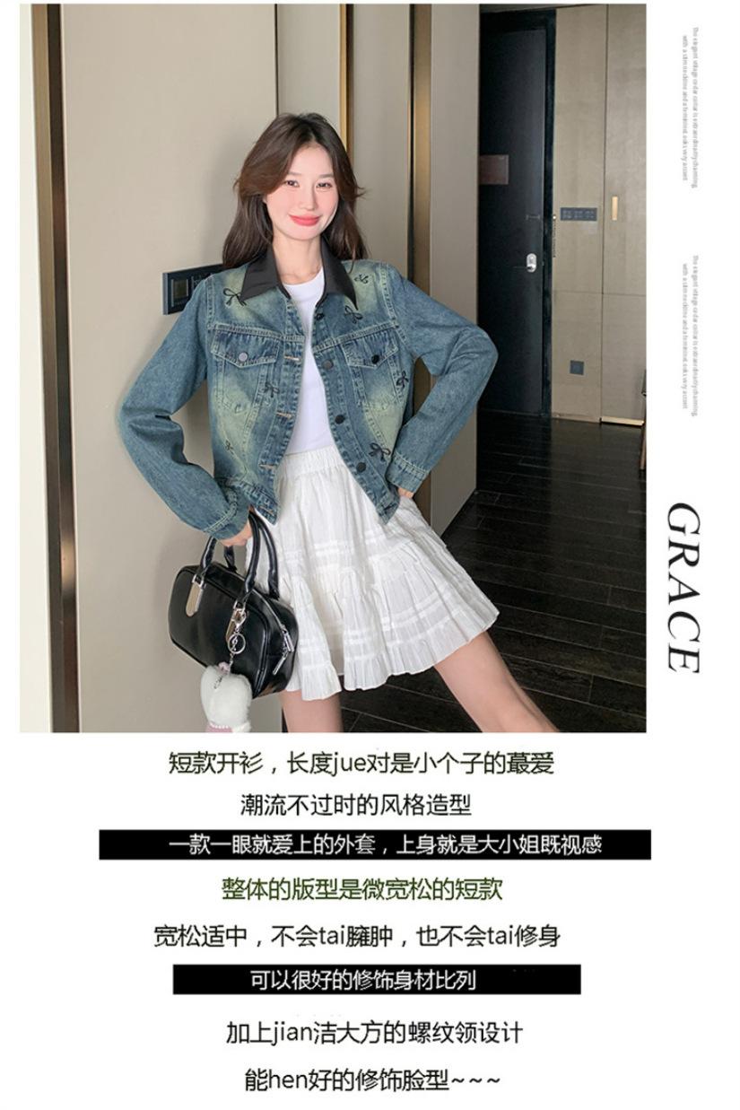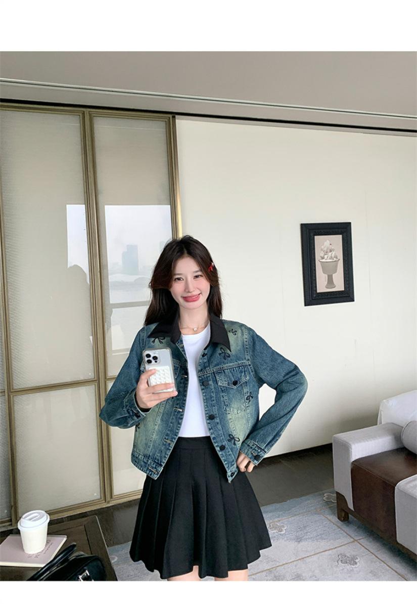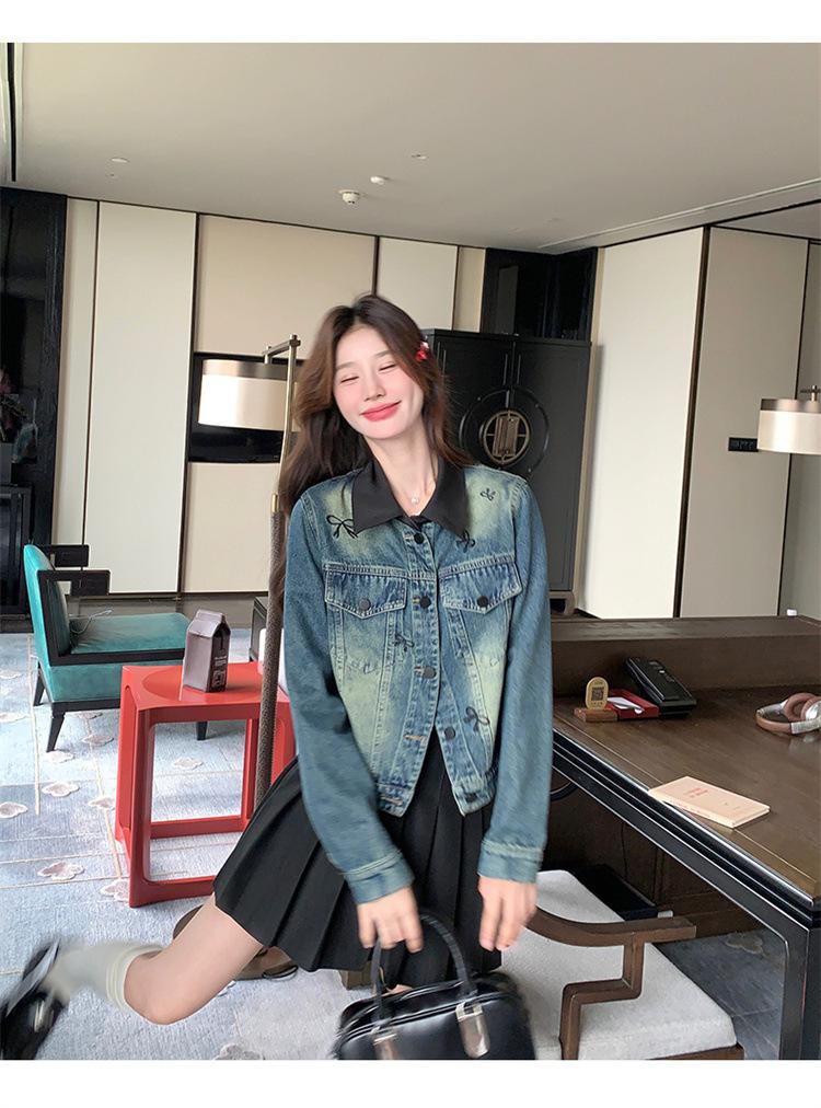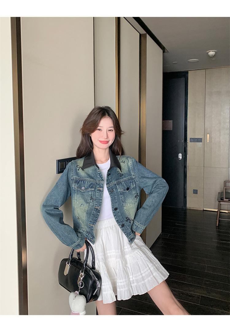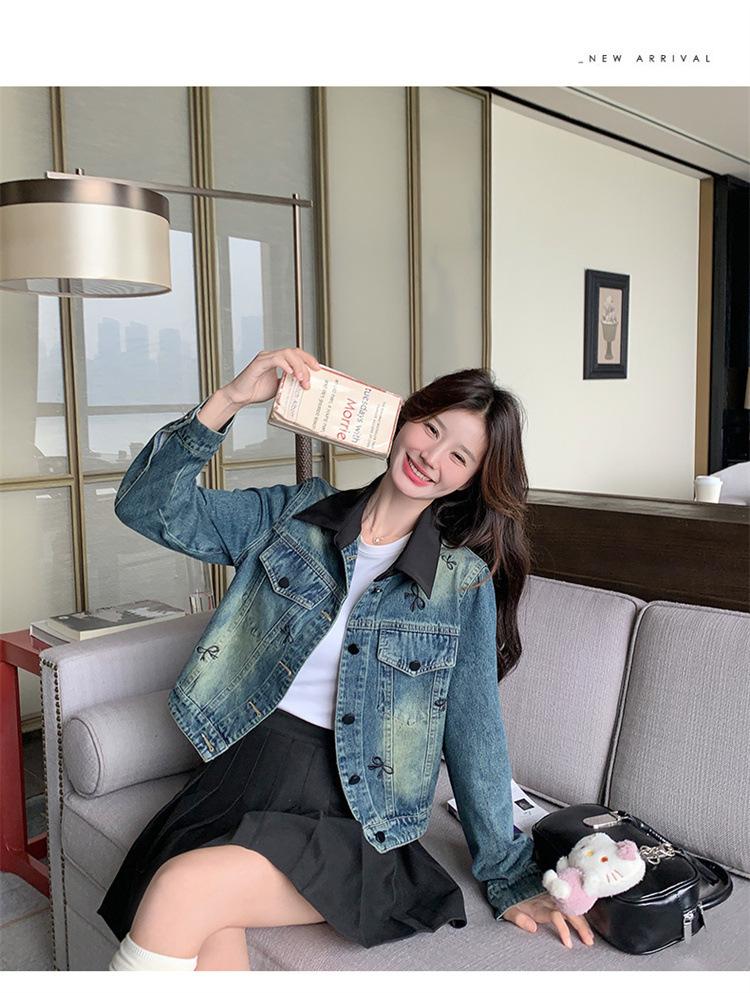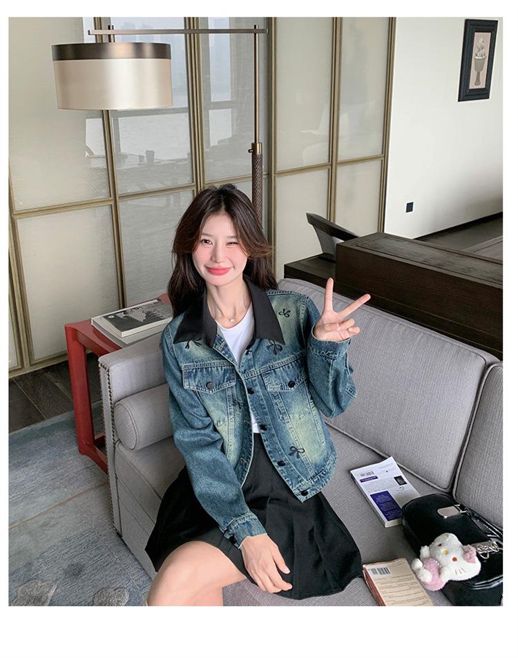 Chaqueta de mezclilla bordada coreana para mujer, corta, primavera y otoño, nueva, diseño dulce, chaqueta de moda