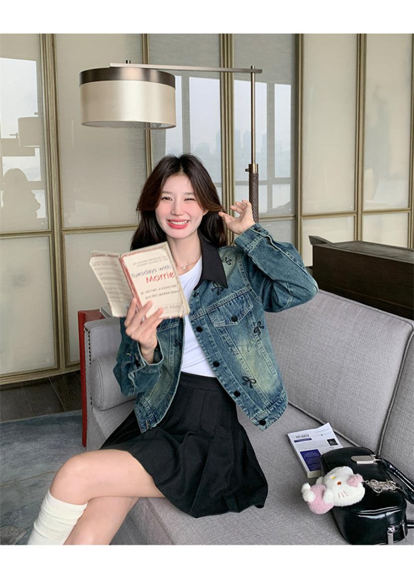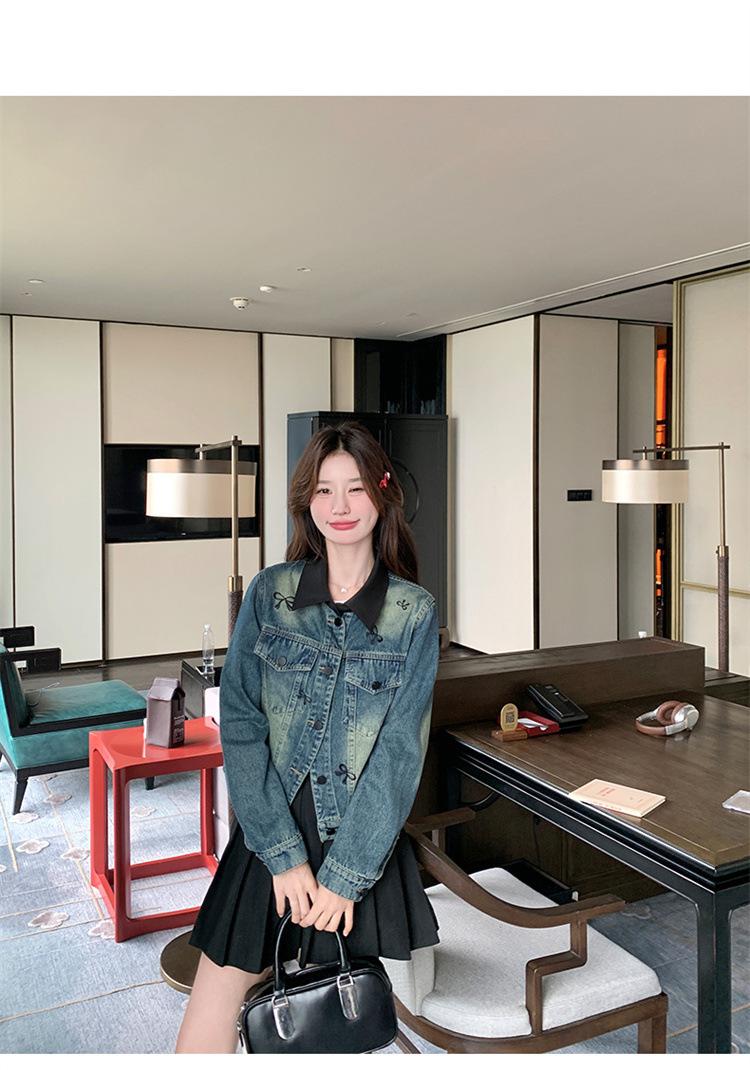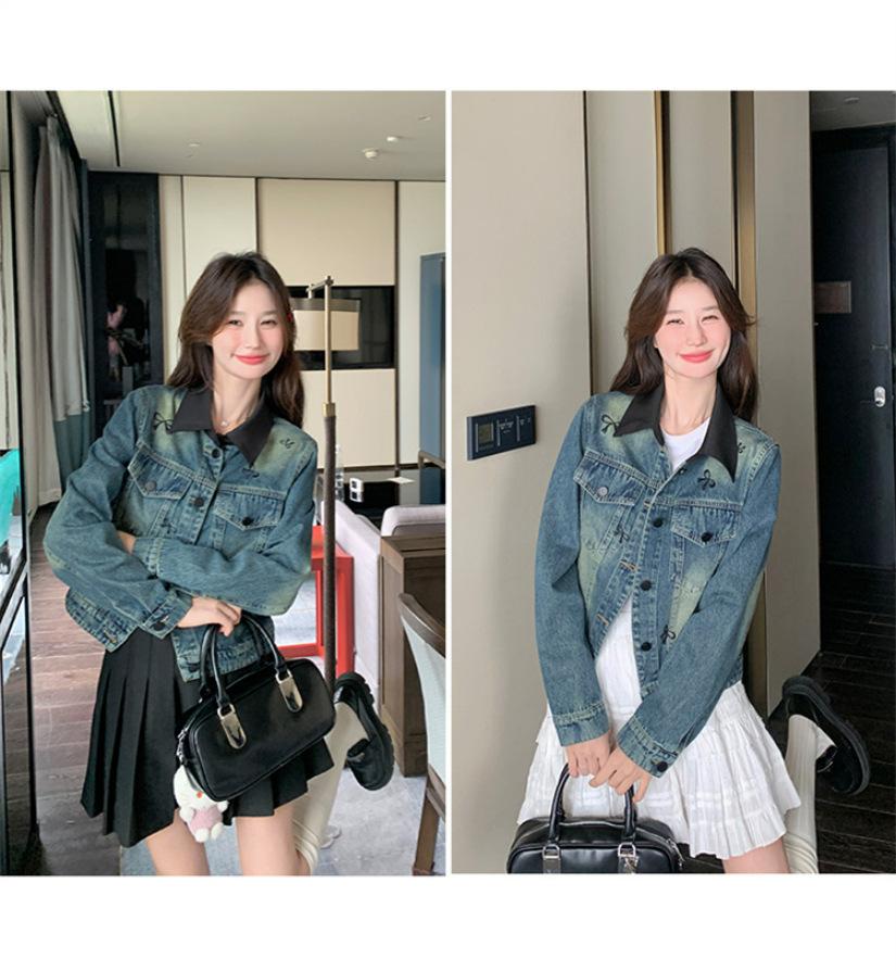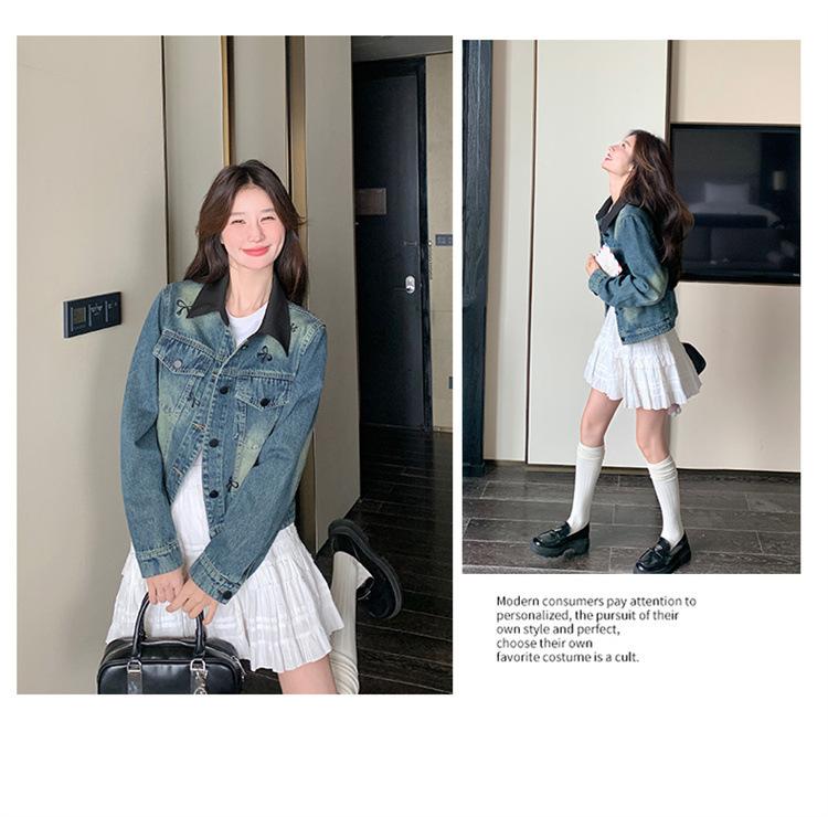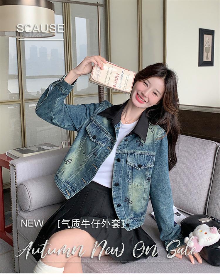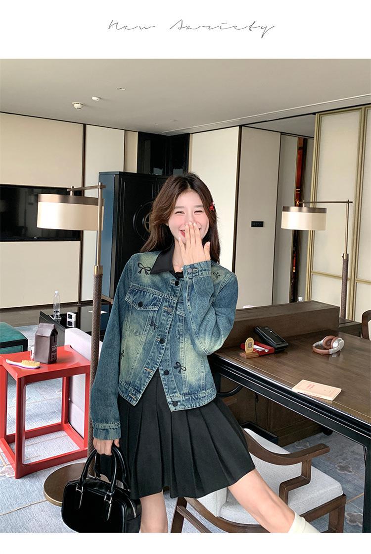 Chaqueta de mezclilla bordada coreana para mujer, corta, primavera y otoño, nueva, diseño dulce, chaqueta de moda