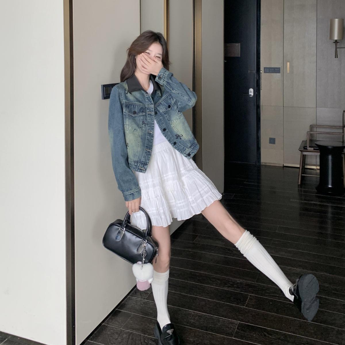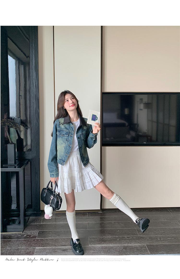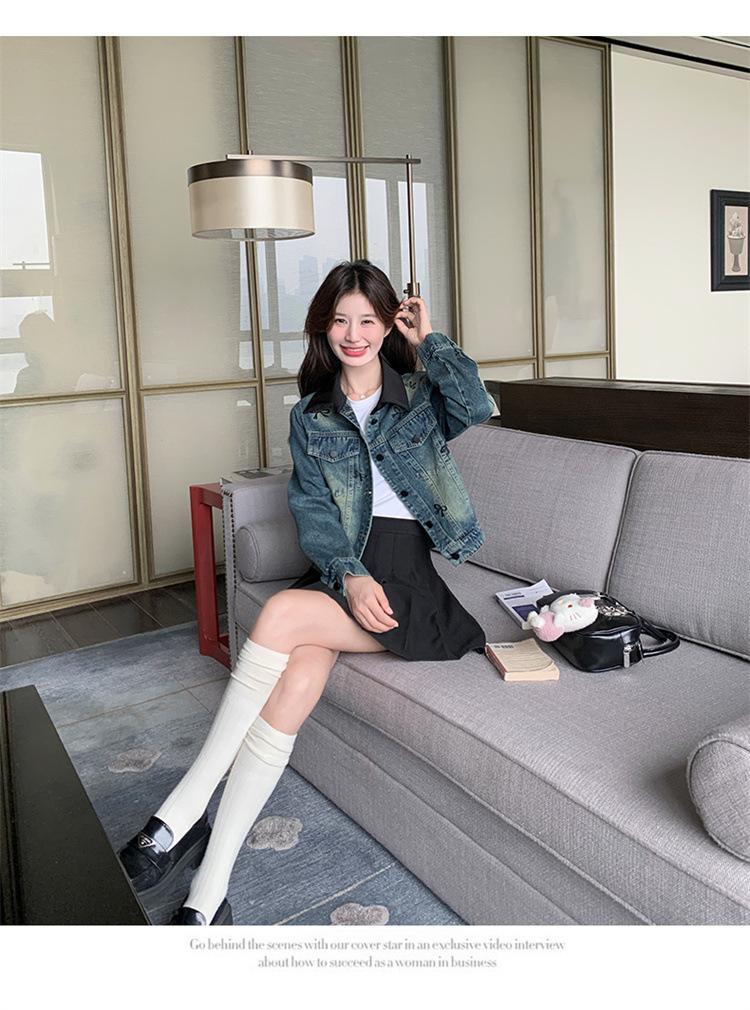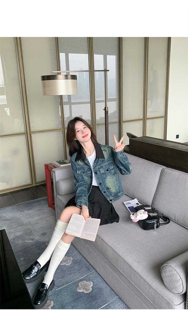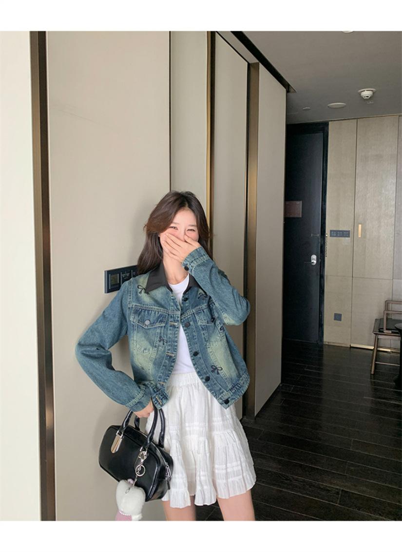 Chaqueta de mezclilla bordada coreana para mujer, corta, primavera y otoño, nueva, diseño dulce, chaqueta de moda