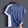 Camiseta de manga corta para hombre, de verano, para correr, transpirable, fitness, de seda fría, de secado rápido, fina, deportiva, con cuello redondo.