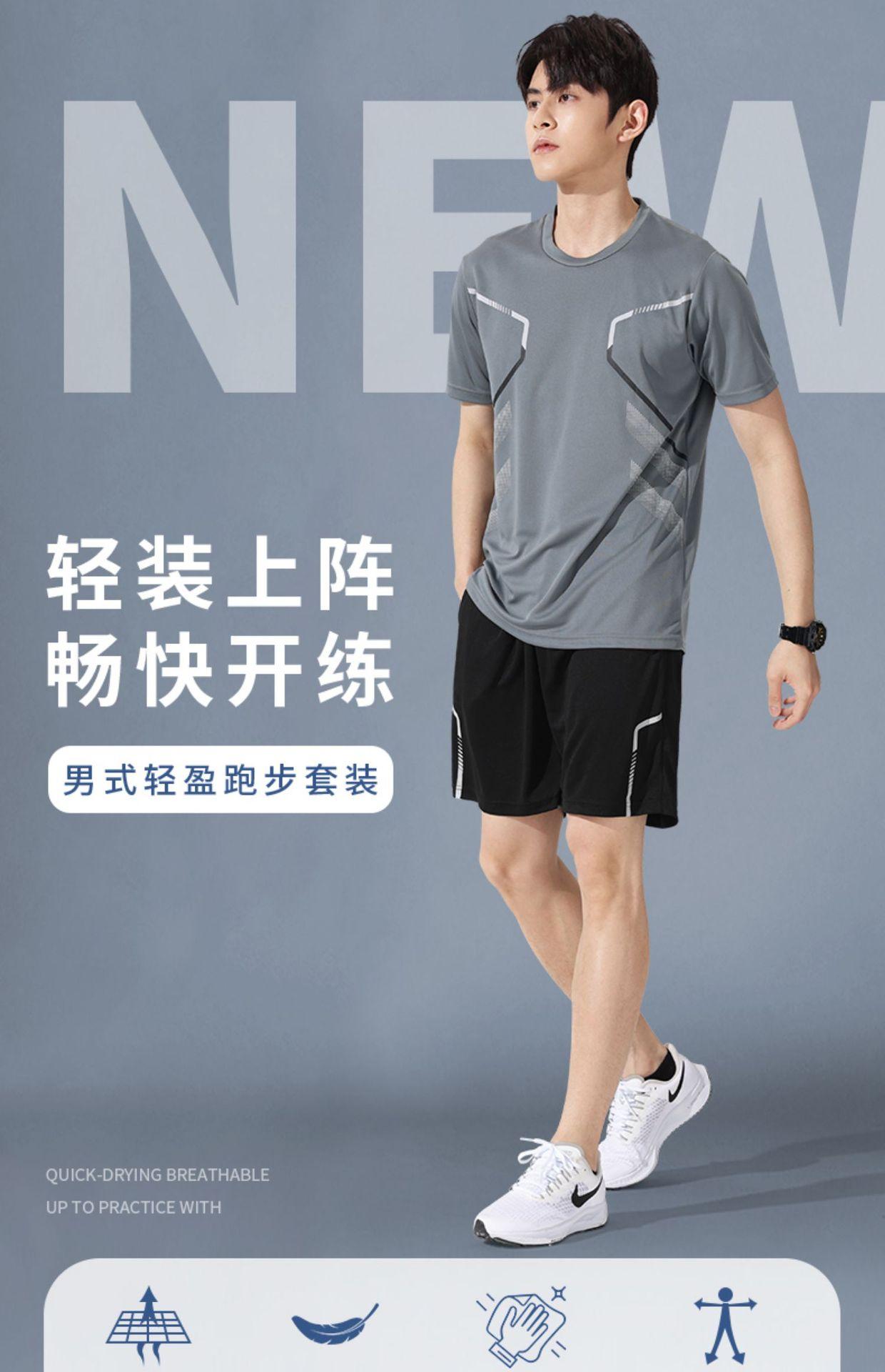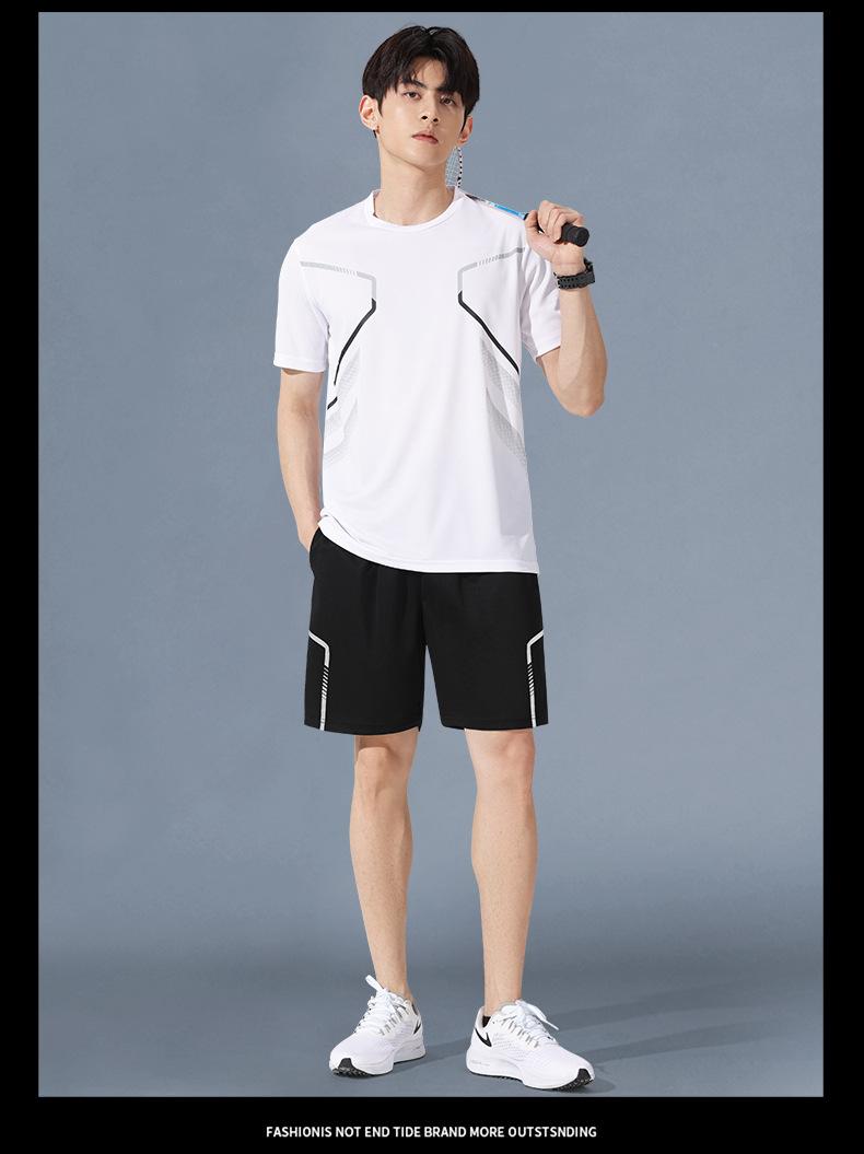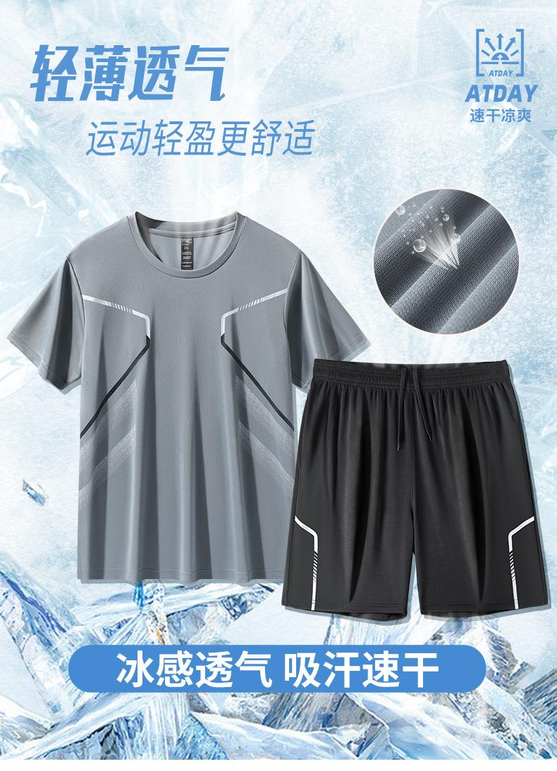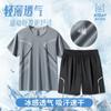 Traje deportivo de seda de hielo para hombre, pantalones cortos de manga corta para correr en verano, ropa informal de baloncesto para correr por la mañana, ropa fina de fitness de secado rápido