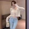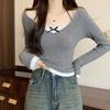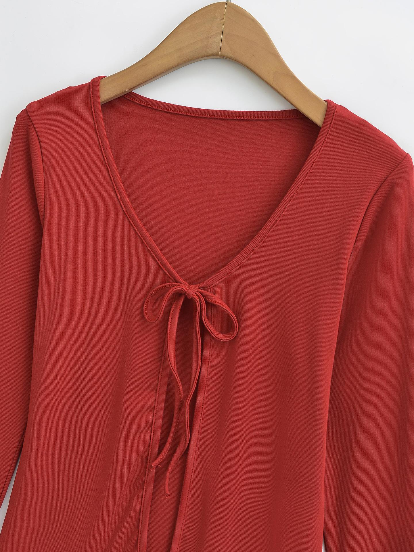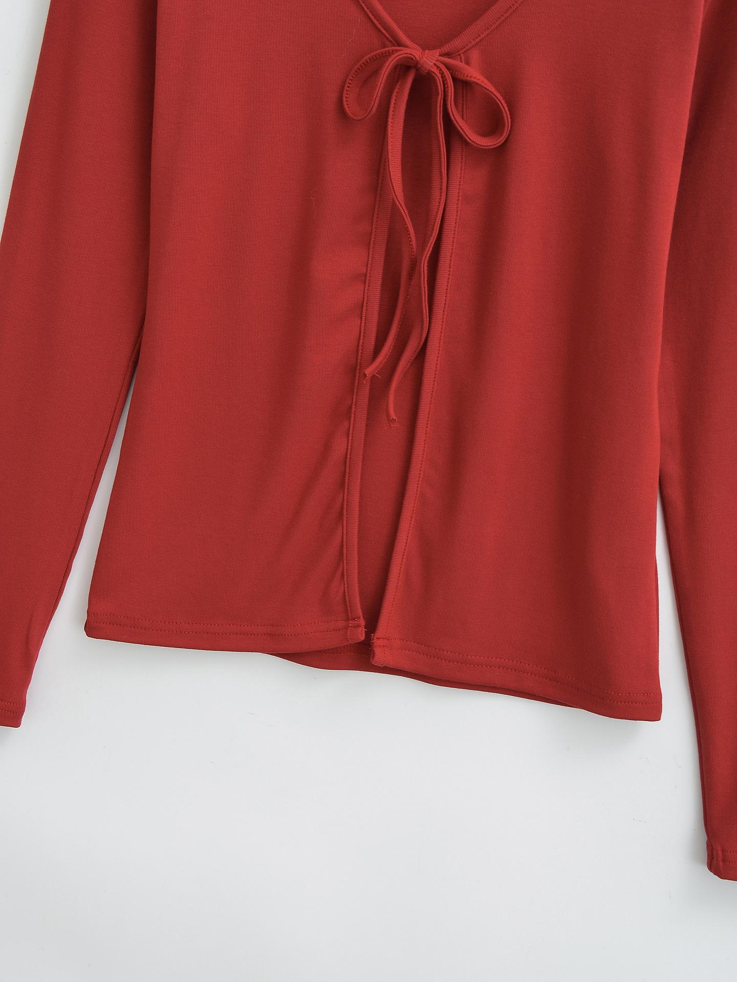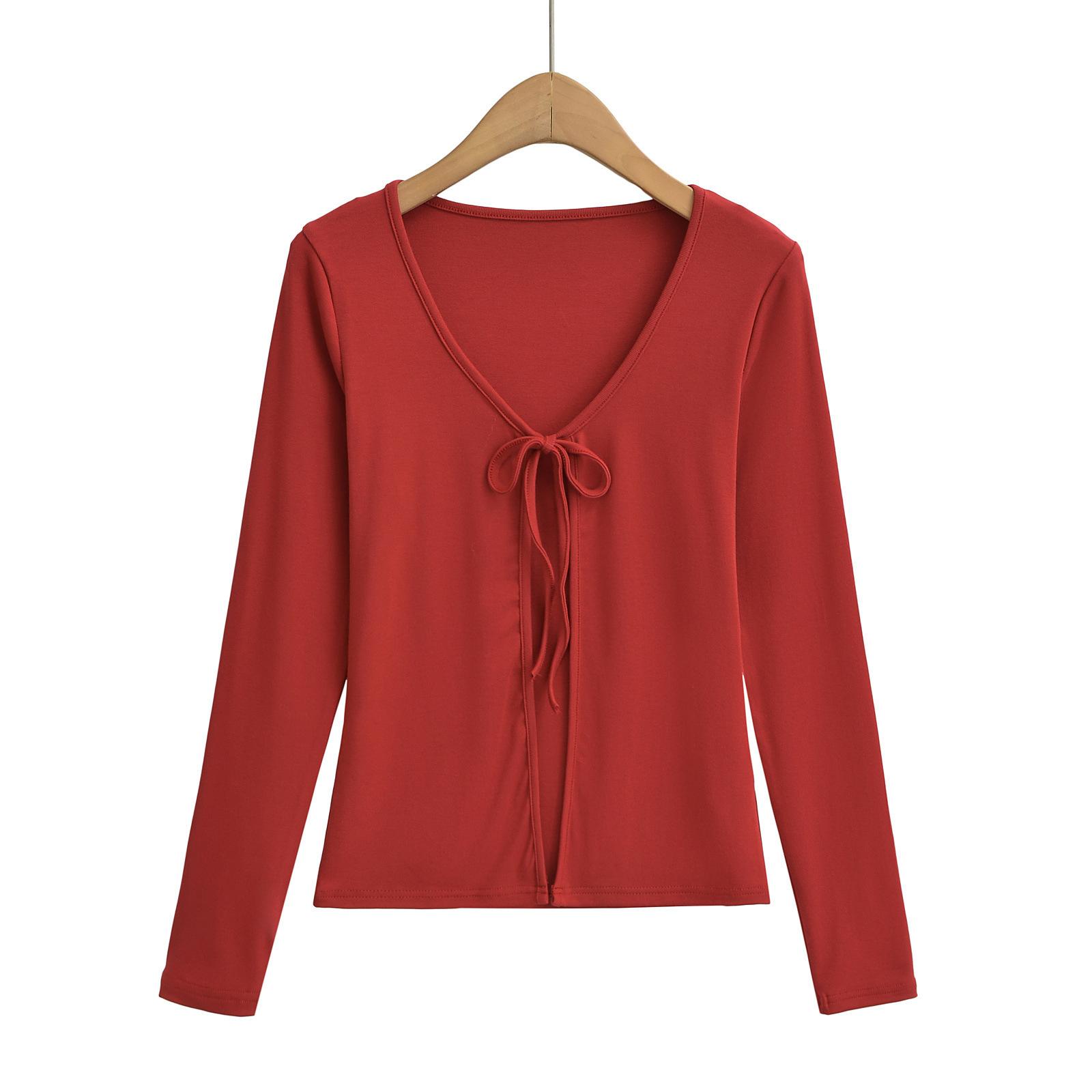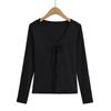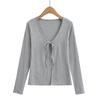 Cárdigan fino con cuello en V y cordones estilo coreano para mujer, otoño 2024, nuevo, ajustado, adelgazante, elegante y puro.