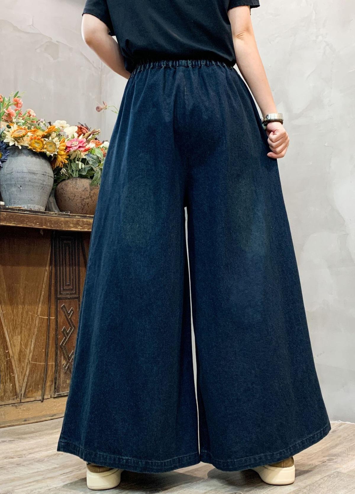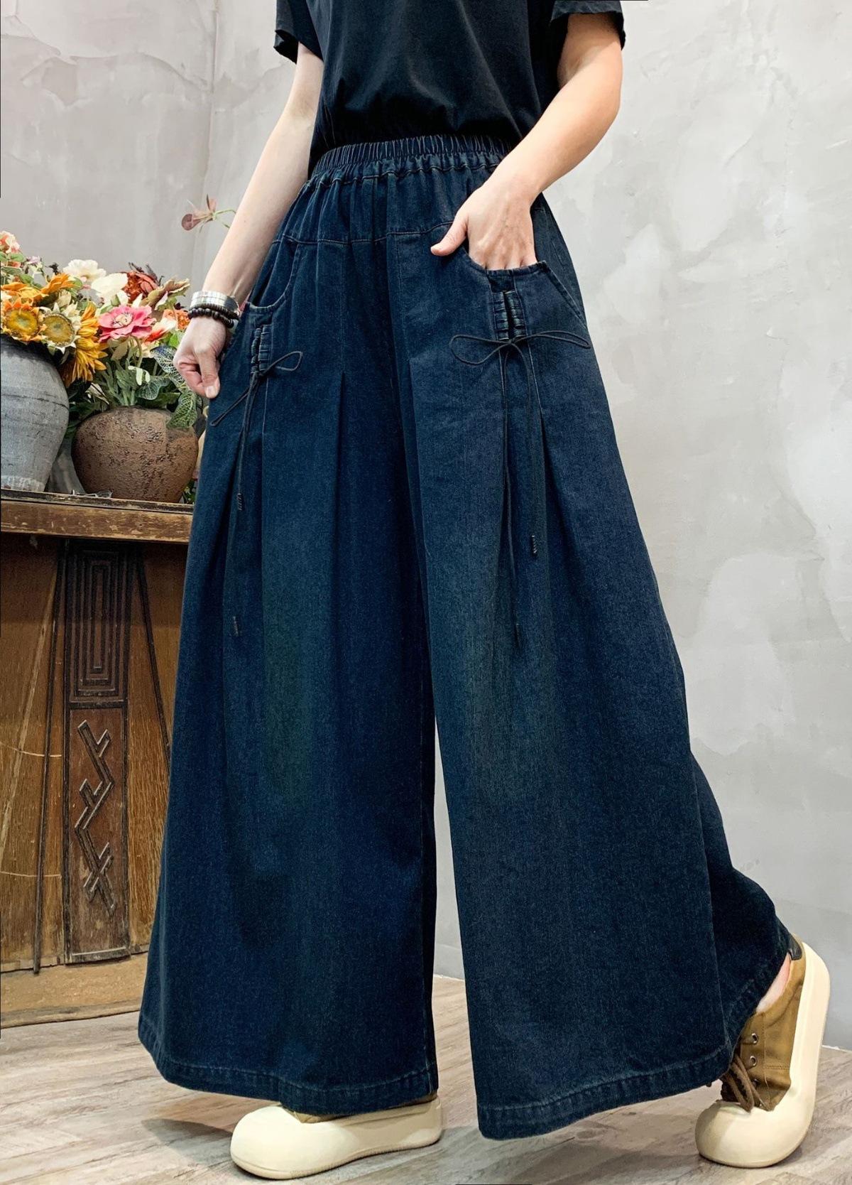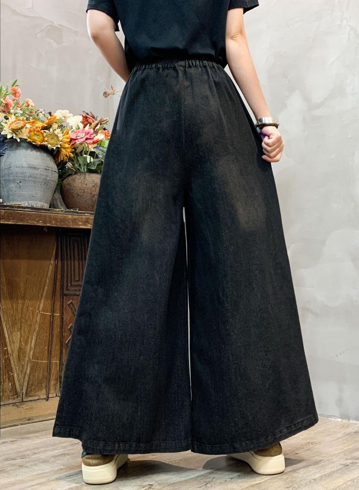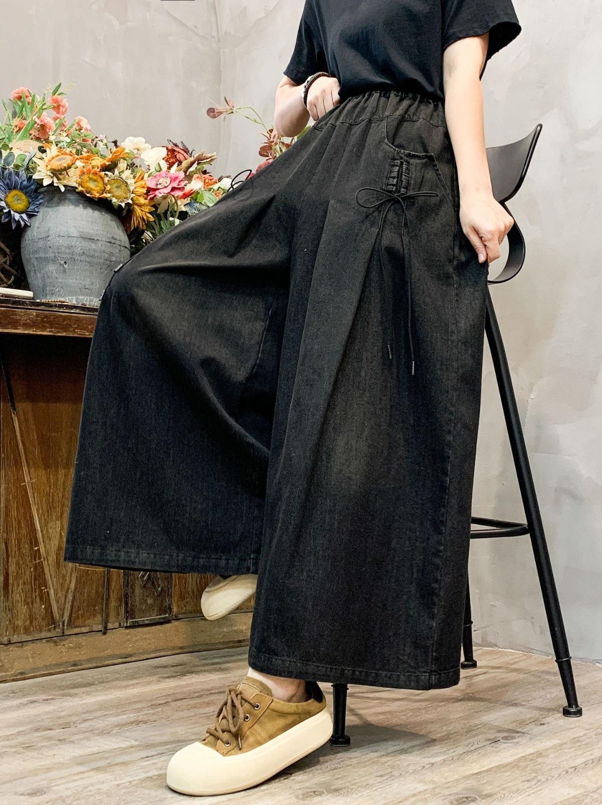 Primavera y Otoño Nuevo Elástico Cintura Alta Plisado Denim Pantalones Pierna Ancha Mujer Talla Grande Suelto Delgado Recto Faldas Pantalones