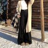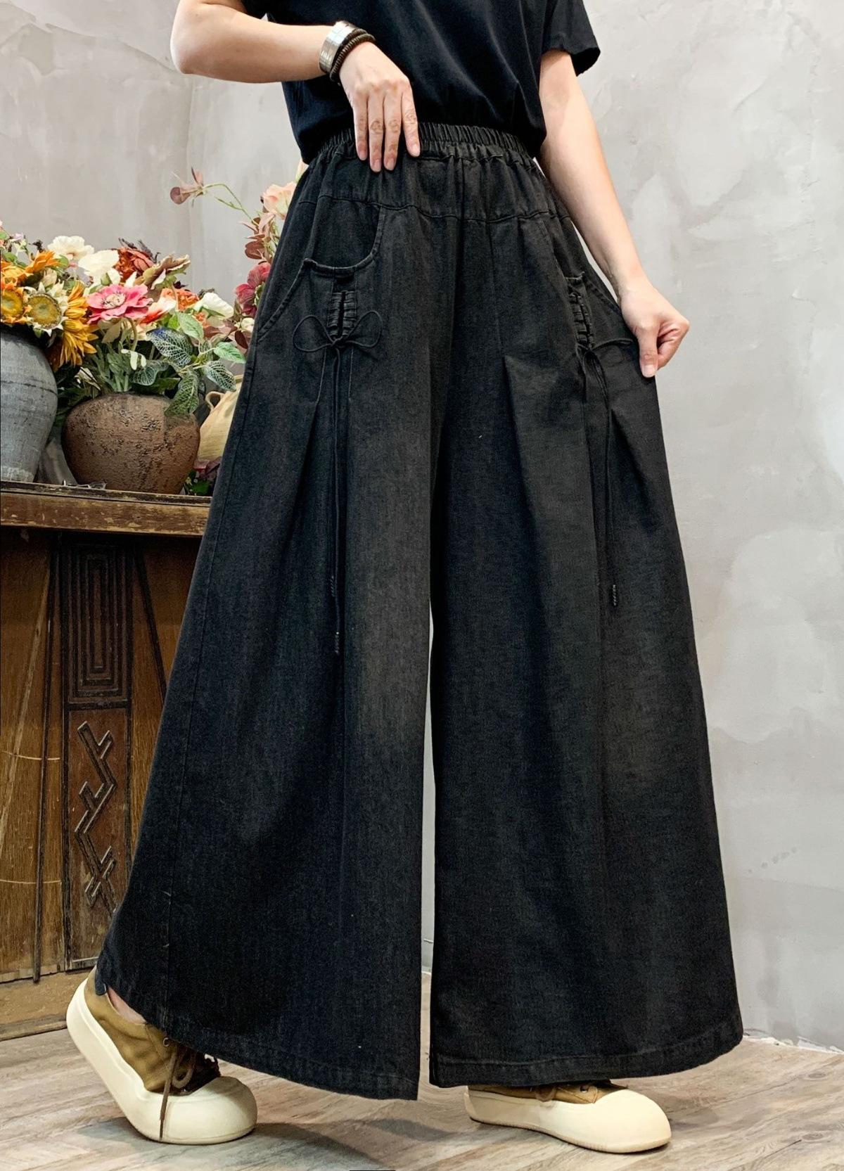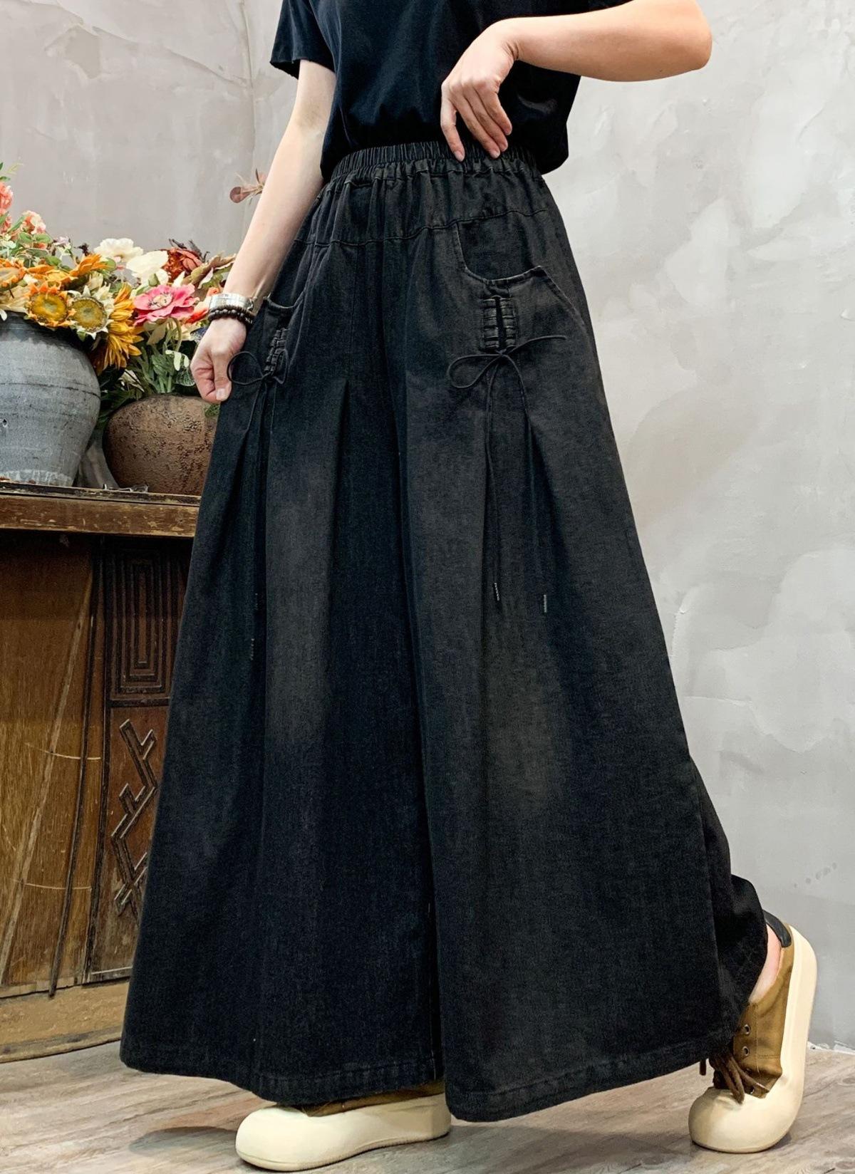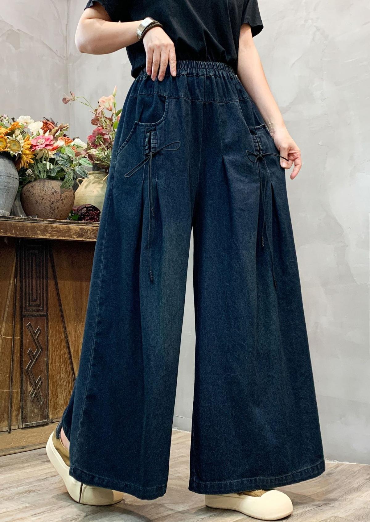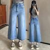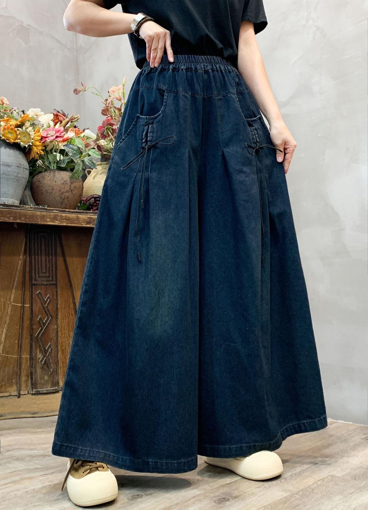 Primavera y Otoño Nuevo Elástico Cintura Alta Plisado Denim Pantalones Pierna Ancha Mujer Talla Grande Suelto Delgado Recto Faldas Pantalones