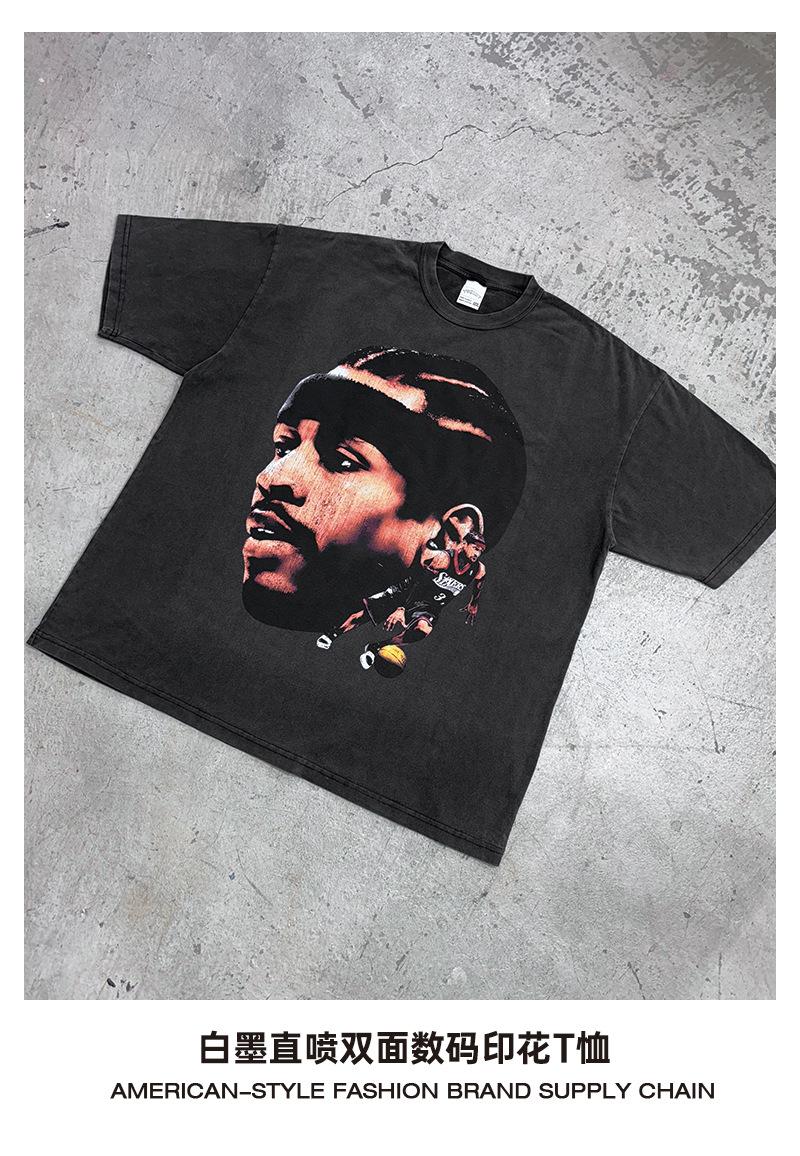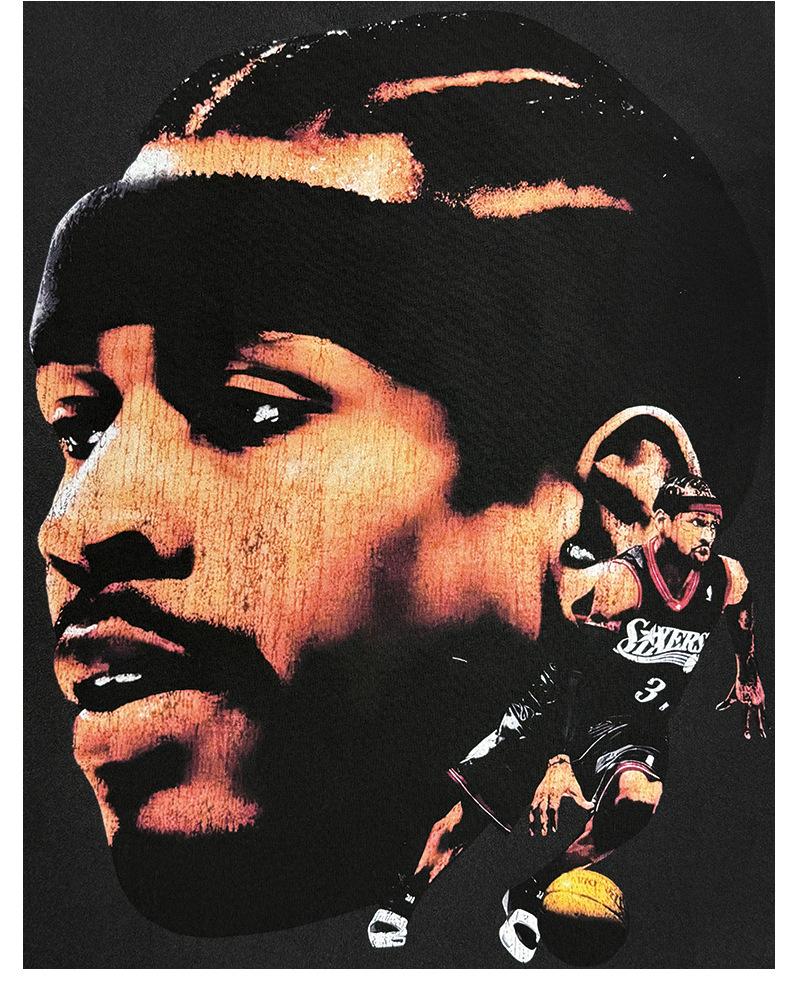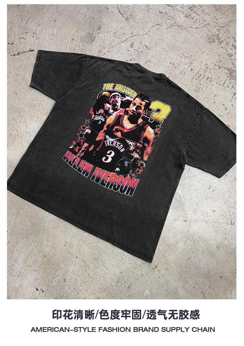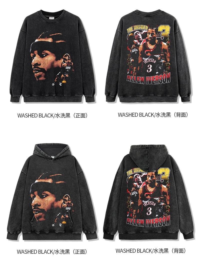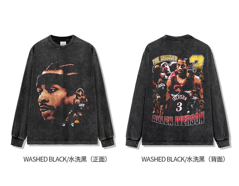 Camiseta de manga corta con estampado retro transfronterizo estadounidense IVERSON Iverson, suéter holgado de manga larga lavado con capucha al por mayor