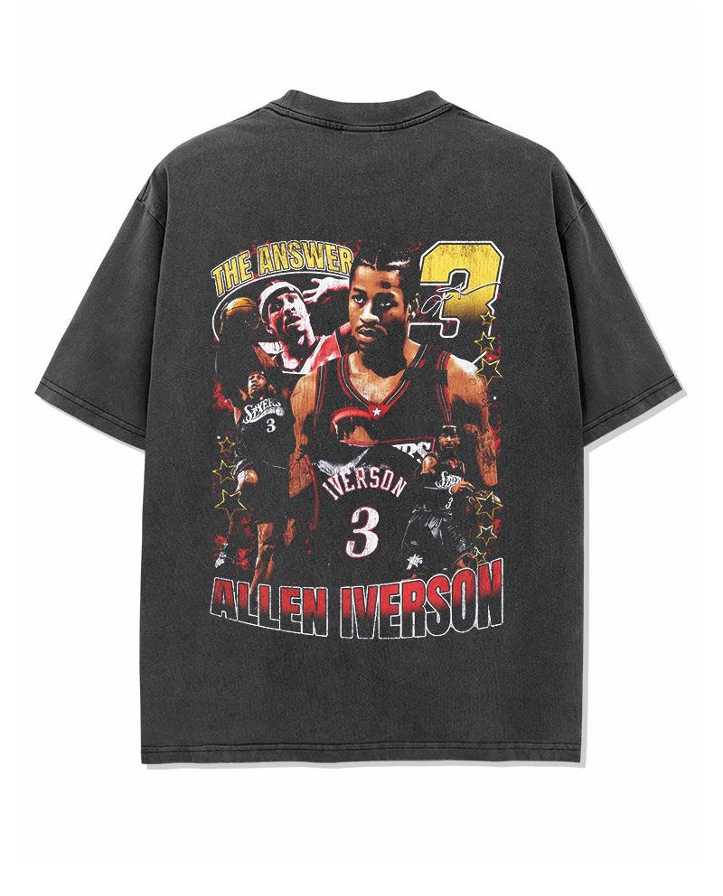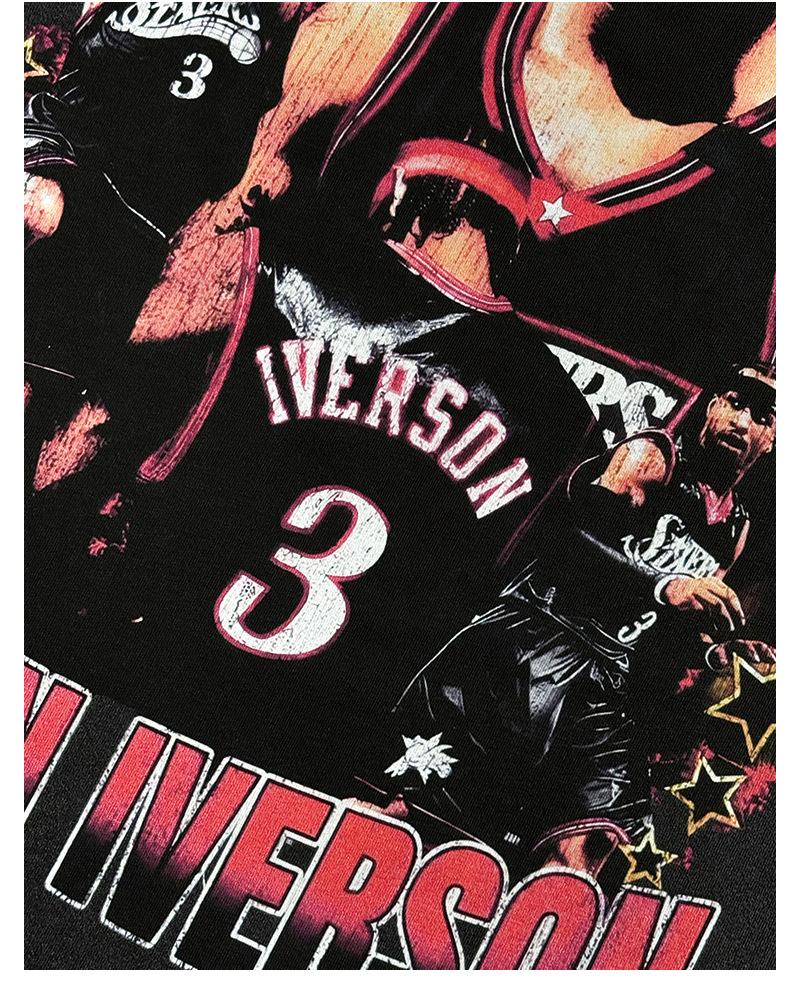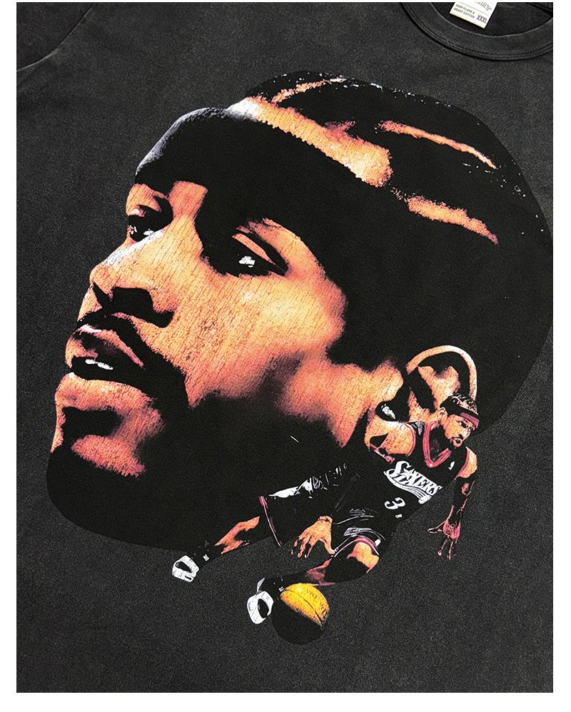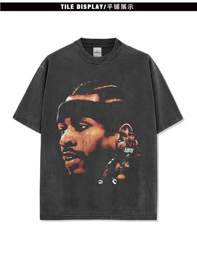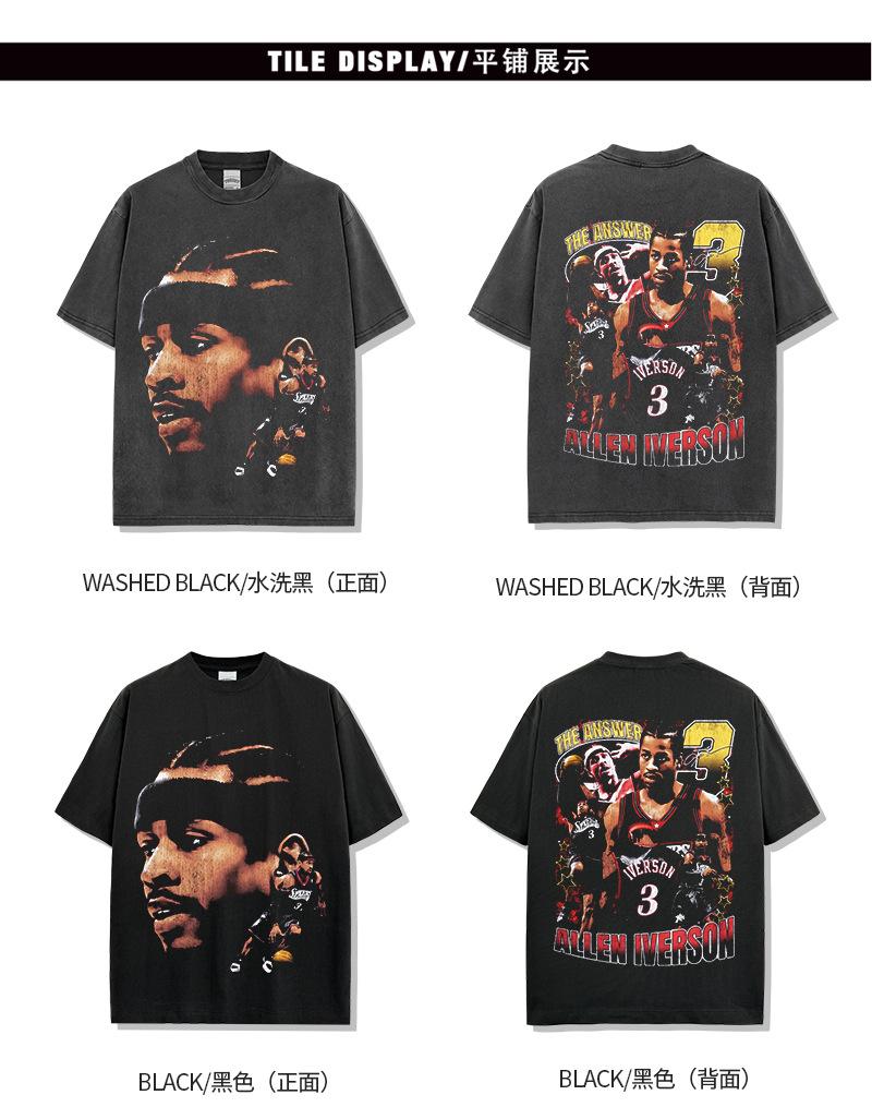Camiseta de manga corta con estampado retro transfronterizo estadounidense IVERSON Iverson, suéter holgado de manga larga lavado con capucha al por mayor