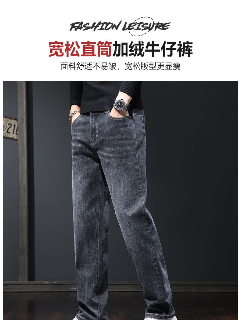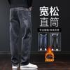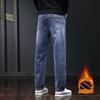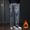 Pantalones vaqueros holgados rectos de talla grande para hombre, otoño e invierno, modernos, ajustados, casuales, con forro polar, gruesos y opcionales.