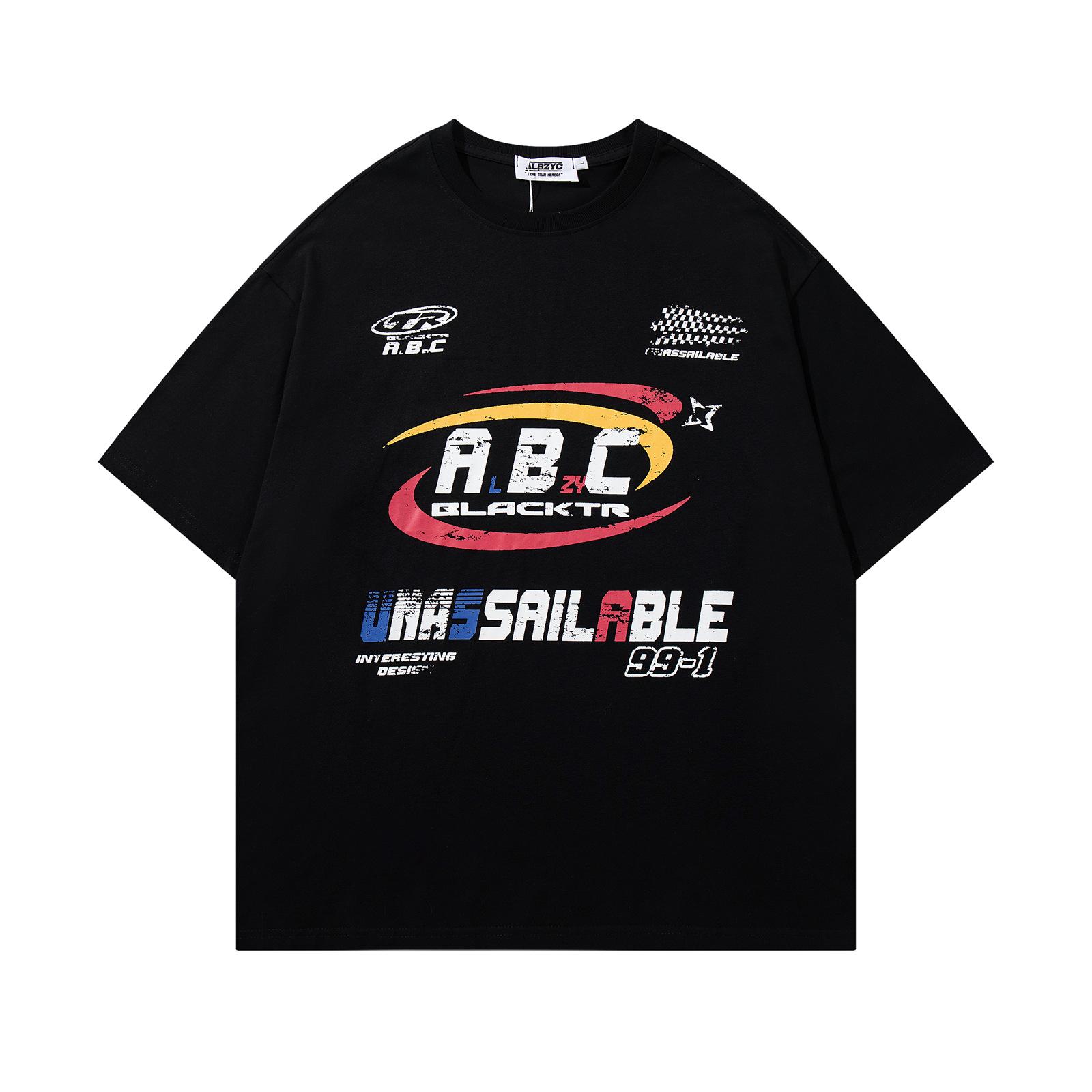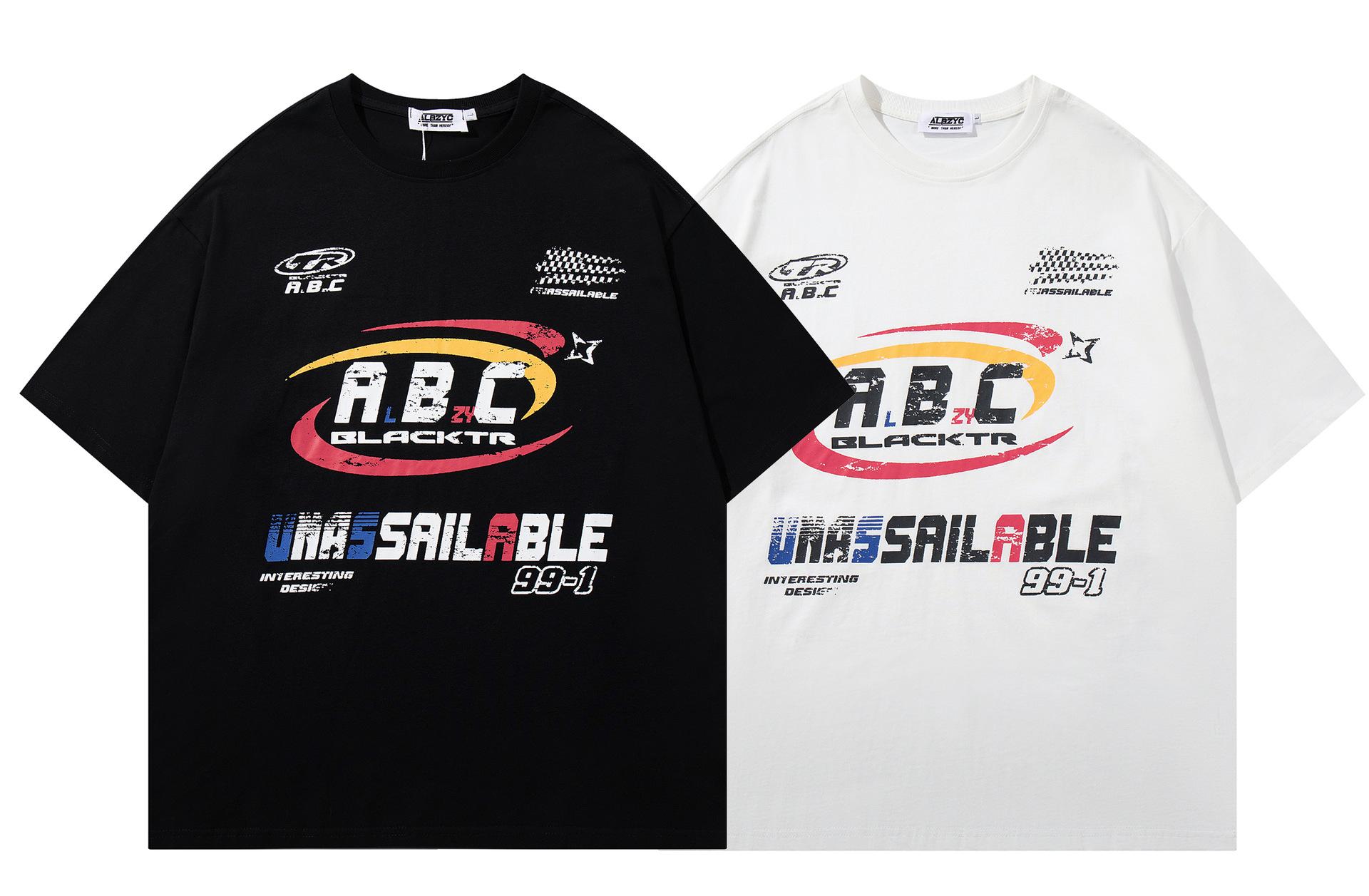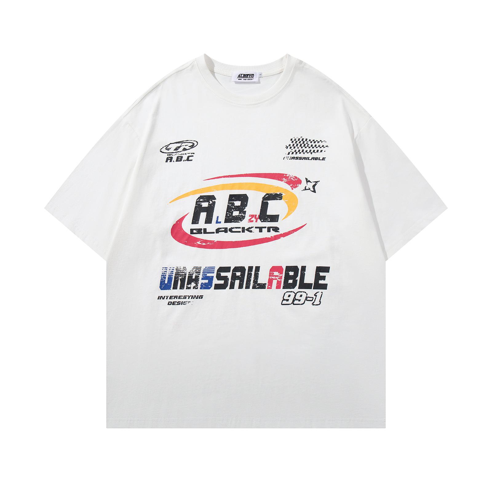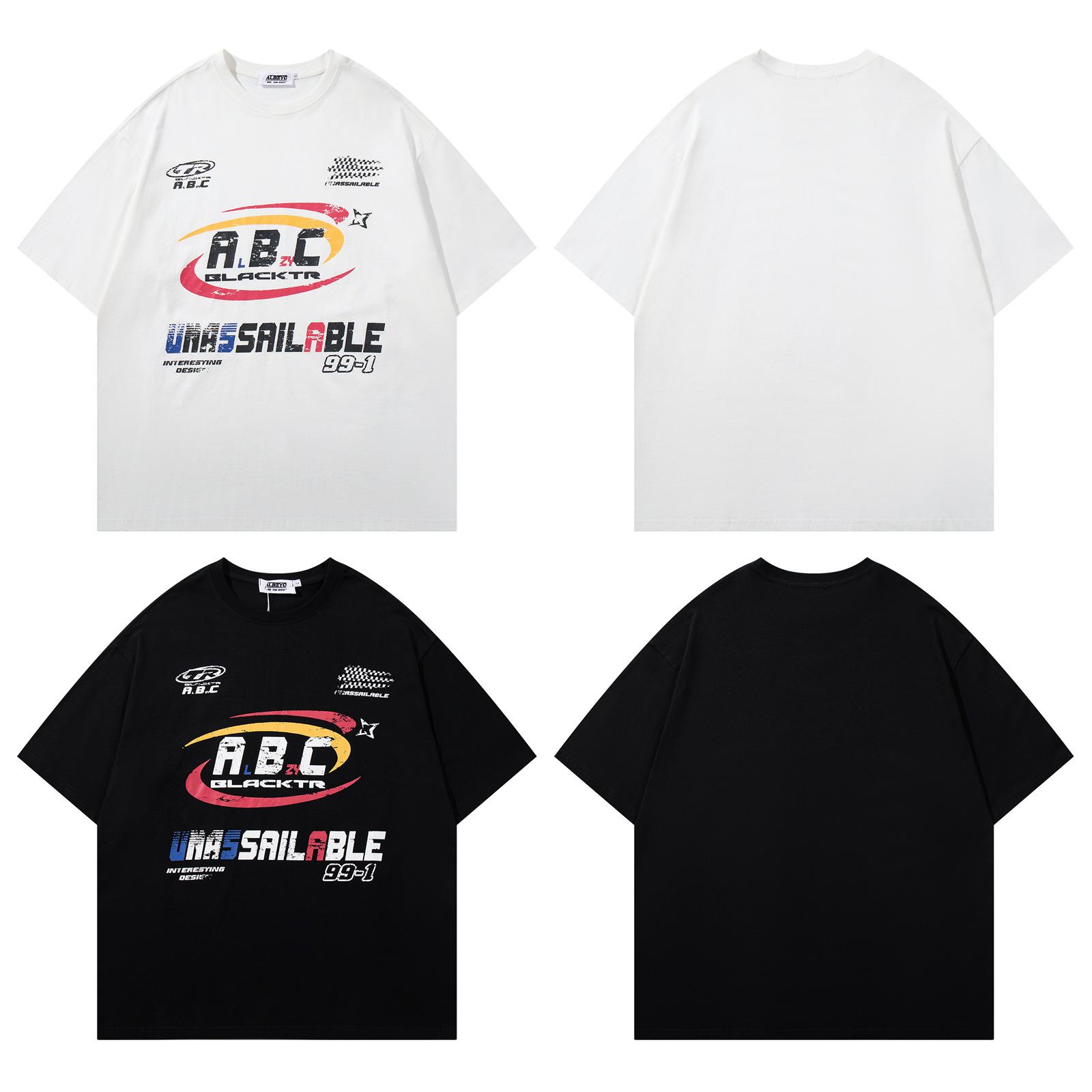 Camiseta de manga corta estilo americano con estampado de letras de calle, estilo coche, para hombre, de verano, informal, de gran tamaño, combina con todo, para parejas