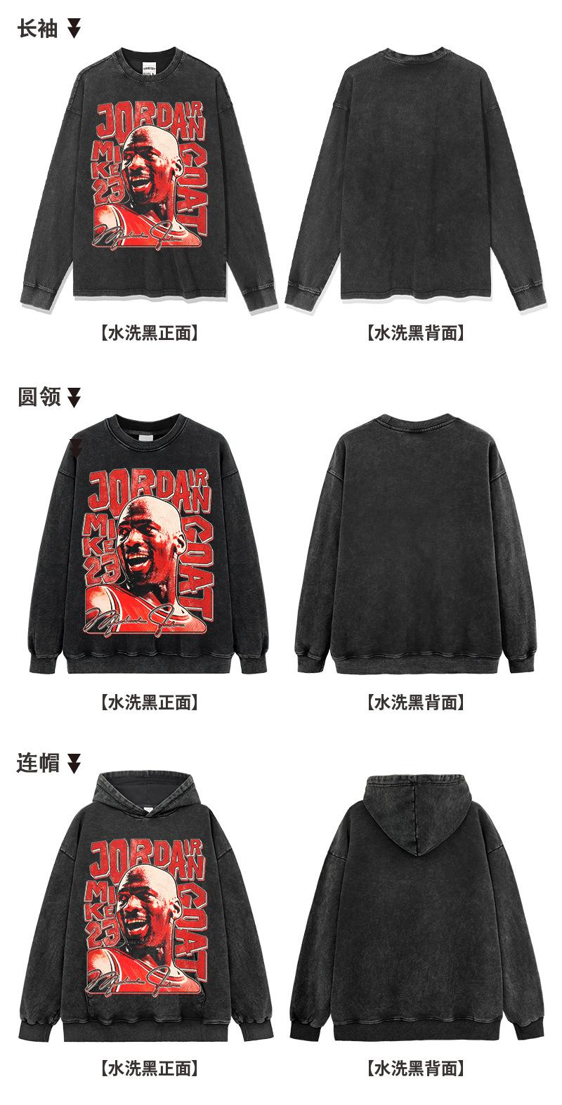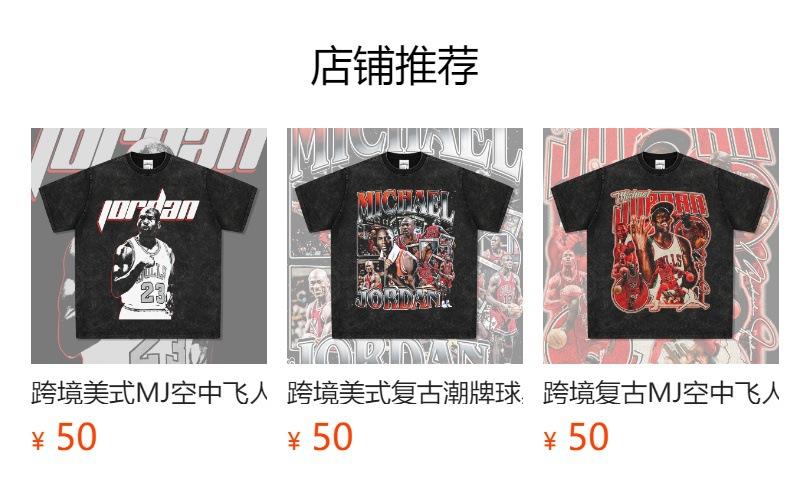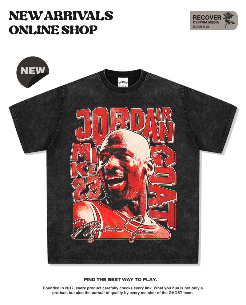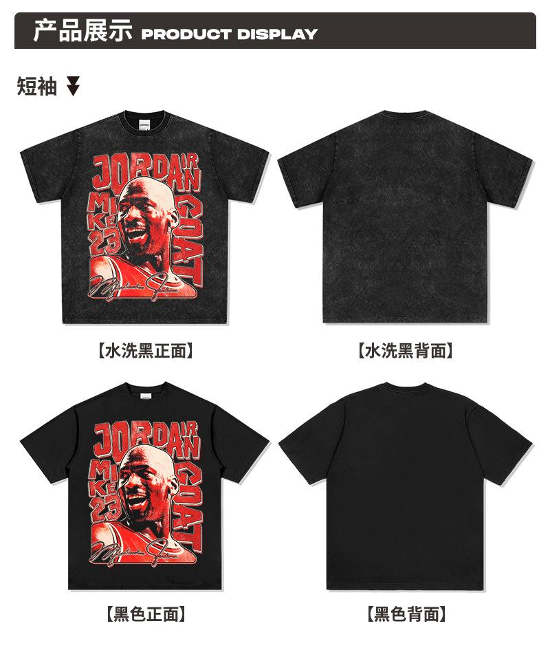 Camiseta de Manga Corta Estilo Americano Retro Transfronterizo con Estampado MJ, Callejera, Combinable con Todo, Cuello Redondo, Sudadera con Capucha