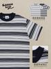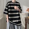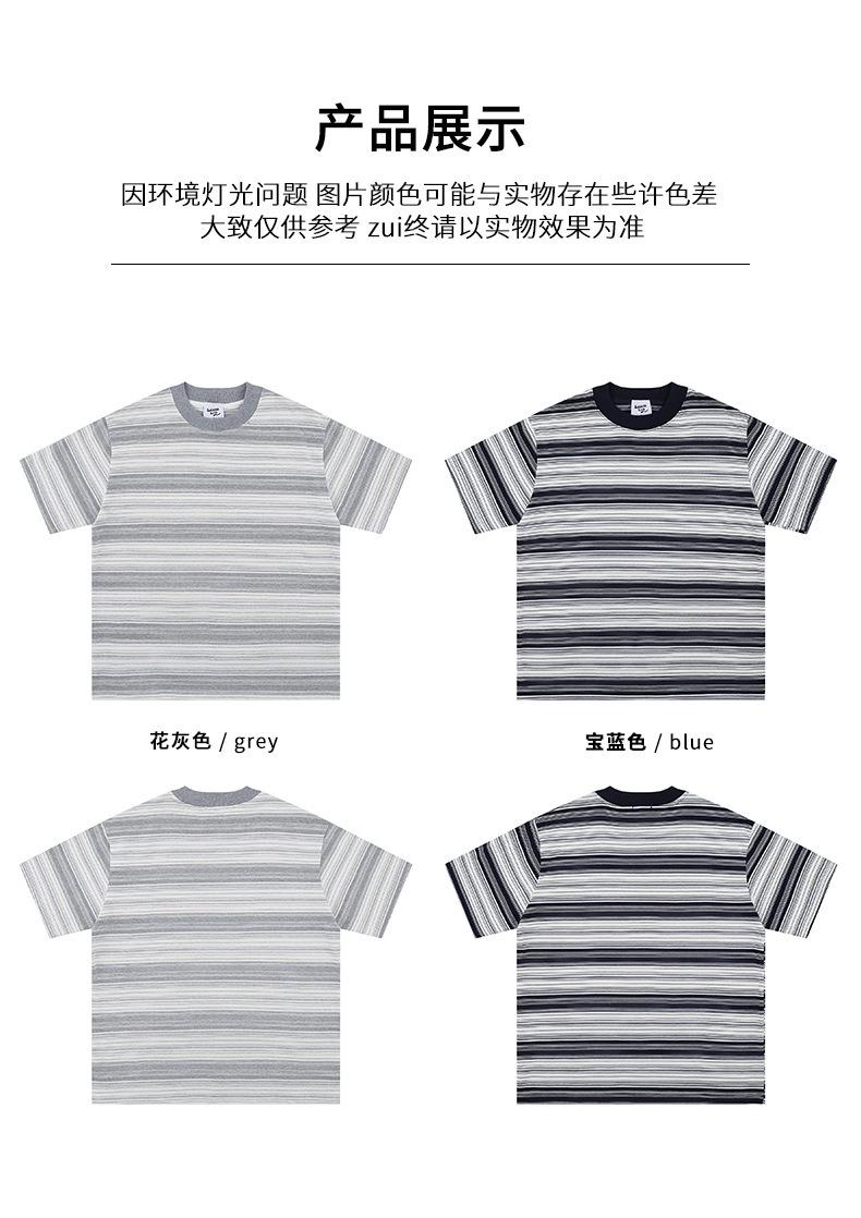 Camiseta de Estilo Japonés Retro con Raya de Color Degradado, Cuello Redondo, Ins Verano Manga Corta Casual Suelta Moderna Marca Estilo Básico para Hombre y Mujer