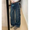 Pantalones vaqueros con tirantes estilo americano, rectos y lavados, de la marca OREETA, con hermosos diseños de vaqueros con tirantes azules.
