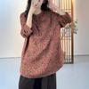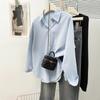 Camisa de trabajo a rayas de moda transfronteriza de primavera y otoño 2025 para mujer, informal, de cuello redondo, manga larga, holgada, estilo retro