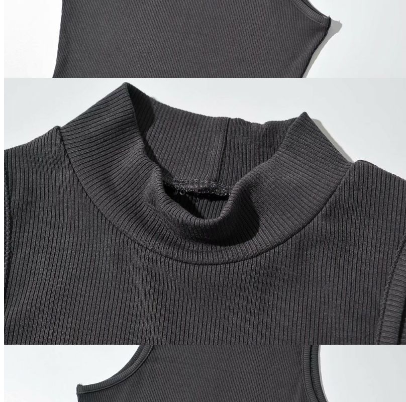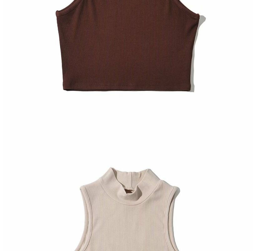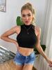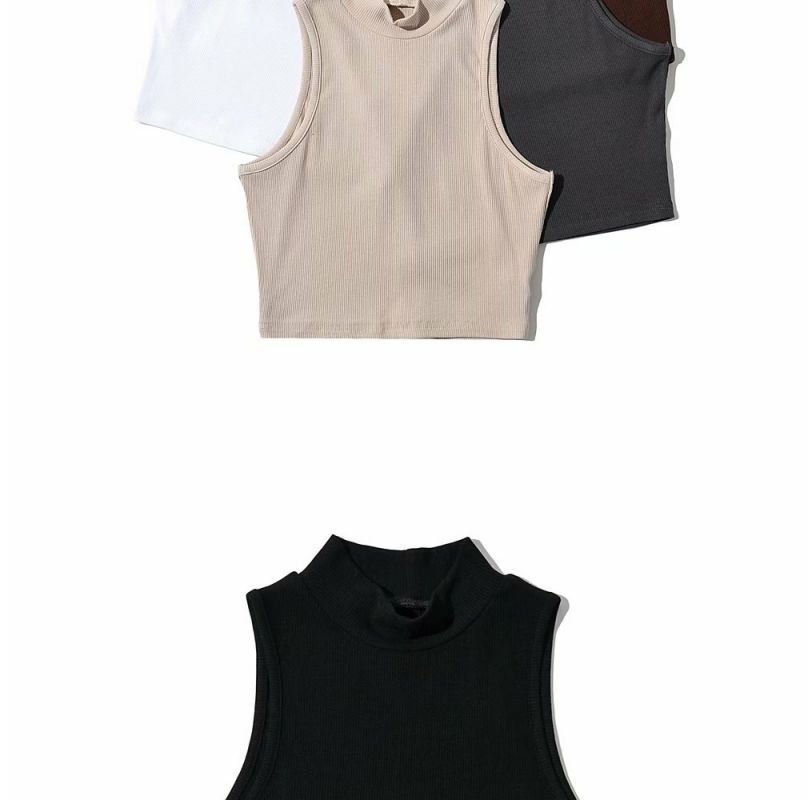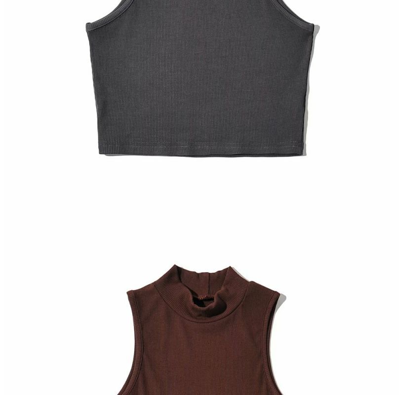 Ropa de verano nueva para mujer, las chicas europeas y americanas usan un chaleco sin mangas con cuello alto y parte inferior, top sexy adelgazante elástico.