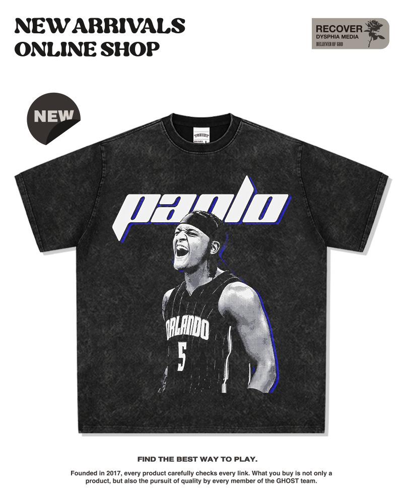 Camiseta de manga corta con estampado vintage de Paolo Banchero y sudadera con capucha y cuello redondo resistente.